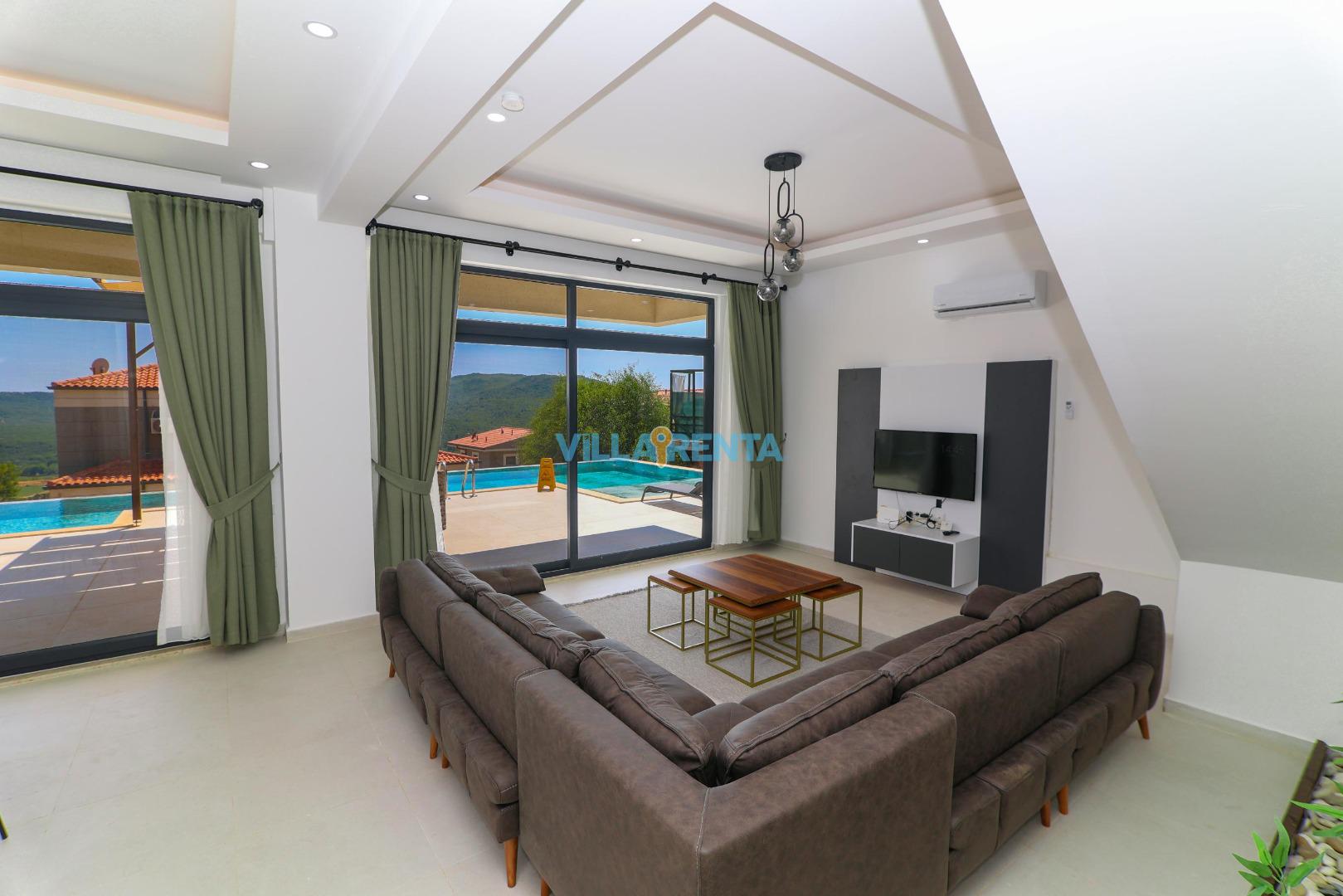 Kalabalık Gruplar İçin Çifte Konfor: Hemen yanında bulunan aynı tipteki ikiz villası Villa Adin ile birlikte kiralama imkanı sunan Villa Aden, beraber tatil yapmak isteyen 12 kişilik gruplar için benzersiz bir konaklama çözümüdür.