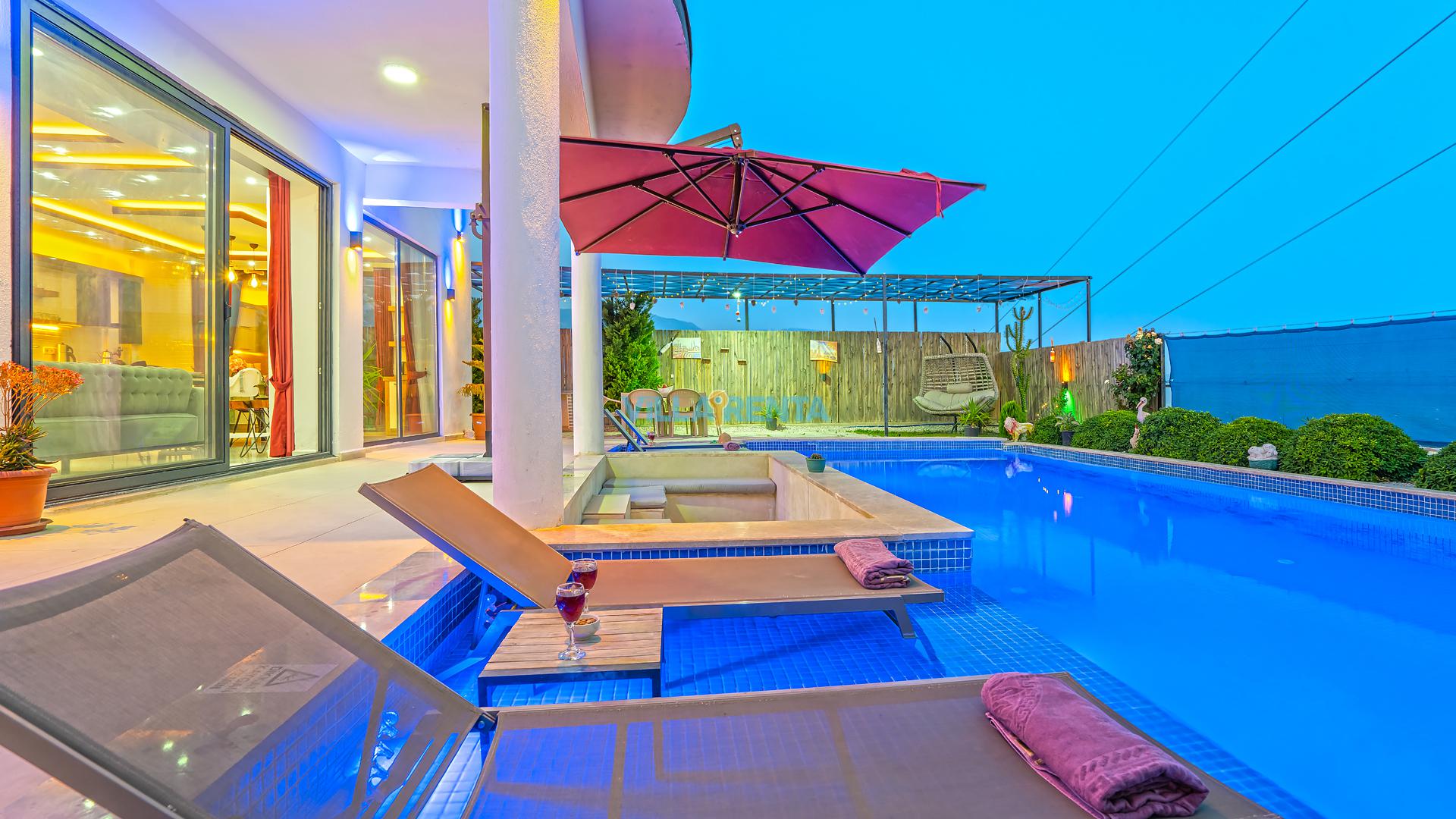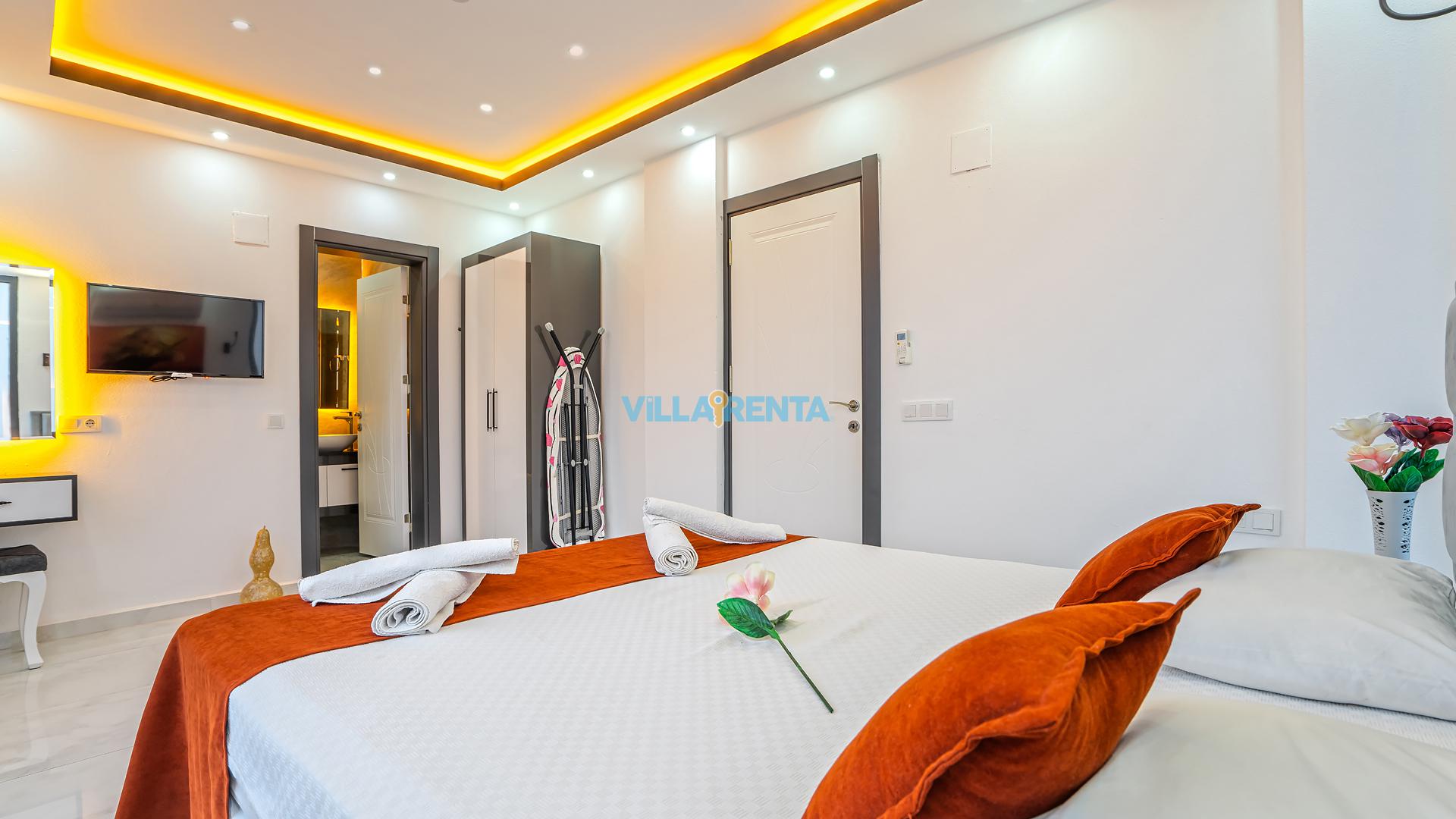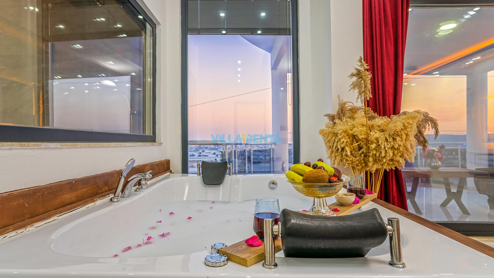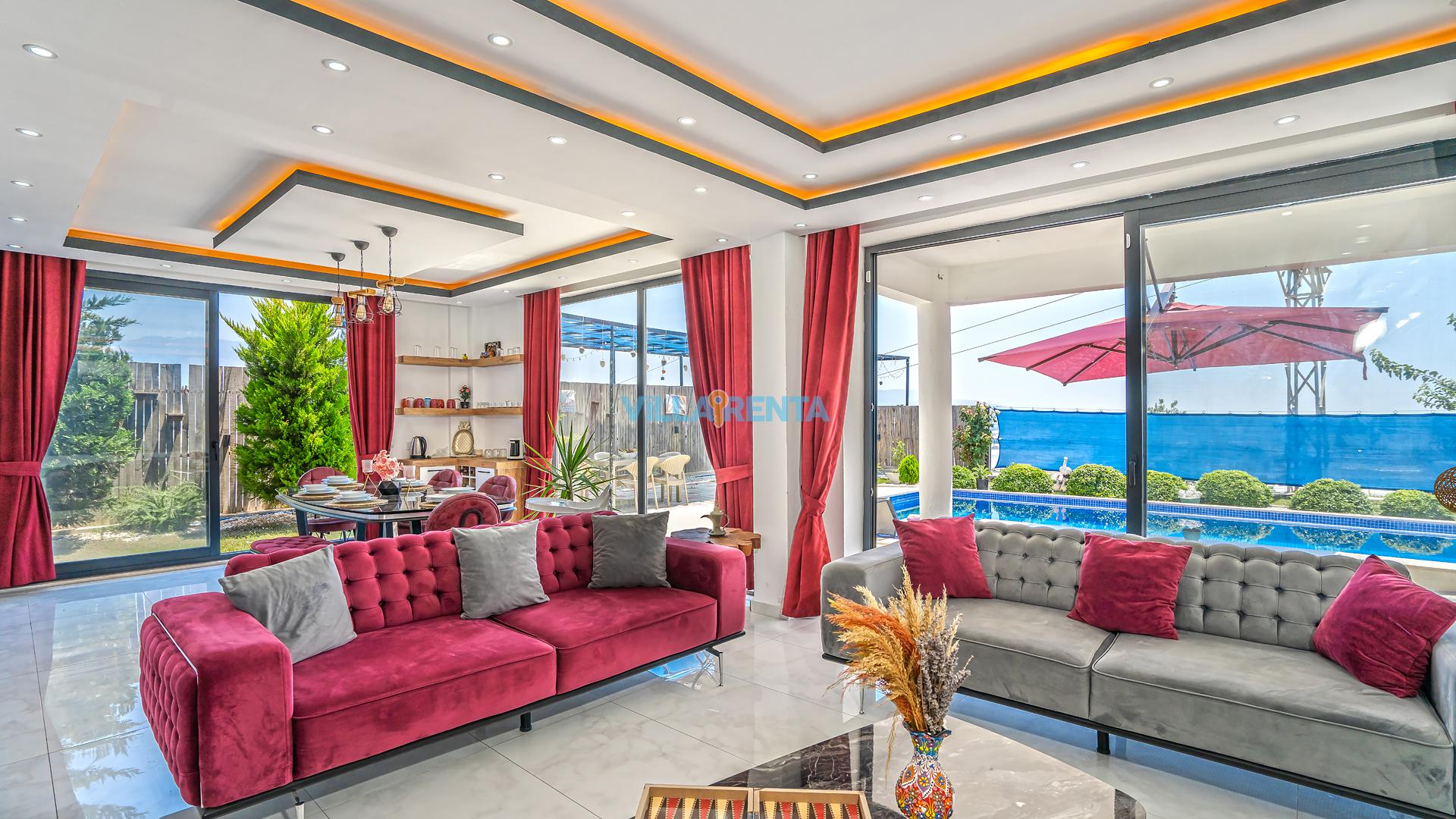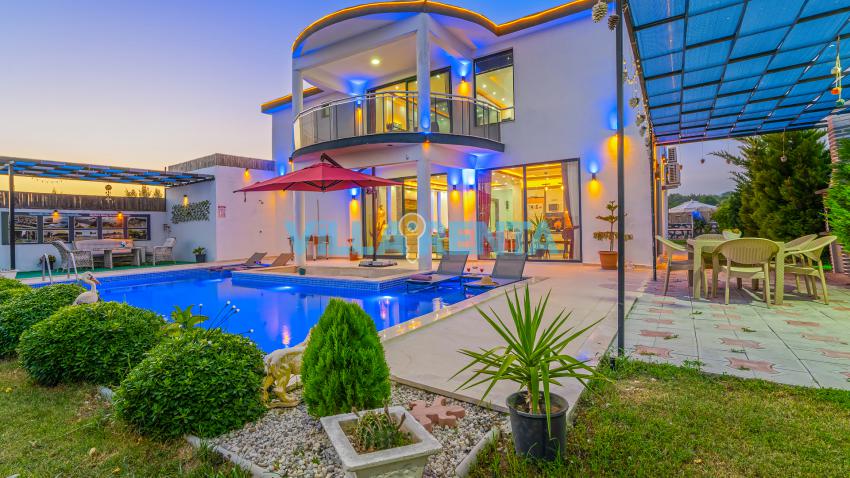 Modern Mimari ve Fonksiyonellik: İç tasarımında kullanılan modern çizgiler, ev konforunu lüks bir atmosferle birleştirir. Ebeveyn odasındaki jakuzi ise tatilin dinlenme boyutunu bir üst seviyeye taşır.