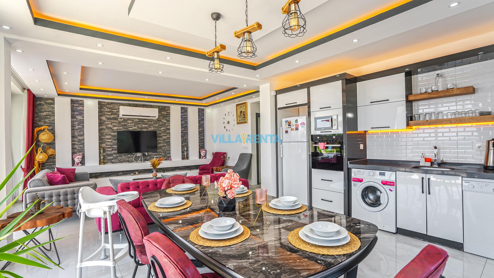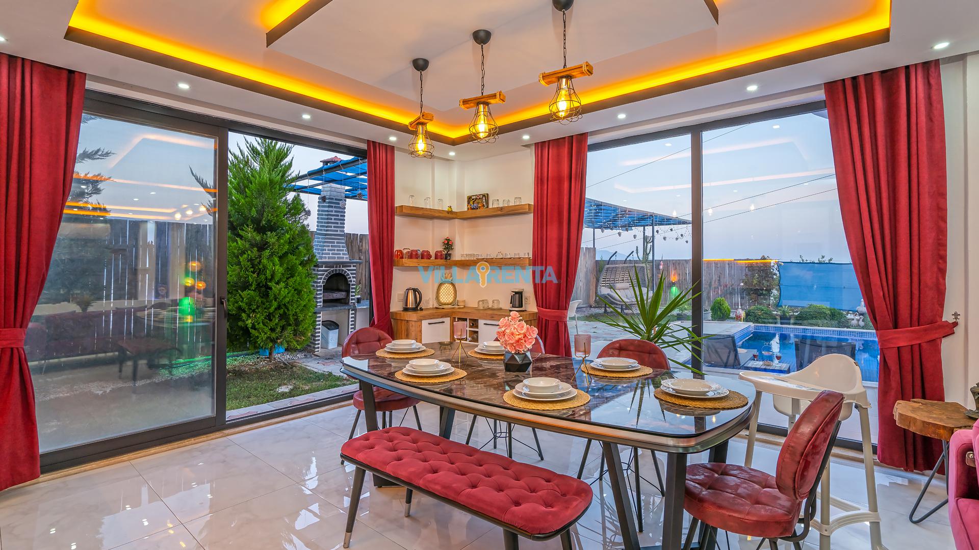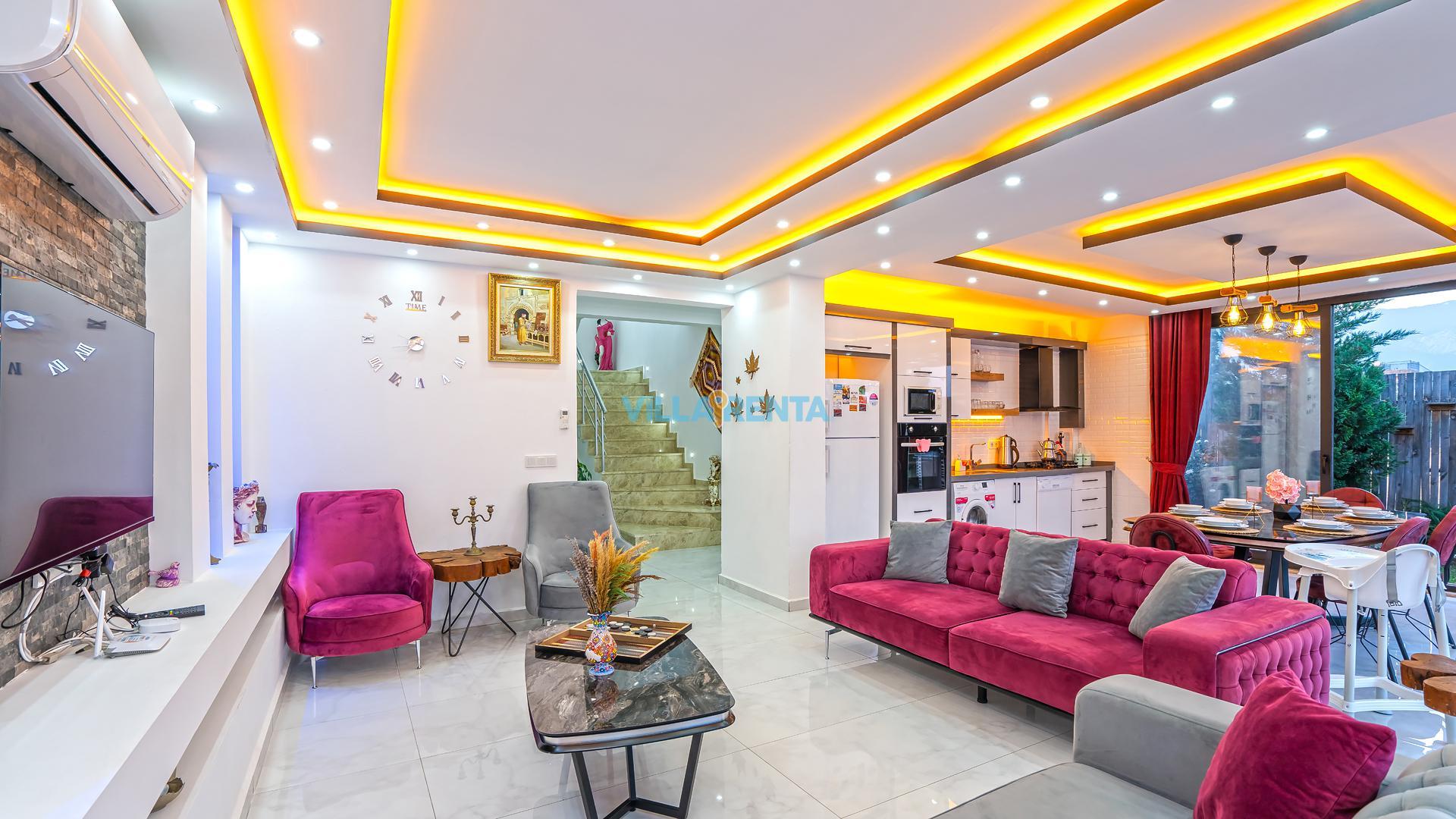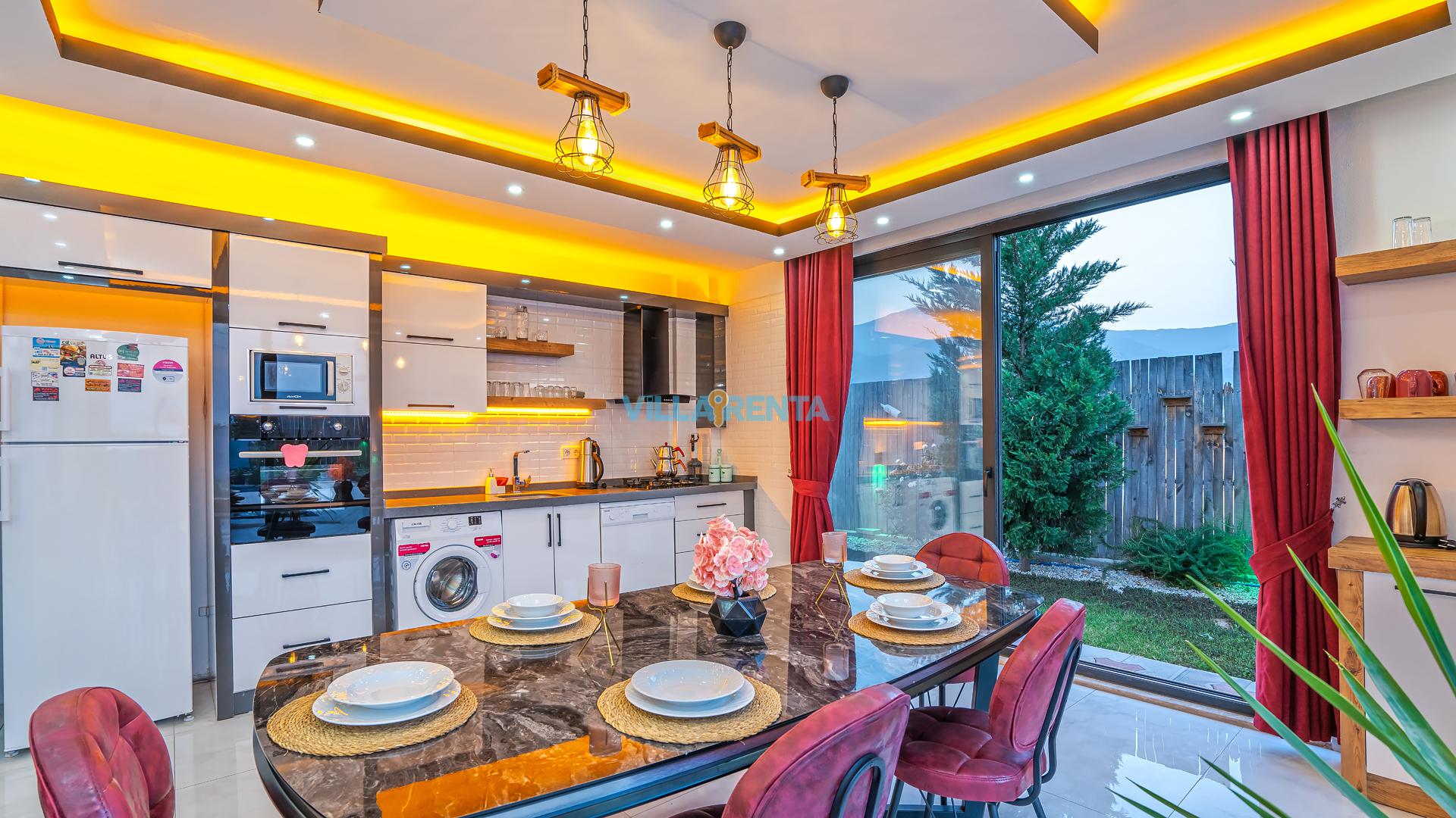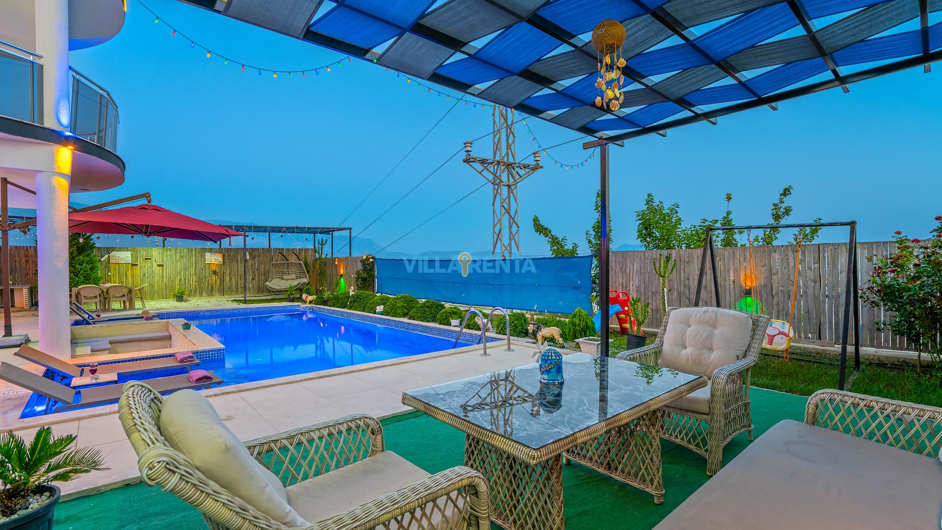 Modern Mimari ve Fonksiyonellik: İç tasarımında kullanılan modern çizgiler, ev konforunu lüks bir atmosferle birleştirir. Ebeveyn odasındaki jakuzi ise tatilin dinlenme boyutunu bir üst seviyeye taşır.