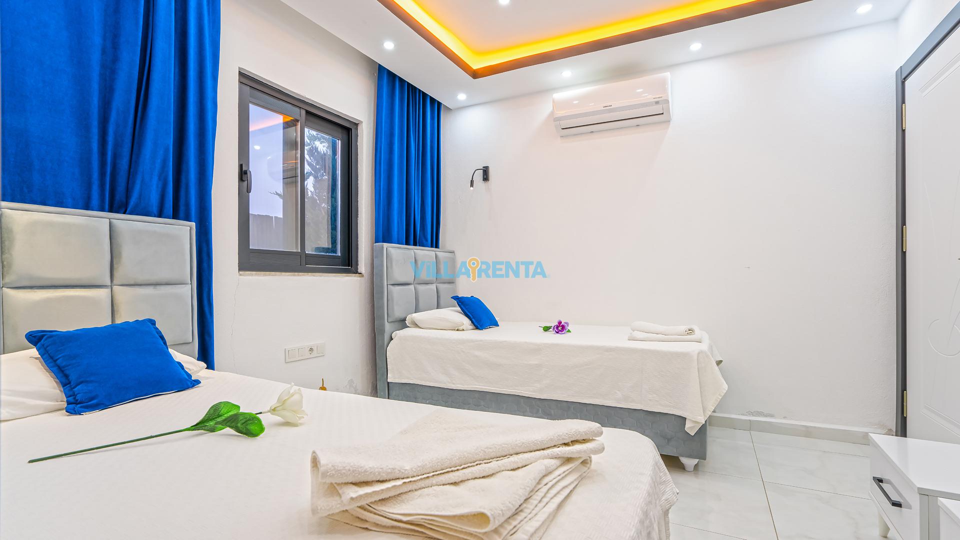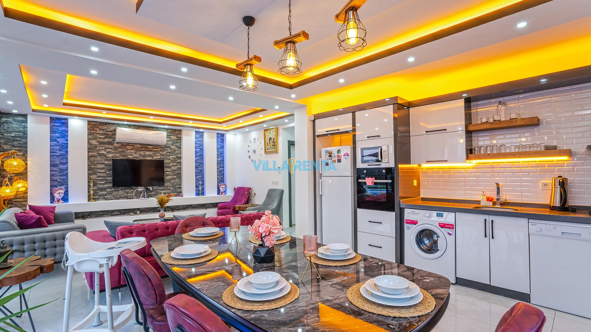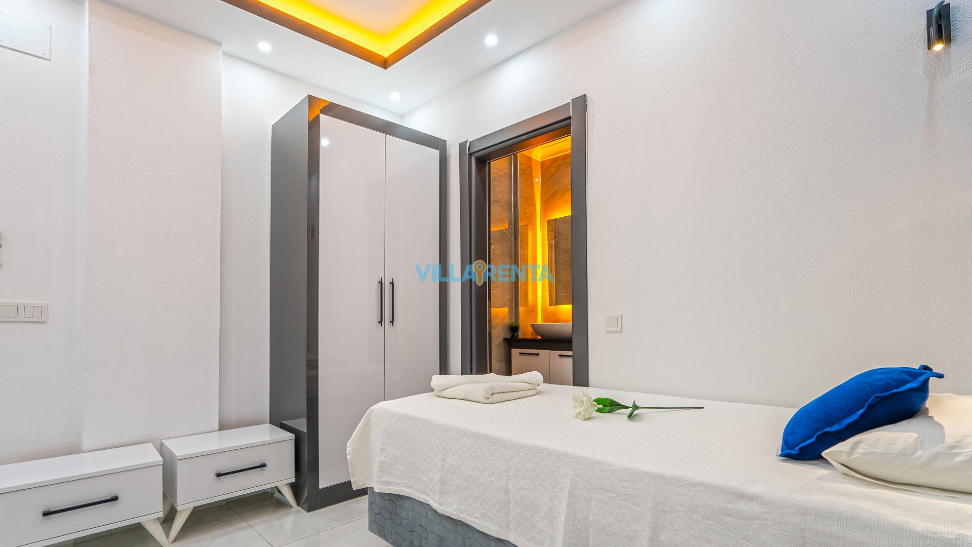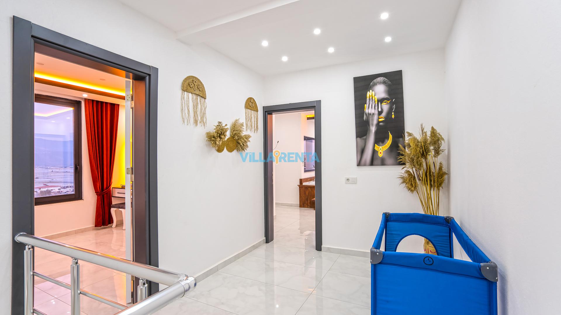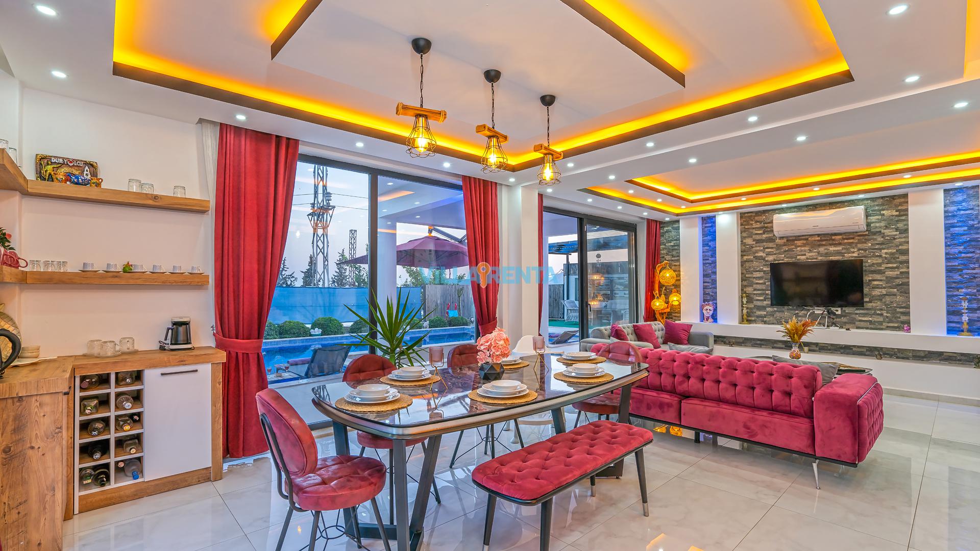 Modern Mimari ve Fonksiyonellik: İç tasarımında kullanılan modern çizgiler, ev konforunu lüks bir atmosferle birleştirir. Ebeveyn odasındaki jakuzi ise tatilin dinlenme boyutunu bir üst seviyeye taşır.