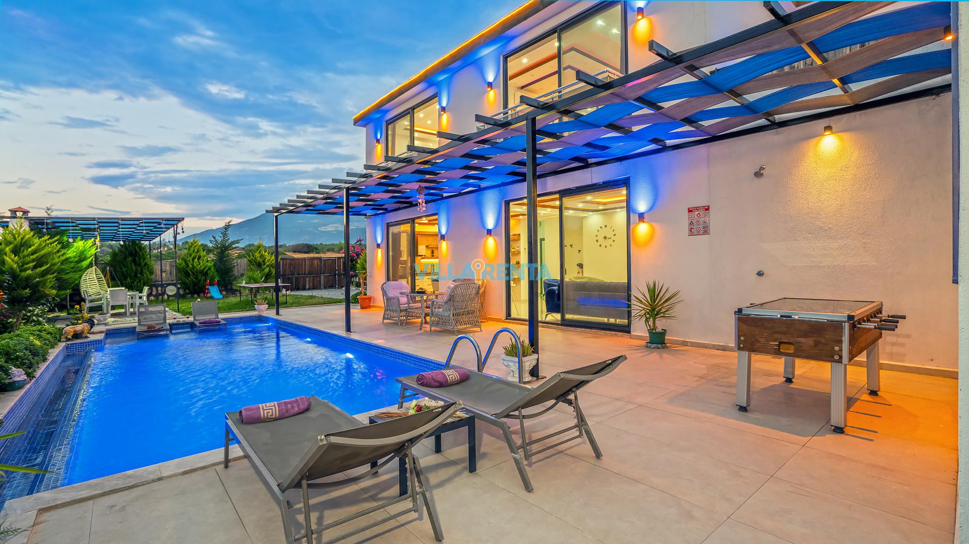 Villa Renta kalitesiyle sunulan Villa Aksoy Kınık 2, çekirdek aileler için her detayın düşünüldüğü, aktivite dolu bir tatil villasıdır. Kalkan Kınık mevkiinde yer alan 2 yatak odalı ve 4 kişi kapasiteli villamız, modern tasarımıyla ev konforunu lüks bir seviyeye taşıyor.