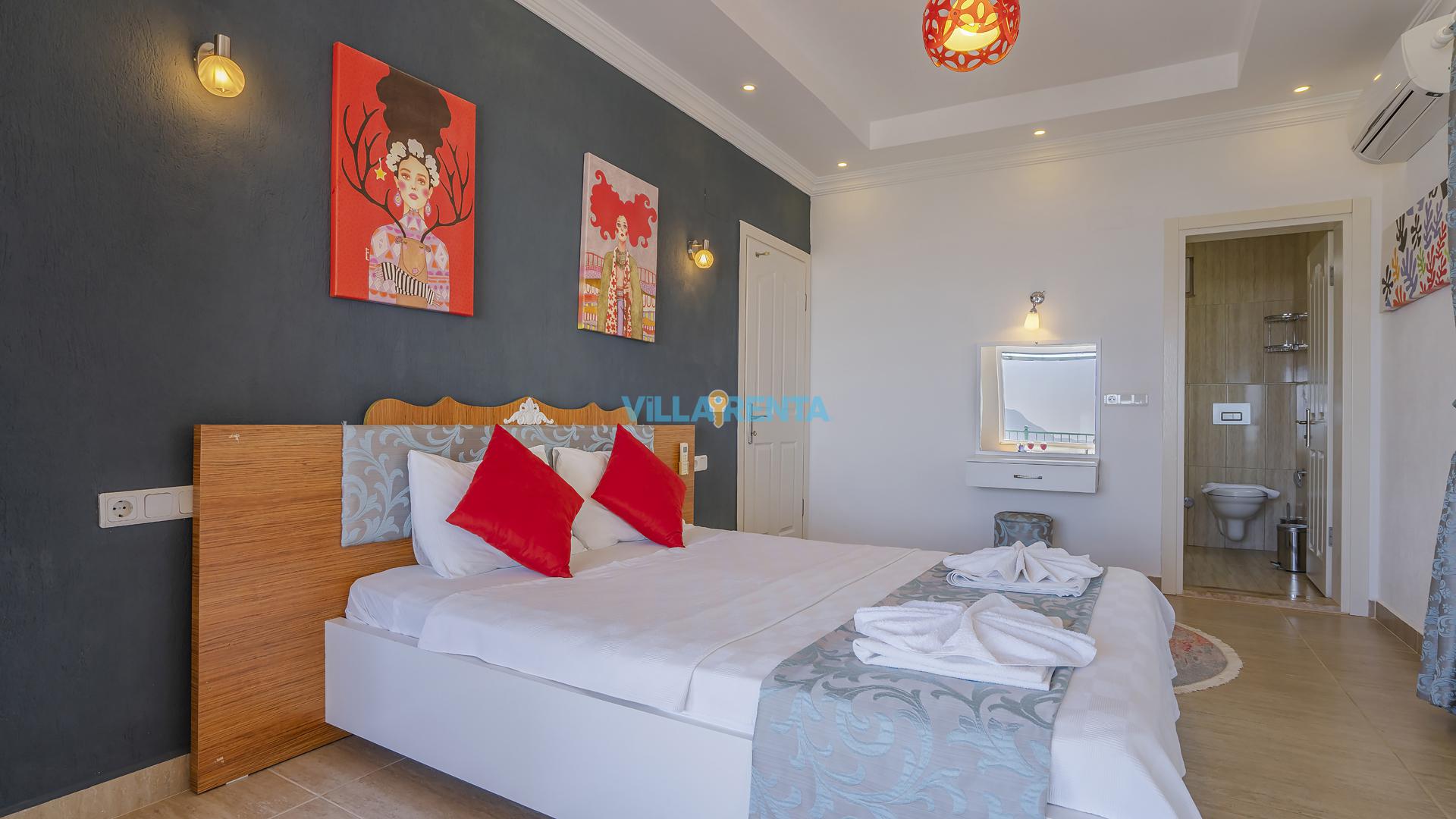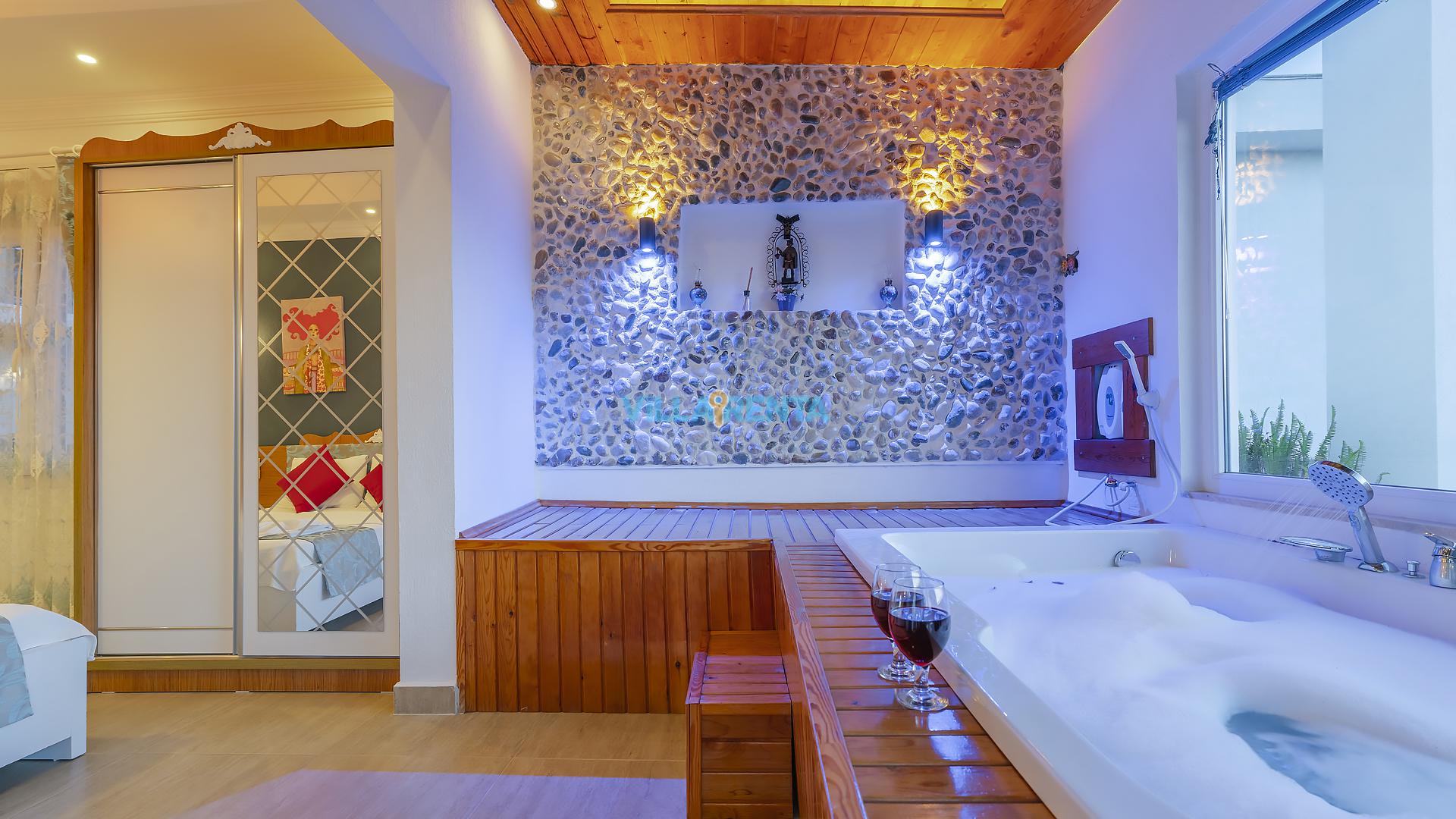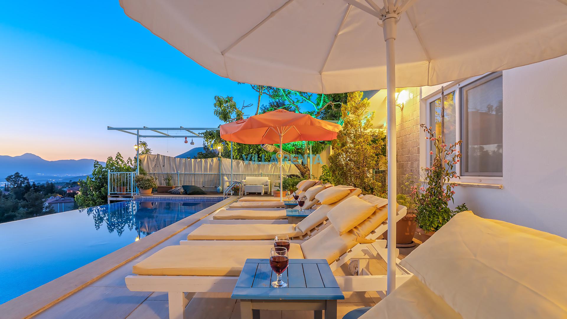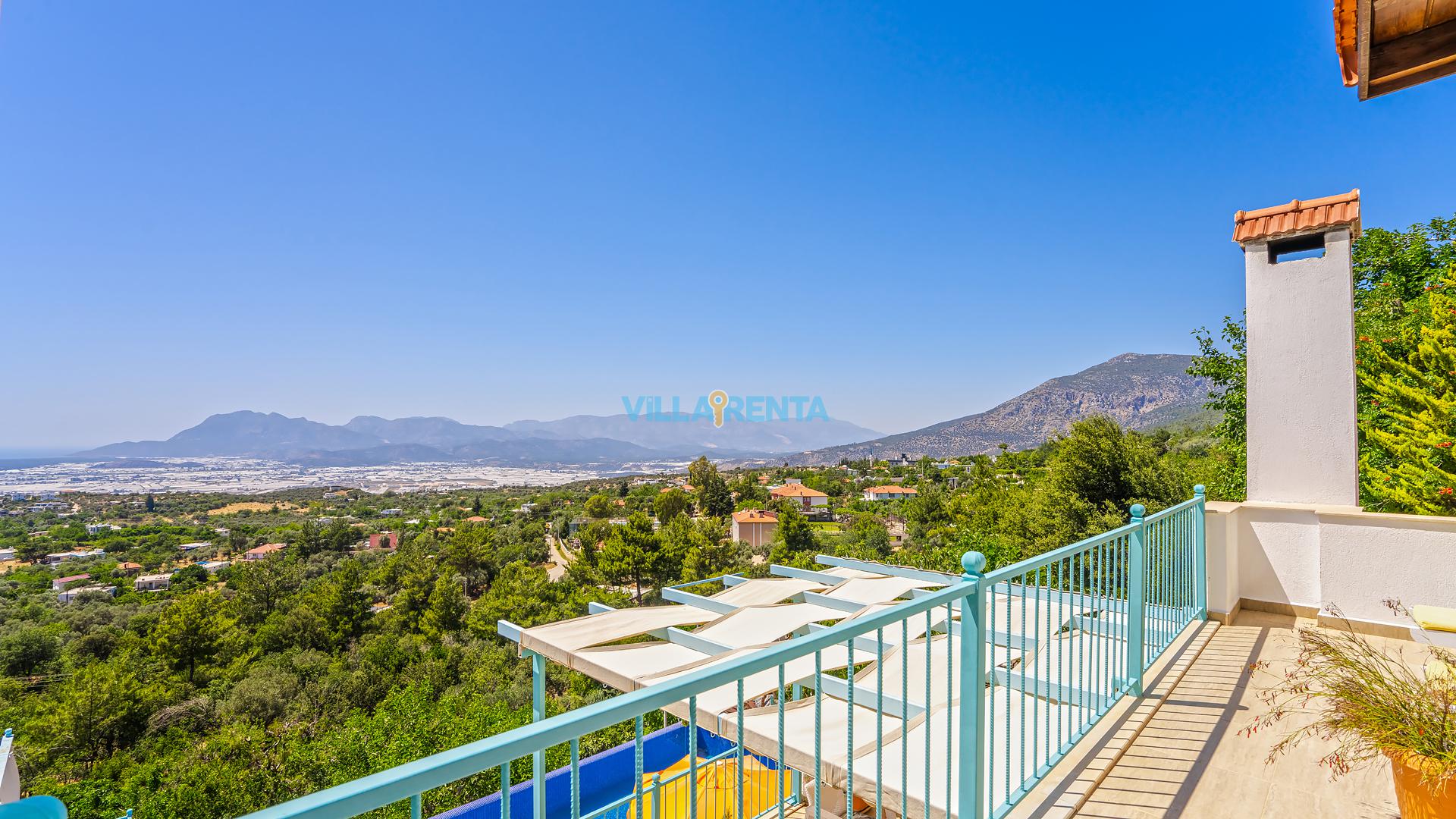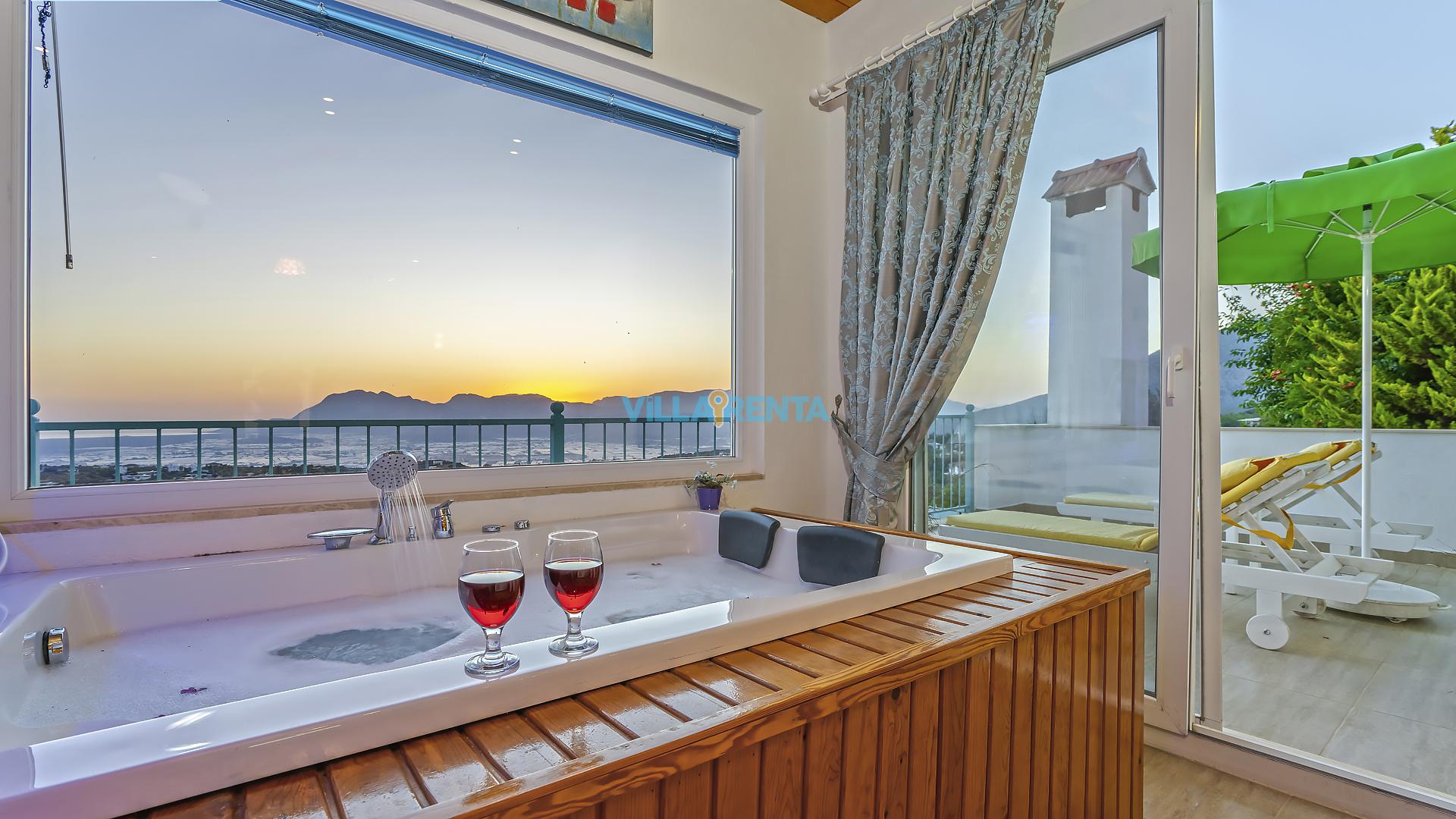 Villa Cennet, Üzümlü bölgesinde konumlanan havuzu tam korunaklı villamızdır. Villamız Kalabalık gruplar ve aileler için ideal bir seçenektir. Villamızın üç katlı bir mimarisi bulunmaktadır. 3 yatak odalı 6 kişilik bir villadır. Tüm odalarında ve salonunda klima bulunmaktadır. İki yatak odasında çift kişilik yatak, ayrıca bu odalarda ebeveyn banyoları da yer almaktadır. Diğer yatak odasında iki adet tek kişilik yatak yer almaktadır. Bu odanın kullandığı banyo ortak alanda yer almaktadır. Ayrıca çift kişilik odanın muhteşem manzaralı bir balkonu ve çift kişilik jakuzisi bulunmaktadır. Çok geniş bir alana kurulan villamız, tek başına doğa içerisinde yer almaktadır. Tatilinizi yemyeşil bir doğa içerisinde ve Kalkan'ın eşsiz manzarası ile birlikte muhteşem bir şekilde geçirebilirsiniz.
