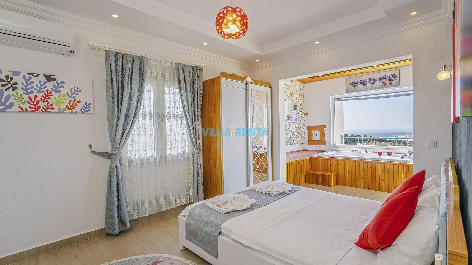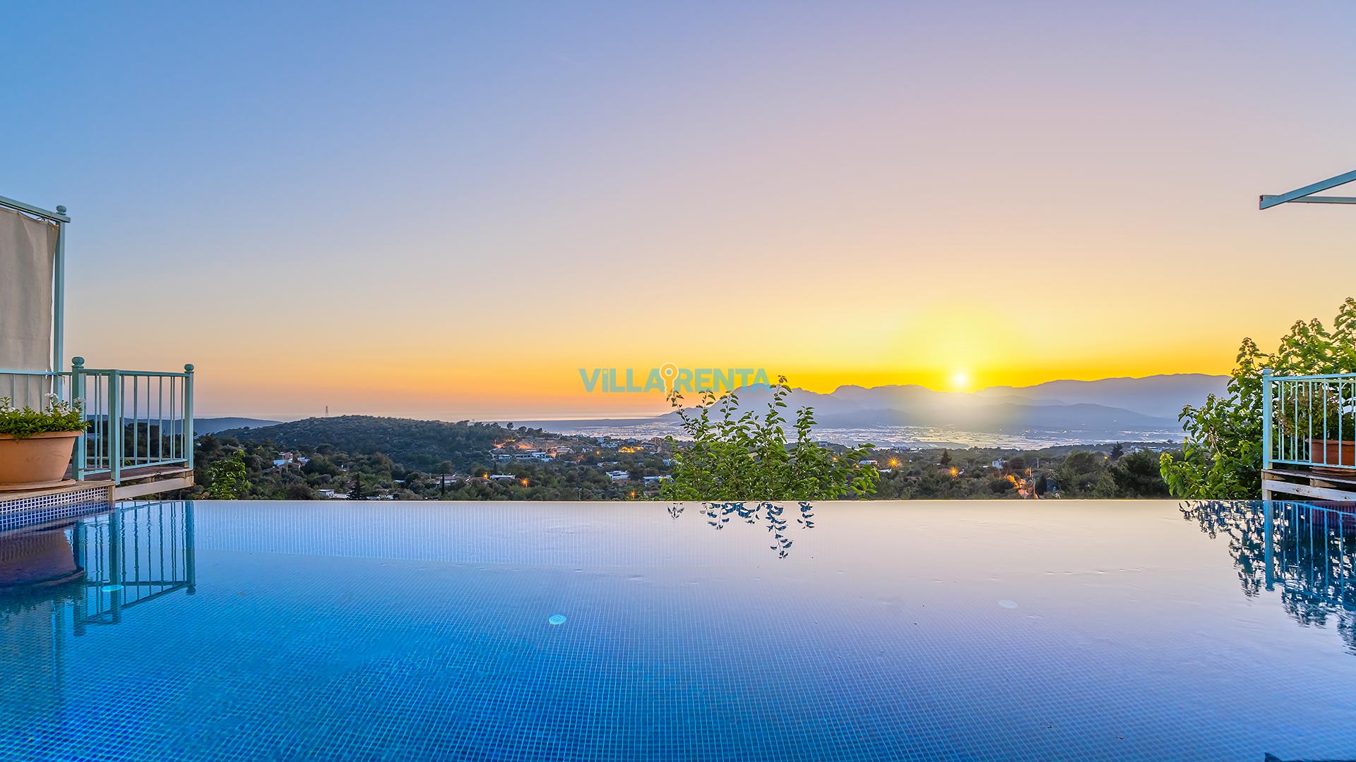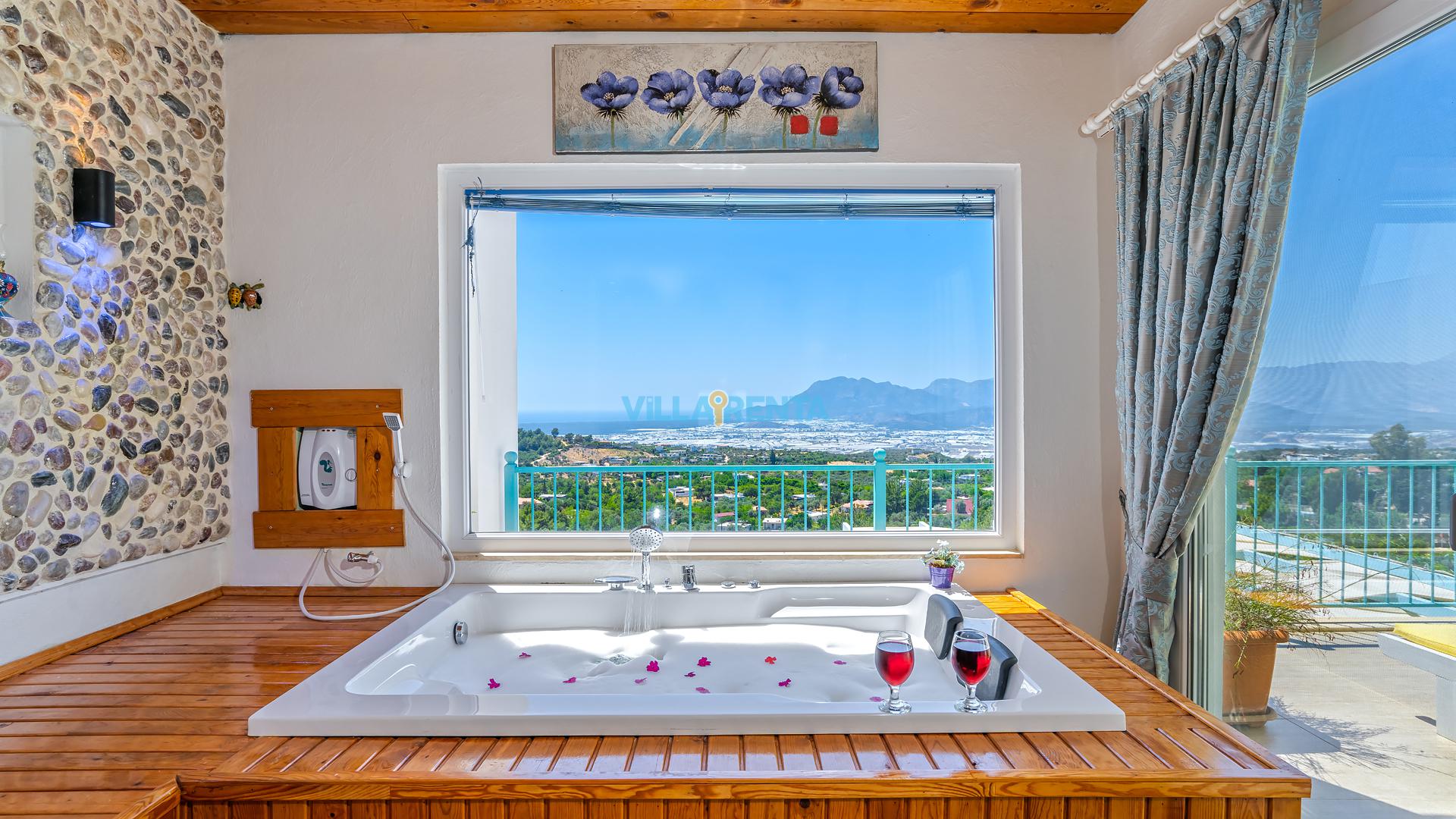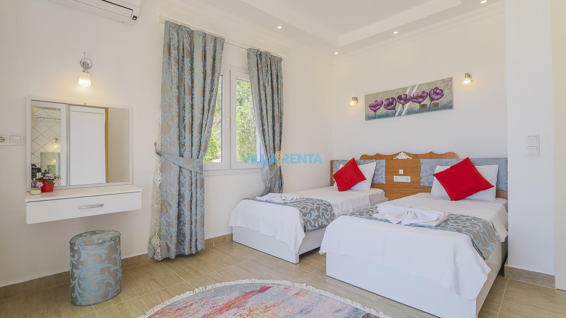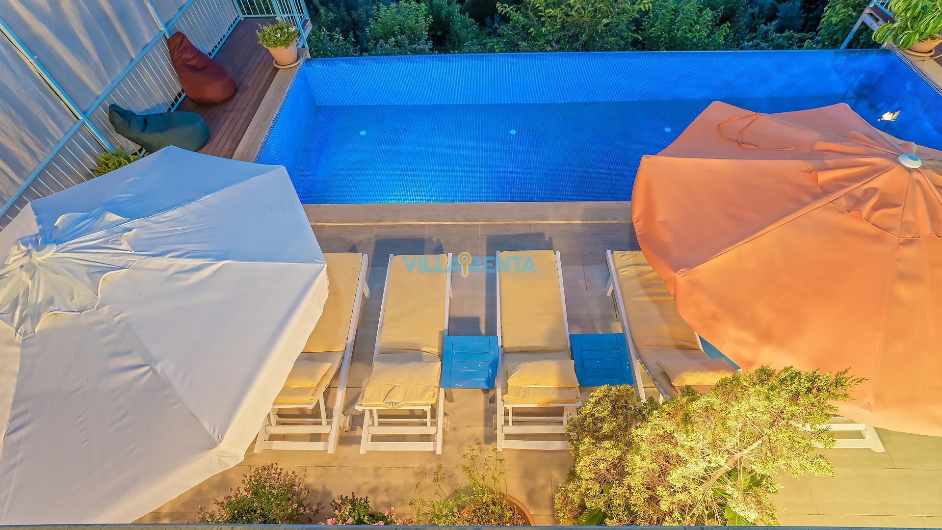 Villa Cennet, Üzümlü bölgesinde konumlanan havuzu tam korunaklı villamızdır. Villamız Kalabalık gruplar ve aileler için ideal bir seçenektir. Villamızın üç katlı bir mimarisi bulunmaktadır. 3 yatak odalı 6 kişilik bir villadır. Tüm odalarında ve salonunda klima bulunmaktadır. İki yatak odasında çift kişilik yatak, ayrıca bu odalarda ebeveyn banyoları da yer almaktadır. Diğer yatak odasında iki adet tek kişilik yatak yer almaktadır. Bu odanın kullandığı banyo ortak alanda yer almaktadır. Ayrıca çift kişilik odanın muhteşem manzaralı bir balkonu ve çift kişilik jakuzisi bulunmaktadır. Çok geniş bir alana kurulan villamız, tek başına doğa içerisinde yer almaktadır. Tatilinizi yemyeşil bir doğa içerisinde ve Kalkan'ın eşsiz manzarası ile birlikte muhteşem bir şekilde geçirebilirsiniz.