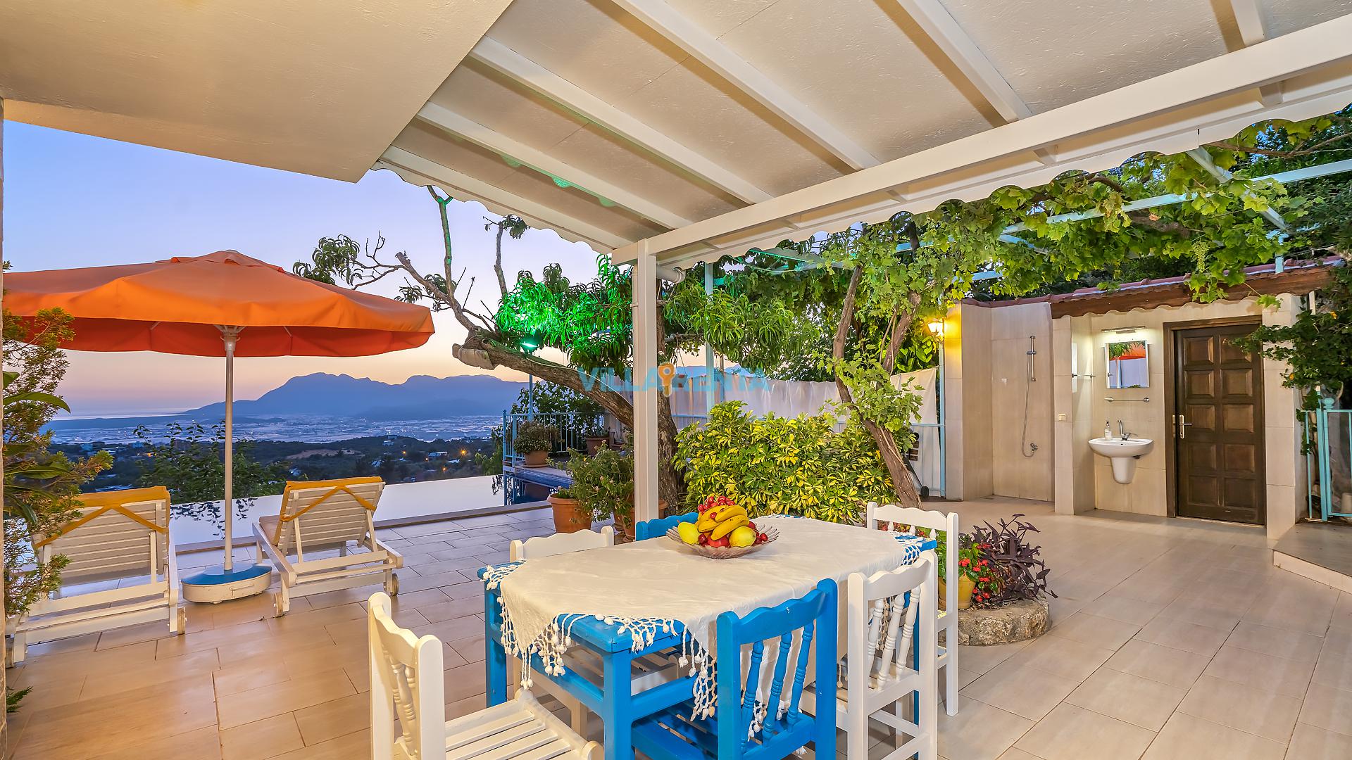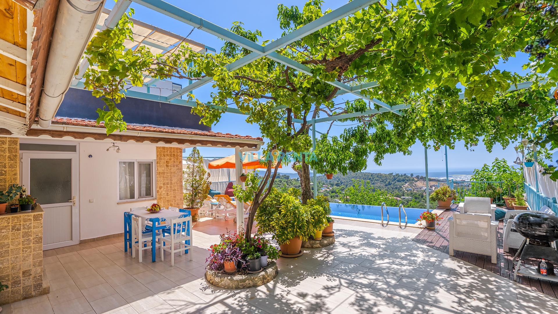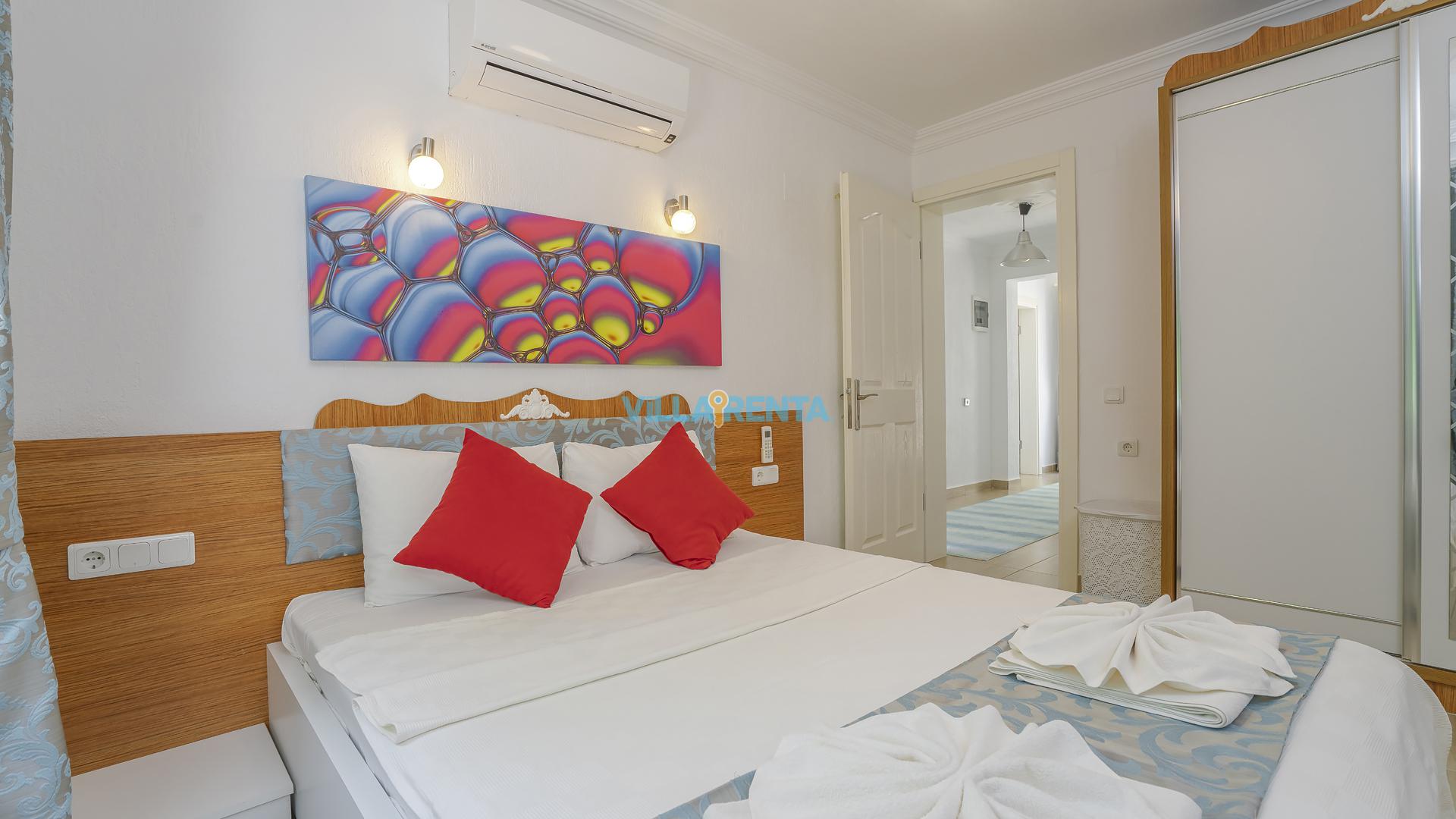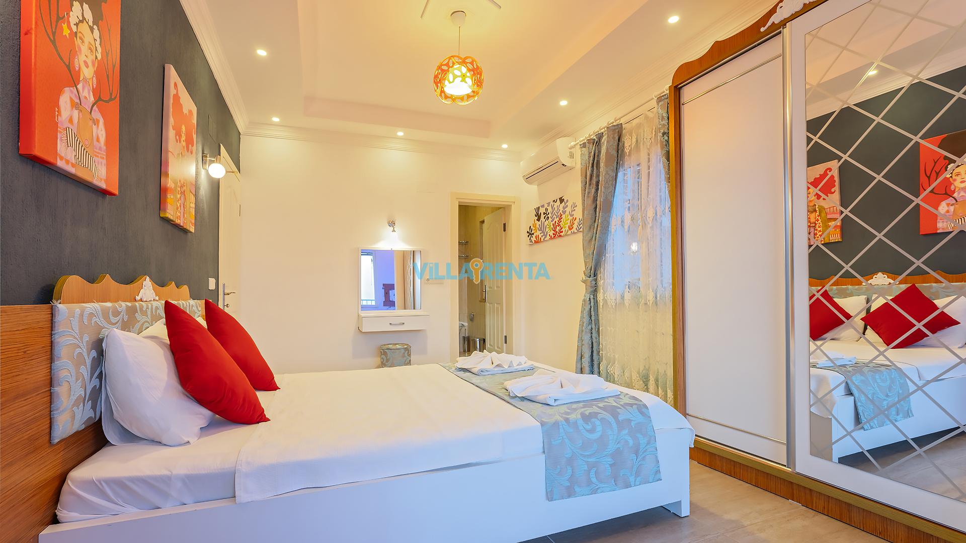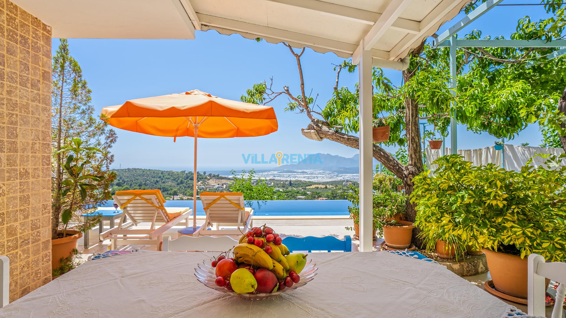 Villa Cennet, Üzümlü bölgesinde konumlanan havuzu tam korunaklı villamızdır. Villamız Kalabalık gruplar ve aileler için ideal bir seçenektir. Villamızın üç katlı bir mimarisi bulunmaktadır. 3 yatak odalı 6 kişilik bir villadır. Tüm odalarında ve salonunda klima bulunmaktadır. İki yatak odasında çift kişilik yatak, ayrıca bu odalarda ebeveyn banyoları da yer almaktadır. Diğer yatak odasında iki adet tek kişilik yatak yer almaktadır. Bu odanın kullandığı banyo ortak alanda yer almaktadır. Ayrıca çift kişilik odanın muhteşem manzaralı bir balkonu ve çift kişilik jakuzisi bulunmaktadır. Çok geniş bir alana kurulan villamız, tek başına doğa içerisinde yer almaktadır. Tatilinizi yemyeşil bir doğa içerisinde ve Kalkan'ın eşsiz manzarası ile birlikte muhteşem bir şekilde geçirebilirsiniz.