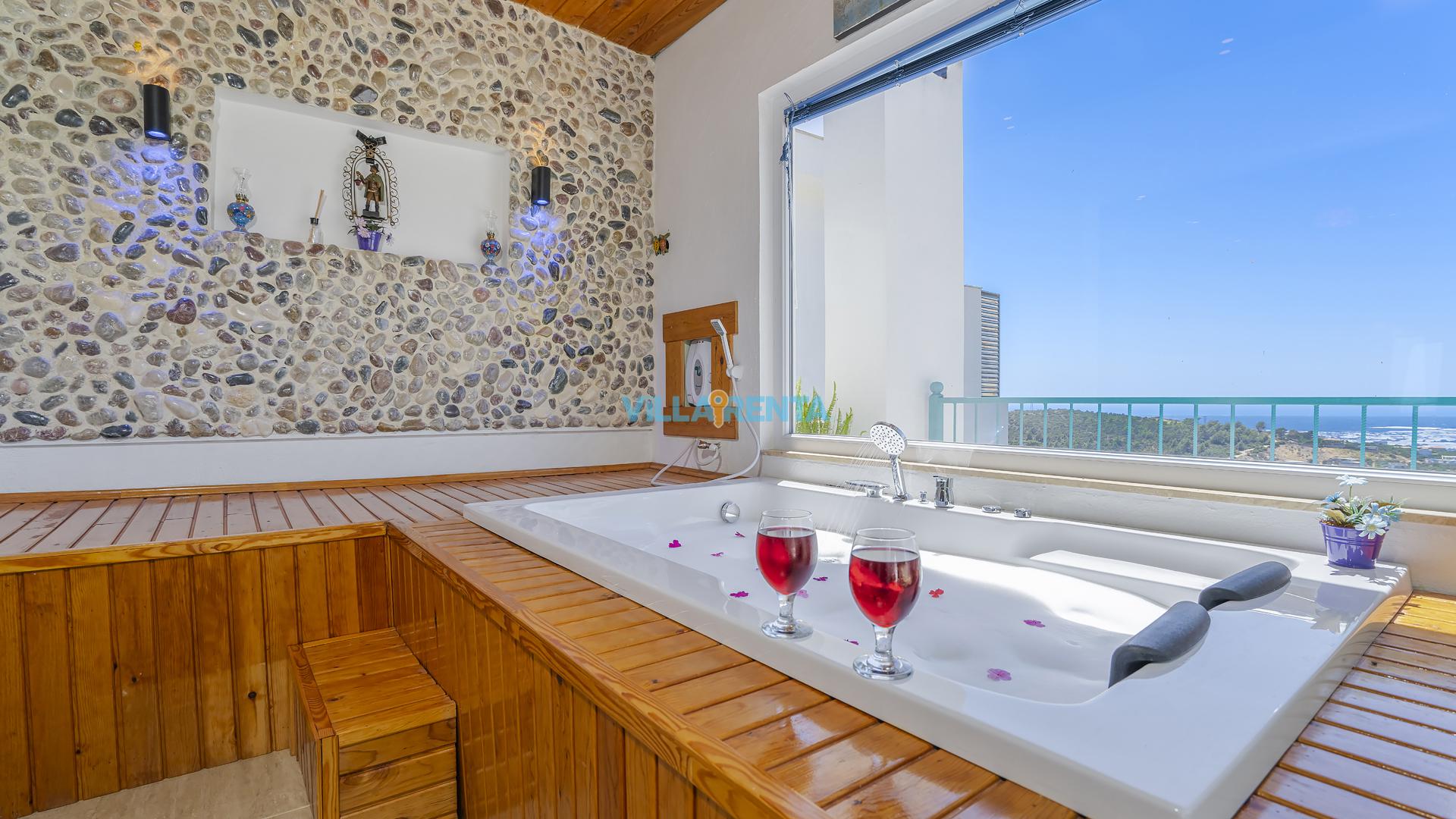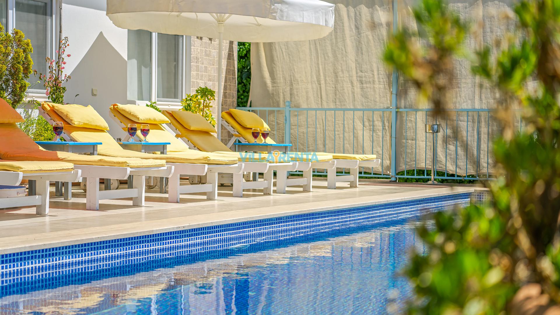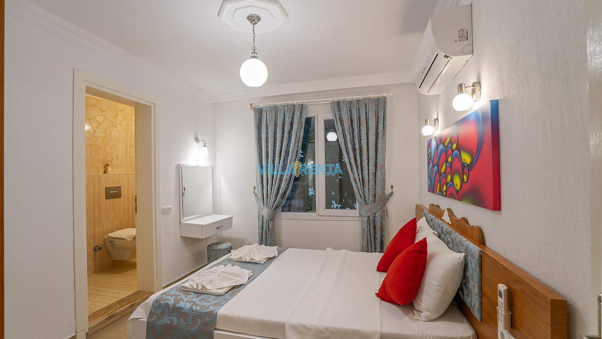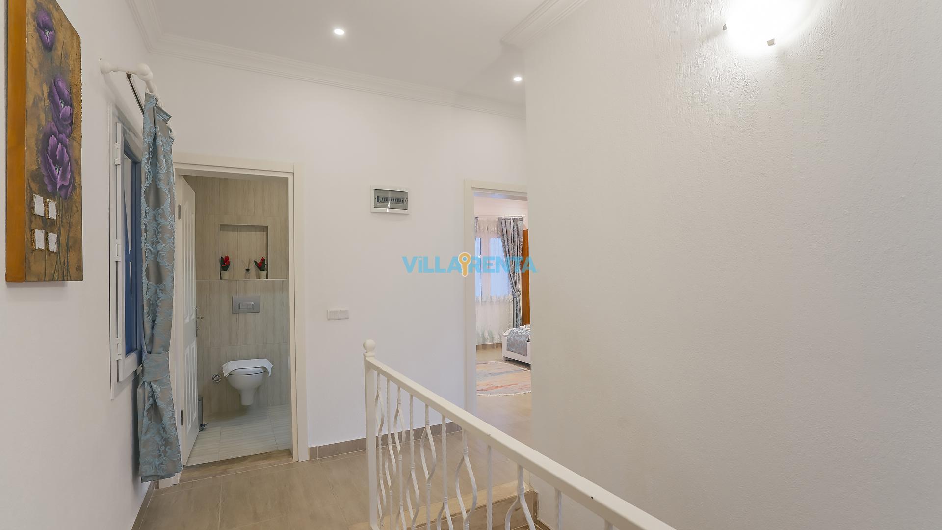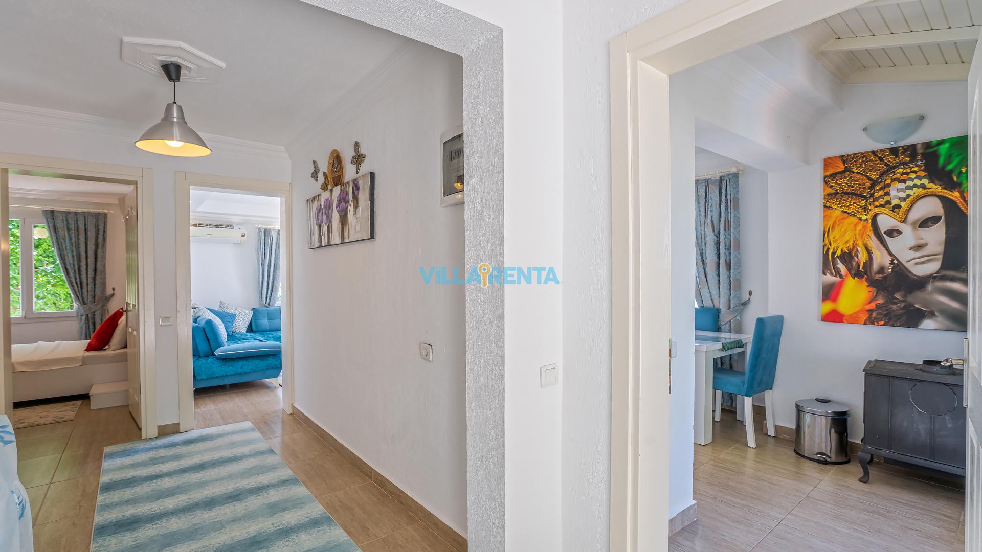 Villa Cennet, Üzümlü bölgesinde konumlanan havuzu tam korunaklı villamızdır. Villamız Kalabalık gruplar ve aileler için ideal bir seçenektir. Villamızın üç katlı bir mimarisi bulunmaktadır. 3 yatak odalı 6 kişilik bir villadır. Tüm odalarında ve salonunda klima bulunmaktadır. İki yatak odasında çift kişilik yatak, ayrıca bu odalarda ebeveyn banyoları da yer almaktadır. Diğer yatak odasında iki adet tek kişilik yatak yer almaktadır. Bu odanın kullandığı banyo ortak alanda yer almaktadır. Ayrıca çift kişilik odanın muhteşem manzaralı bir balkonu ve çift kişilik jakuzisi bulunmaktadır. Çok geniş bir alana kurulan villamız, tek başına doğa içerisinde yer almaktadır. Tatilinizi yemyeşil bir doğa içerisinde ve Kalkan'ın eşsiz manzarası ile birlikte muhteşem bir şekilde geçirebilirsiniz.