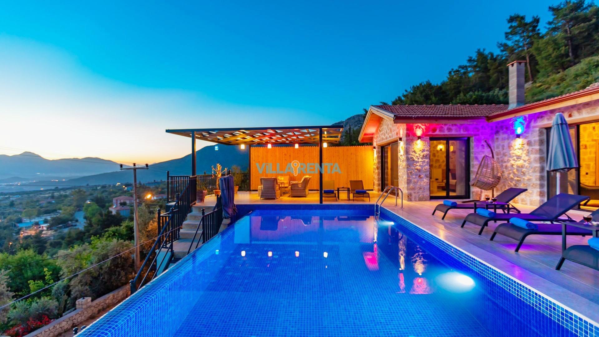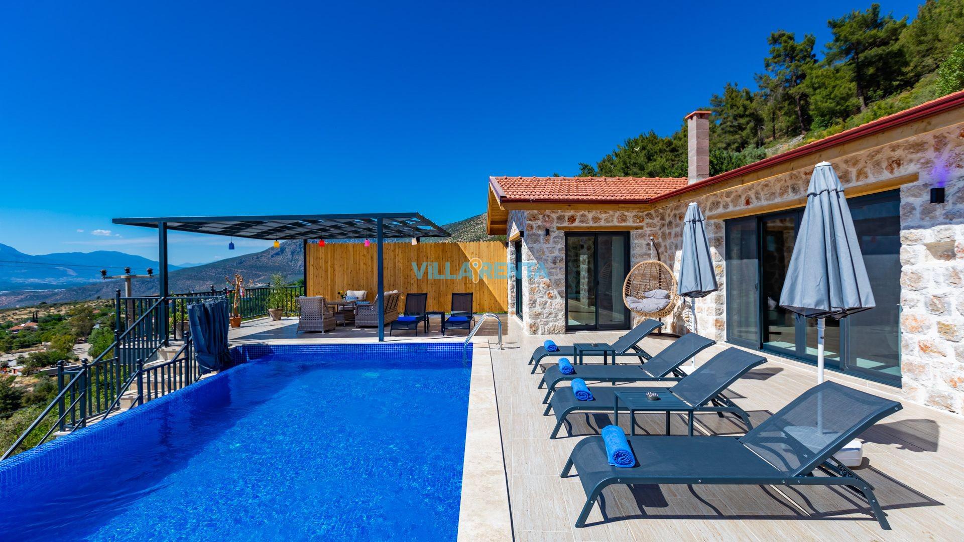 Villa Epona, Kalkan'ın üzümlü mevkiinde eşsiz manzarasıyla göz kamaştıran kiralık tatil villamızdır. Villamızda ihtiyaçlarınızı karşılamak için gereken tüm mutfak araç gereçleri mevcuttur. Tatiliniz boyunca rahatınız ve konforunuz ön planda tutularak tasarlanan villamız, unutulmaz bir tatil için sizleri bekliyor. Villa Epona 2 yatak odalı 4 kişilik konaklama kapasitesine sahip kiralık tatil villamızdır. Villamızın dış mekanı, güzel bir havuz terası ve özel bir yüzme havuzuyla çevrilidir.