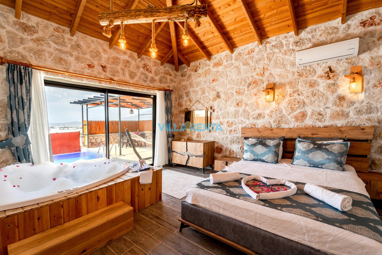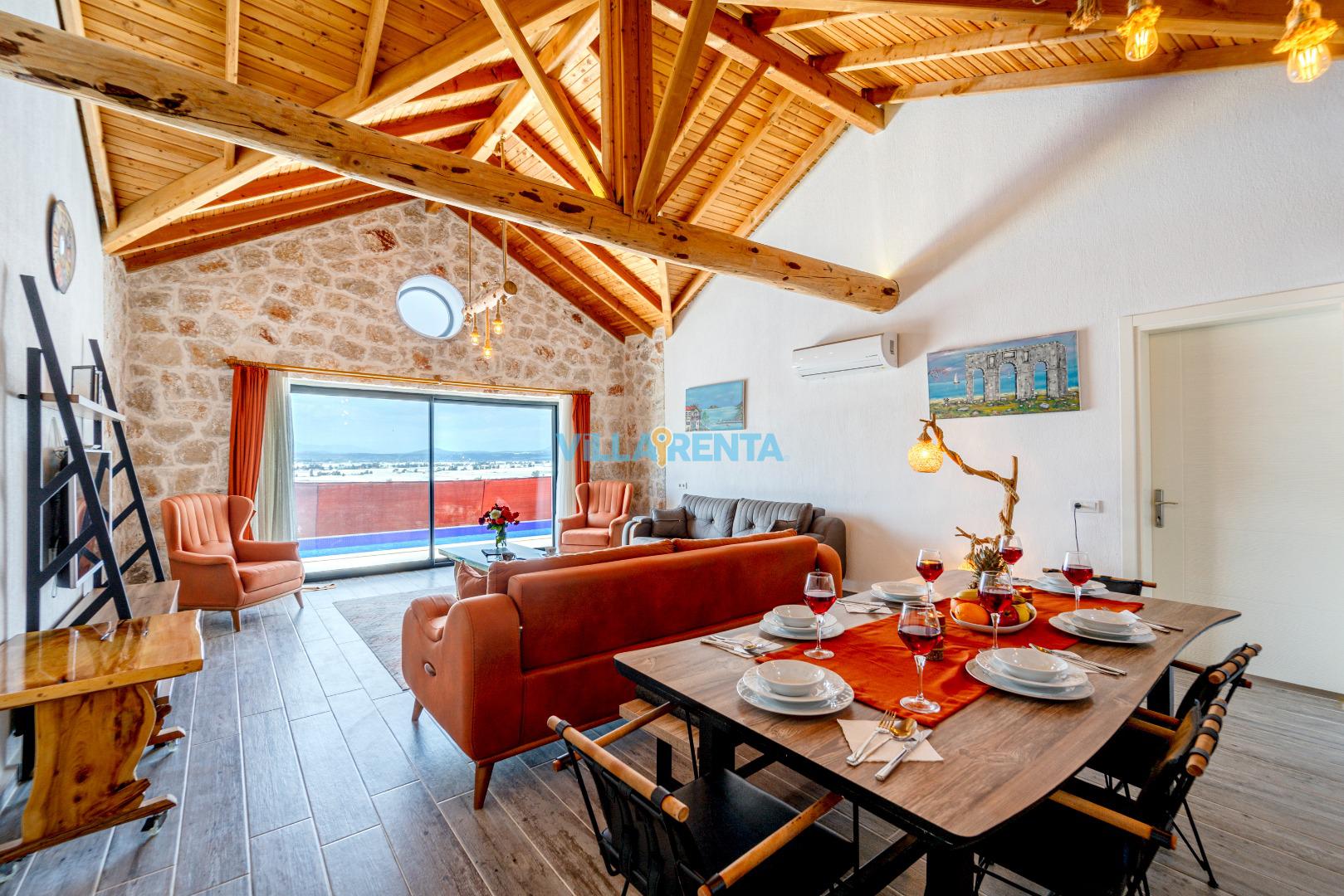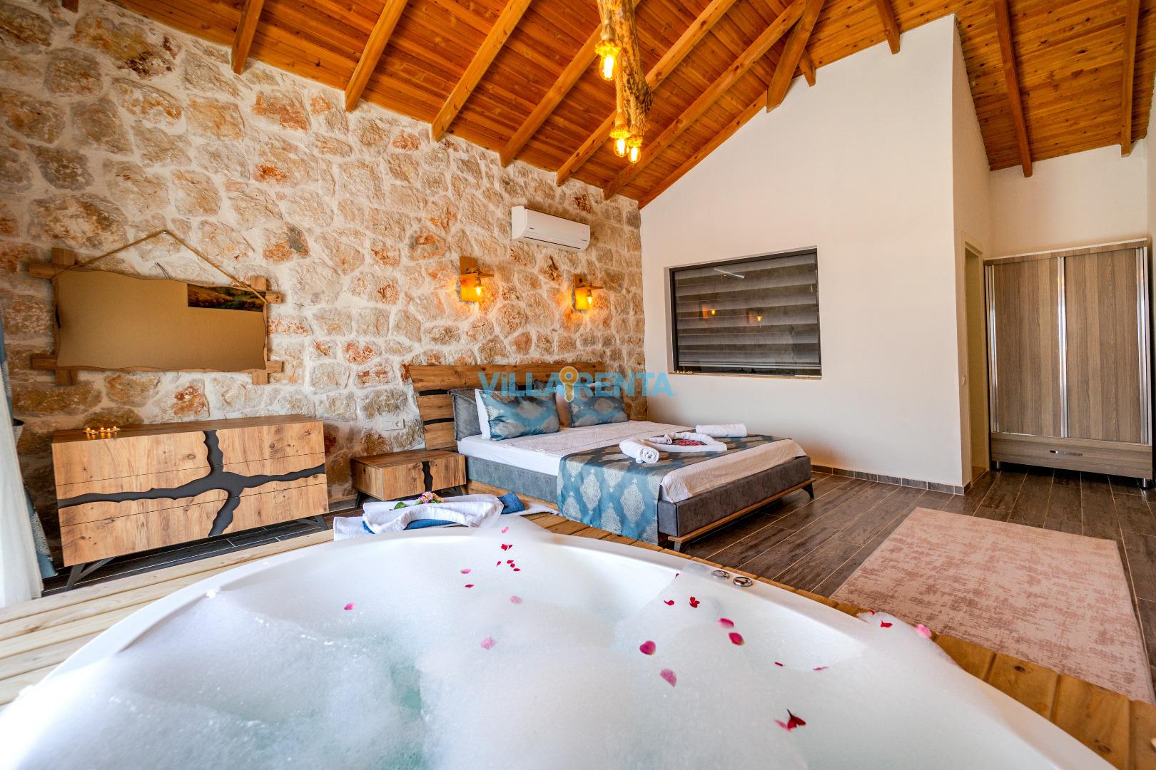 Villa Gemicik, Kalkan Patara bölgesinde bulunan doğa manzaralı tatil villamızdır. Taş mimarisi ve keyifli dekorasyonu ile öne çıkan villamızda jakuzi, masa tenisi, langırt gibi çiftlerimizin tatil keyfini tamamlayıcı detaylar da bulunmaktadır. Villamızın havuz terası korunaklı olup gözlerden uzak huzurlu bir tatil geçirmek isteyen çiftlerimiz için son derece uygundur.
