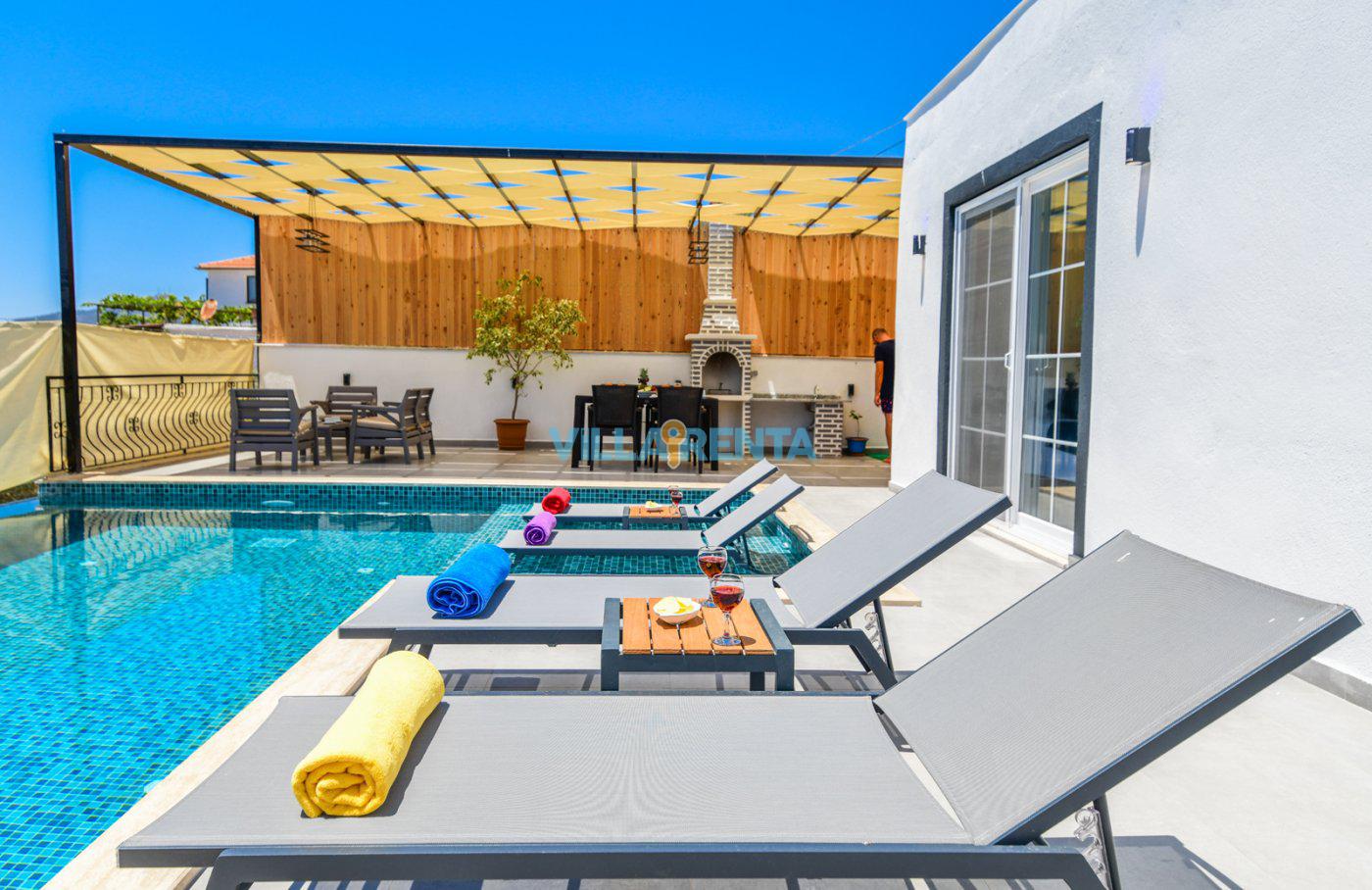 Villa Gıbrıs, Kalkan Ulugöl Mevkii'nde bulunan, 2 yatak odalı 4 kişilik bir tatil villasıdır. Villamızın havuzunda sığ havuzu bulunmaktadır. Çocuklu misafirlerimize ebeveyn gözetiminde bu sığ havuzu çocuk havuzu olarak da kullanabilirler. Müstakil villamız merkeze yakın olup araç ile kolay bir ulaşım sağlanmaktadır. Villamızın bahçe alanı dışarıdan görünmeyecek şekilde tasarlanmıştır, gözden uzak tatil yapmak isteyen misafirlerimiz gönül rahatlığıyla havuzu kullanabilirsiniz.