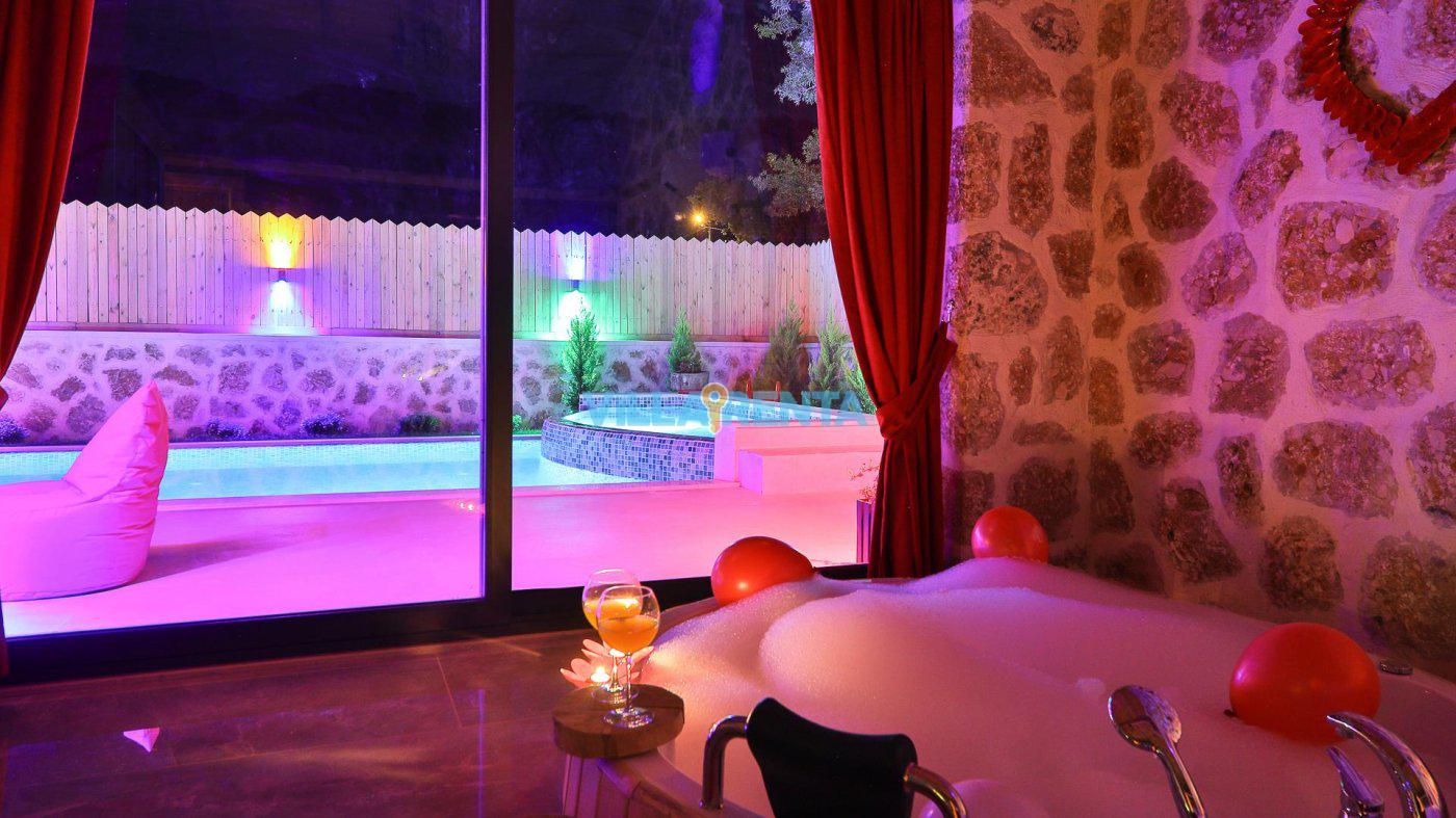 Villa Happiness, Kalkan Sarıbelen köyünde bulunuyor. Villamız balayı çiftleri ve çekirdek aileler için güzel bir tatil imkanı sunmaktadır. Özel taş mimariye sahip villamızda korunaklı özel yüzme havuzu, jakuzi, çocuk havuzu, çocuk oyun alanı, barbekü alanı ile sizlere keyifli ve dinlendirici bir tatil sunmaktadır.