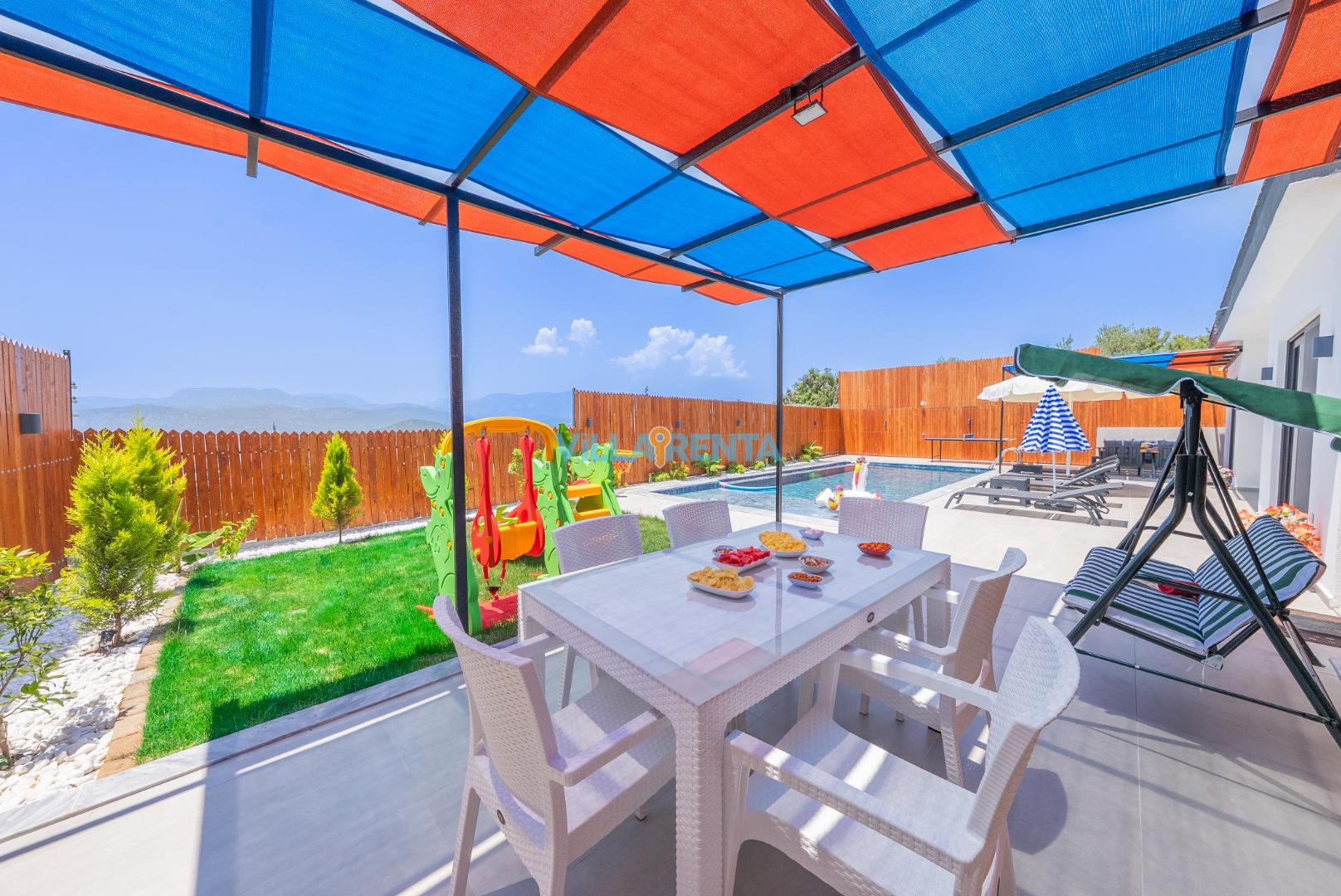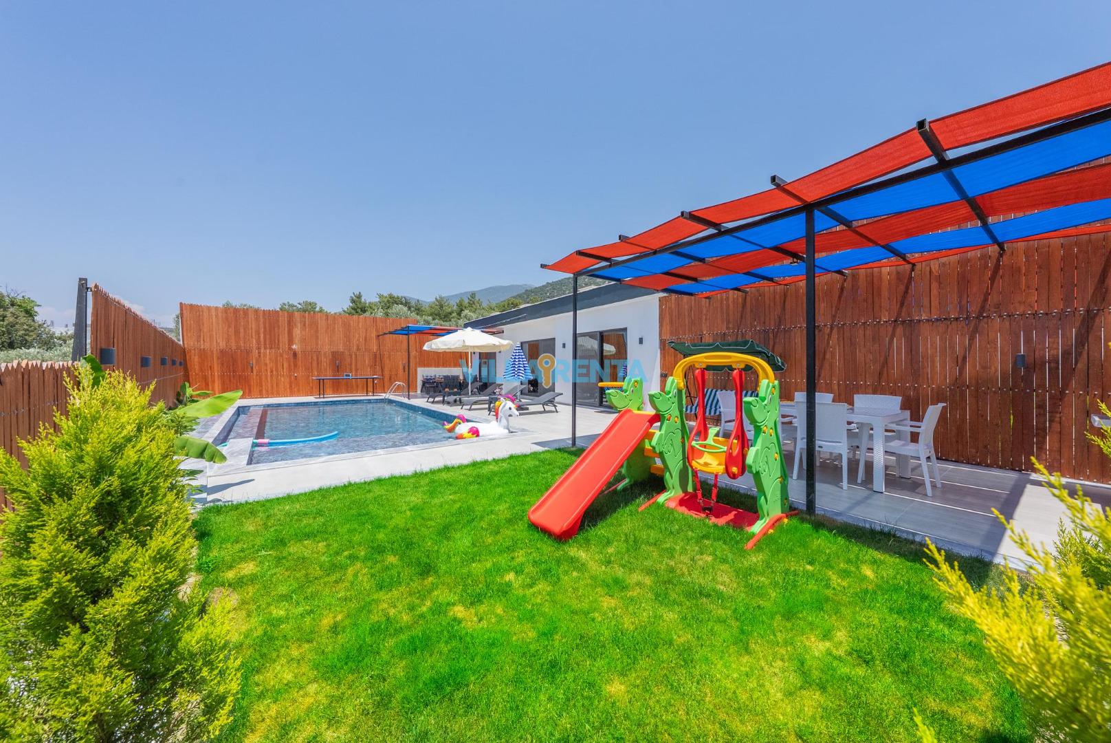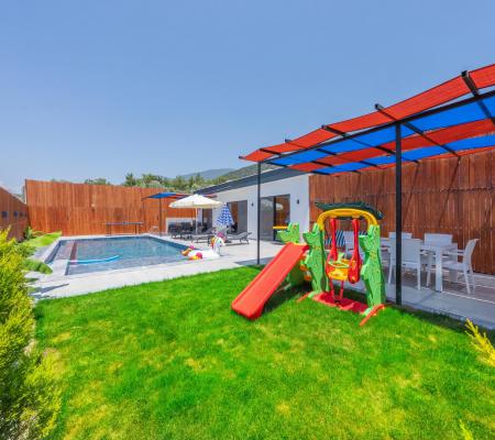 Çocuklar İçin Oyun Alanı: Küçük misafirlerimizin güvenle vakit geçirebileceği villaya özel çocuk oyun parkı, ailelerin rahat bir nefes almasını ve çocukların doğanın tadını çıkarmasını sağlar.