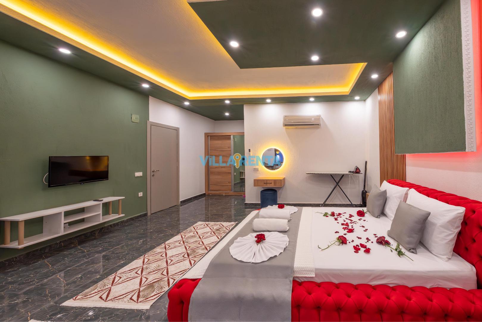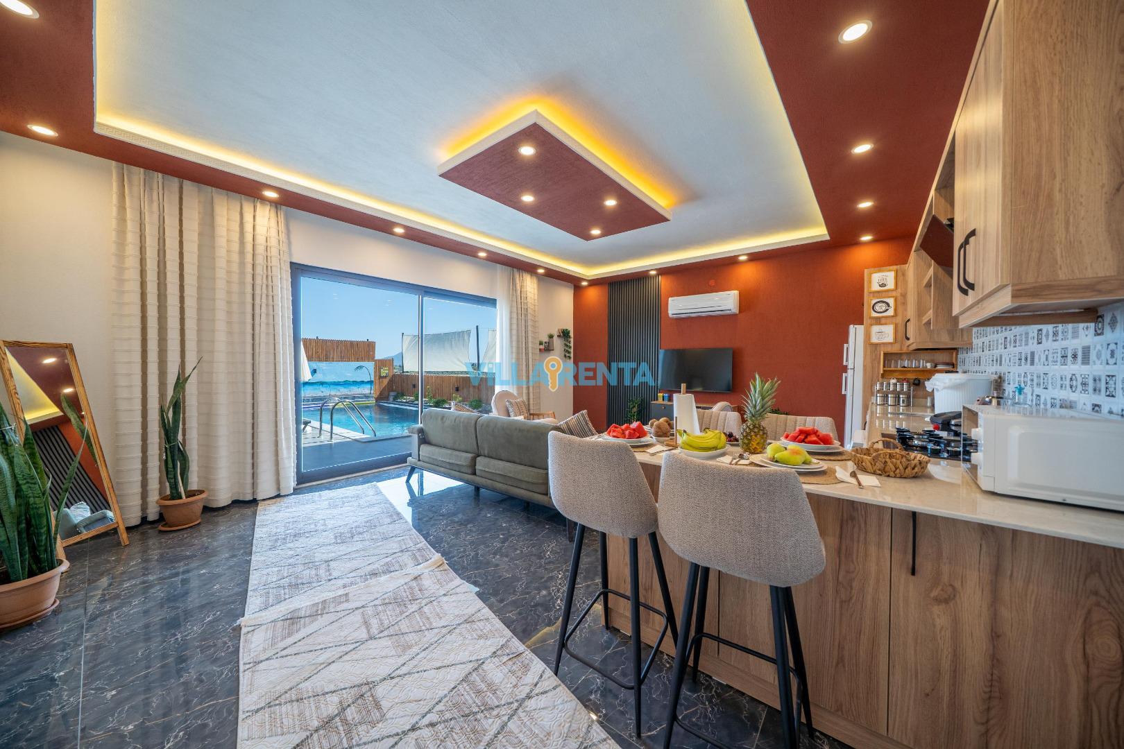 Villa İron 2, Antalya Kalkan Çavdır bölgesinde yer alan 2 kişilik kiralık tatil villamızdır. Sade ve şık dizayn edilmiş olan villamızın içerisinde keyifli bir tatil geçirmeniz için jakuzide vardır. Havuz terası korunaklı olup gözlerden uzakta tatil yapmak isteyen misafirlerimize de uygundur. Villamız sessiz sakin bir tatil isteyen misafirlerimize uygun bir seçenektir.