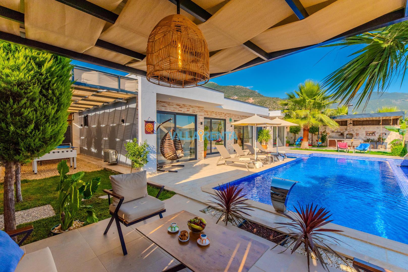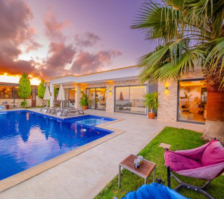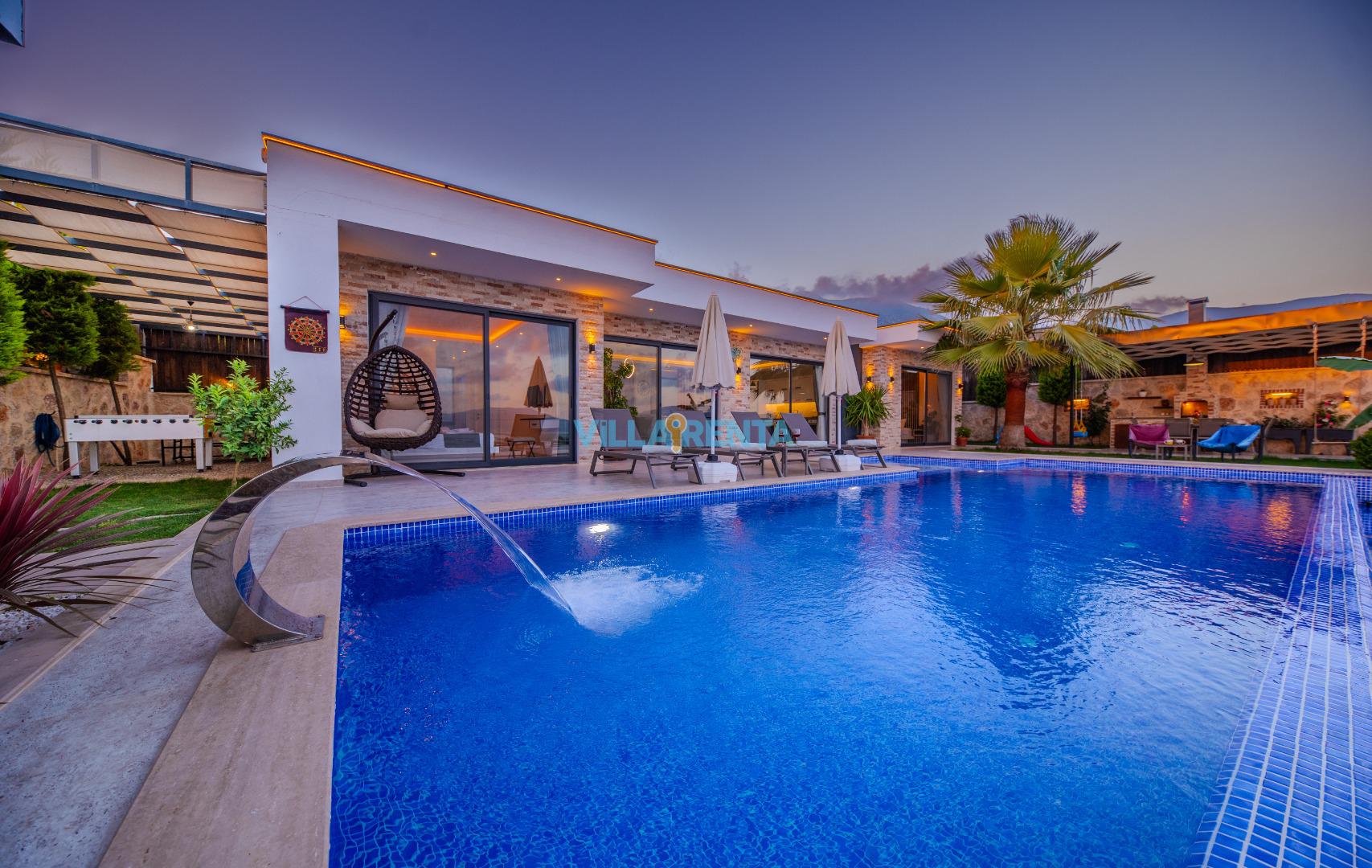 Geniş Havuz ve Tam İzole Yaşam Alanı: Villamızın en dikkat çeken unsuru olan geniş yüzme havuzu, size ferah bir kulvar alanı sunar. Havuzu korunaklı yapısı, dış dünyadan izole, sadece size özel bir atmosferde özgürce güneşlenme ve vakit geçirme imkanı sağlar.