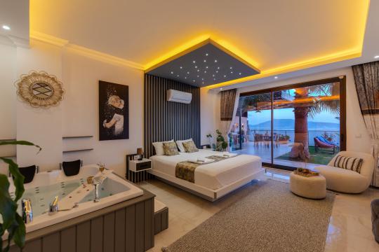 Kişisel Keyif ve Arınma: Tatilinizi bir dinlenme seansına dönüştürmek için villamızda özel bir sauna bulunmaktadır. Ayrıca ebeveyn yatak odasında yer alan jakuzi ve oda içi TV donanımıyla, konforu en özel haliyle deneyimleyebilirsiniz.