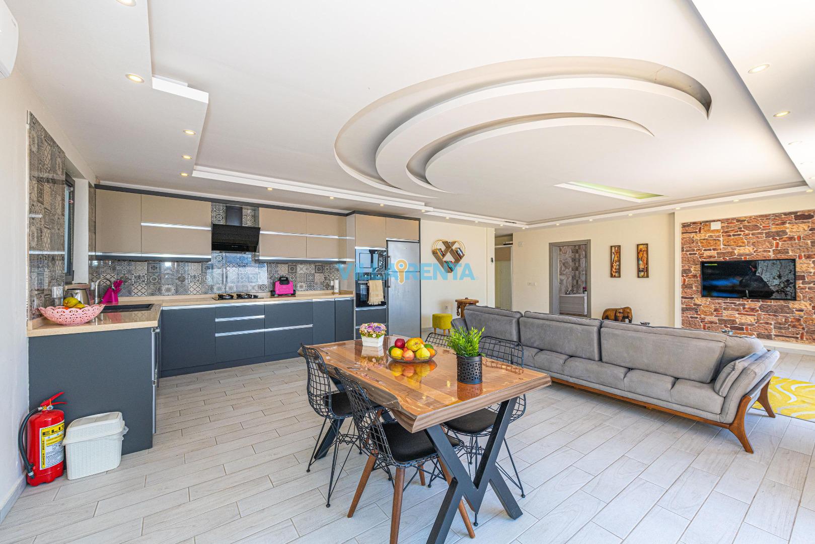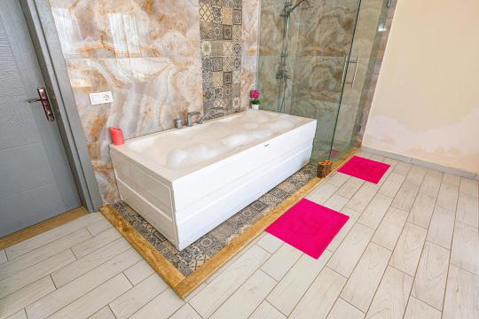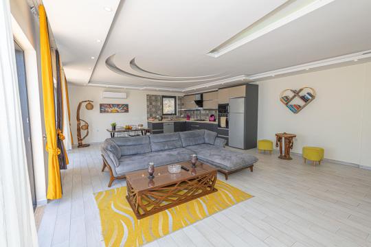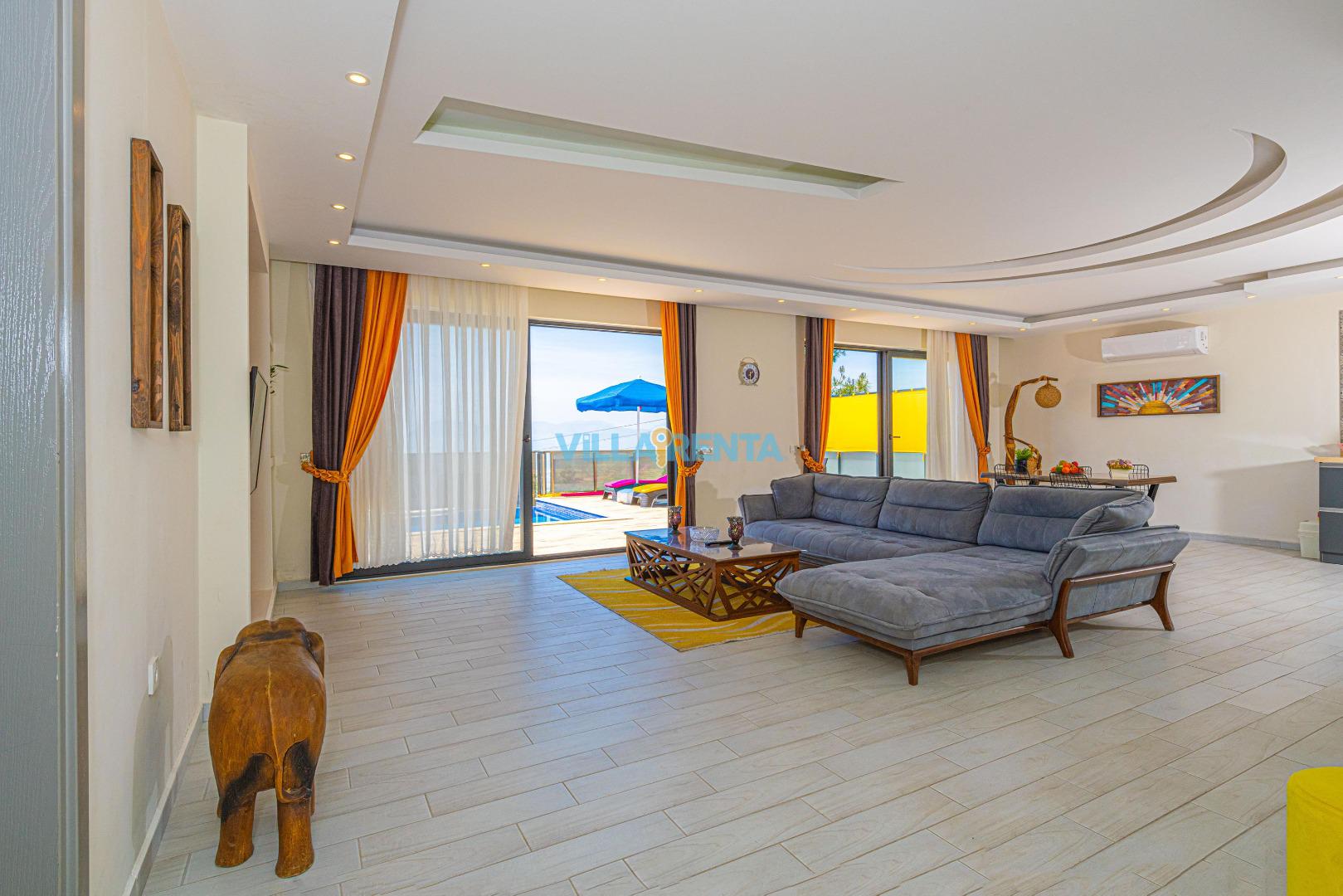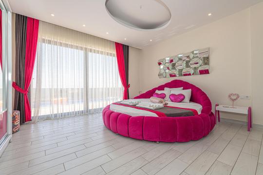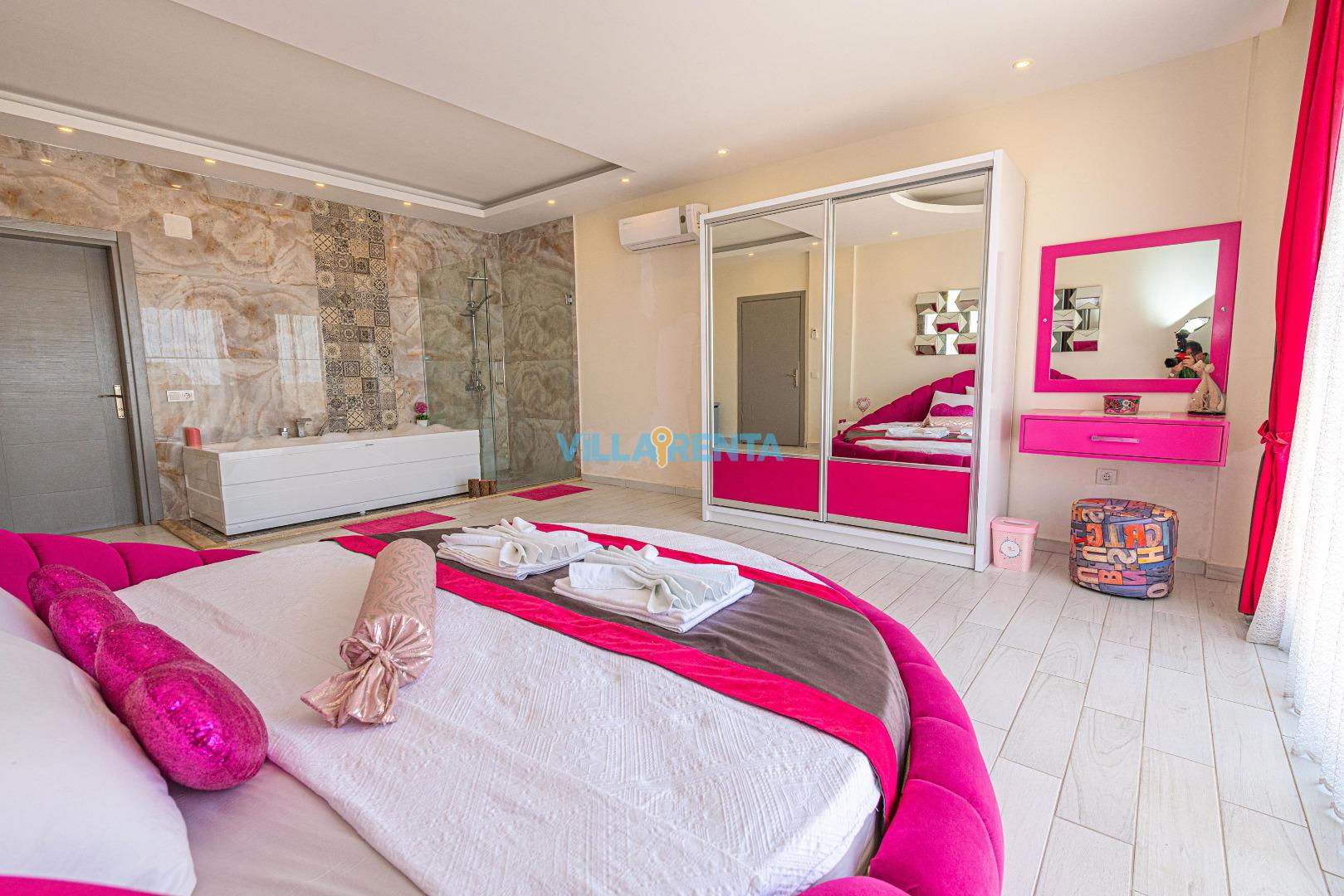 Konforlu İç Mekan: Minimalist ve şık bir tasarıma sahip villamızda, yatak odasındaki jakuzi ile kendinizi şımartın.