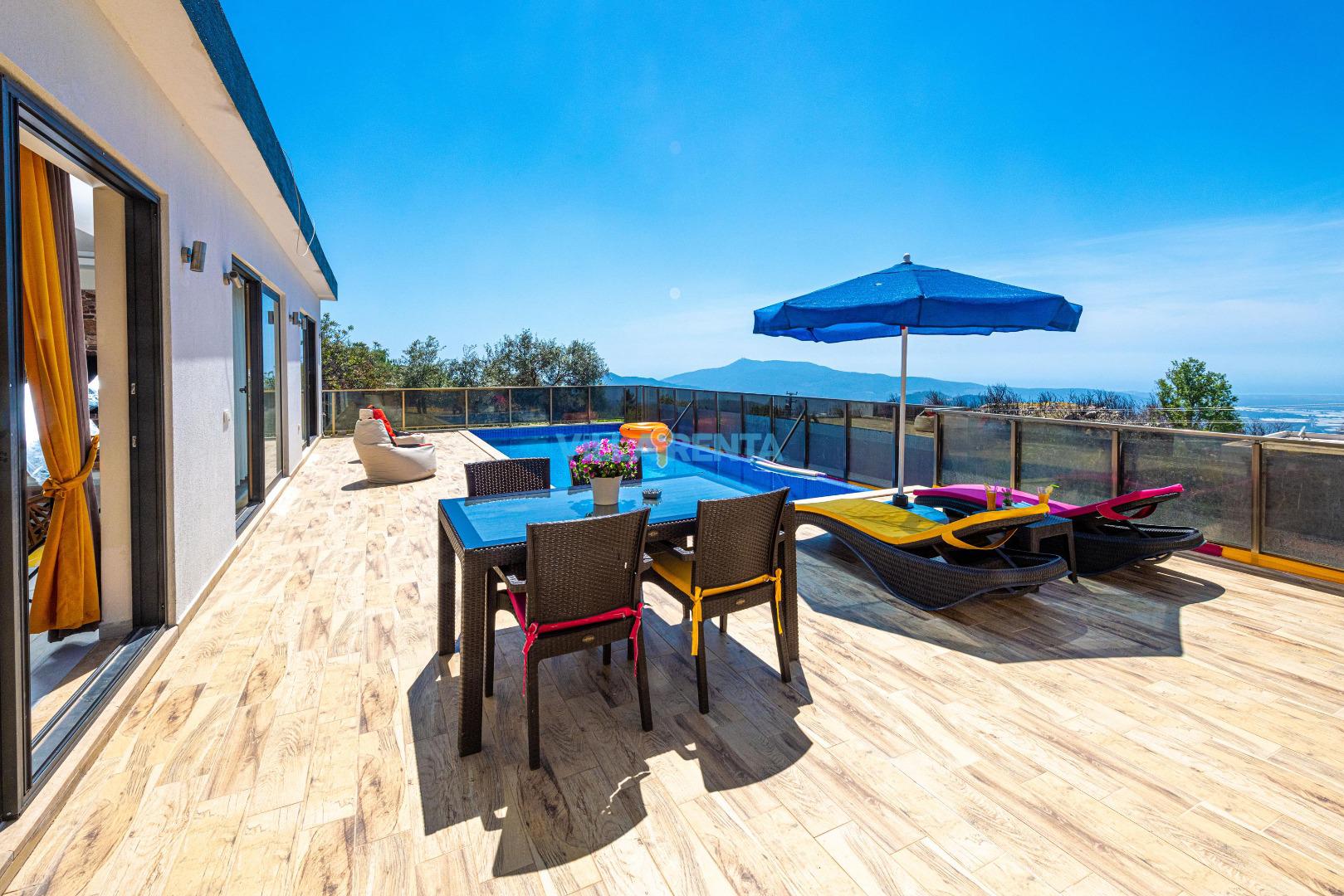 Eşsiz Teras Keyfi: Özel havuzunuzda serinledikten sonra terastaki yemek masasında doğanın sesini dinleyerek kahvaltınızı yapabilirsiniz.