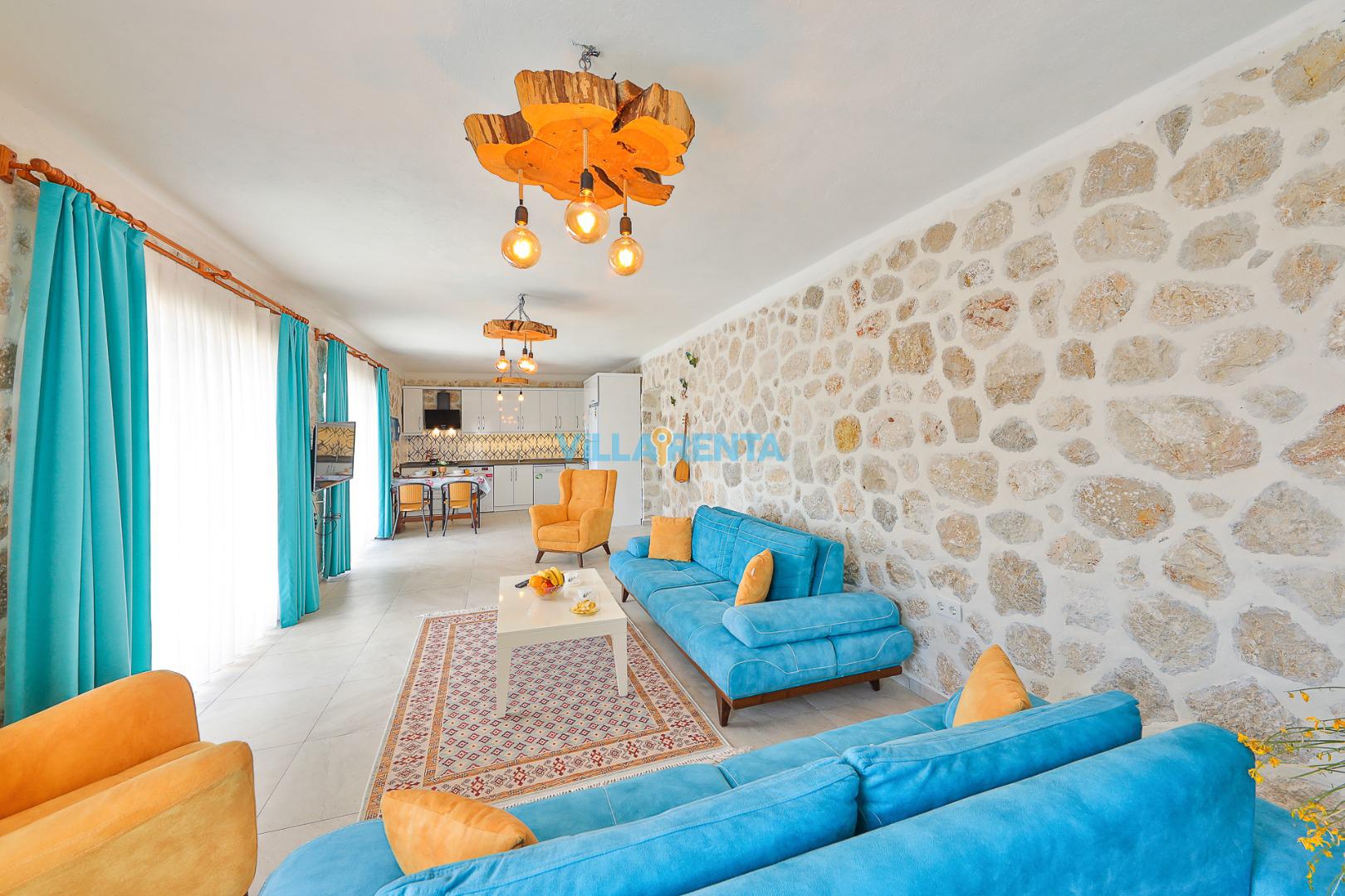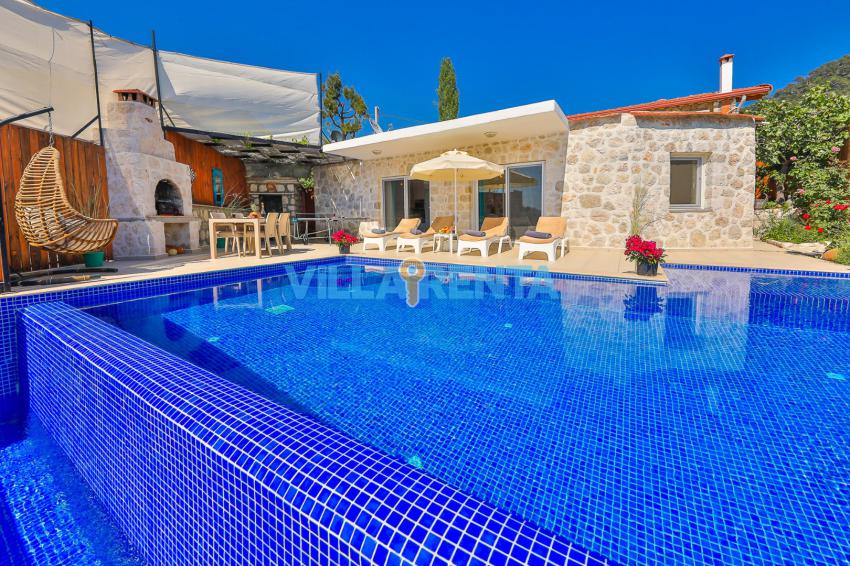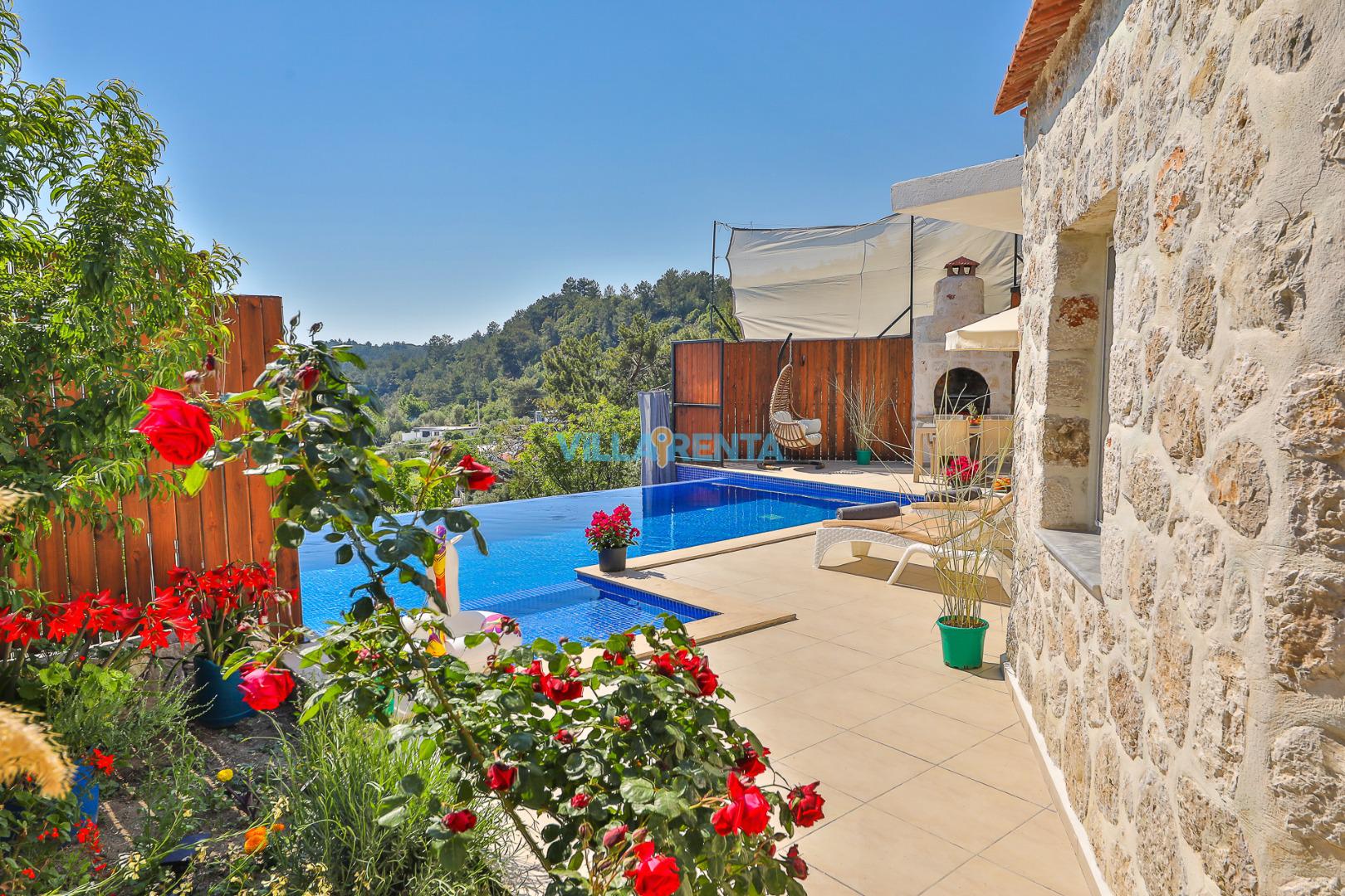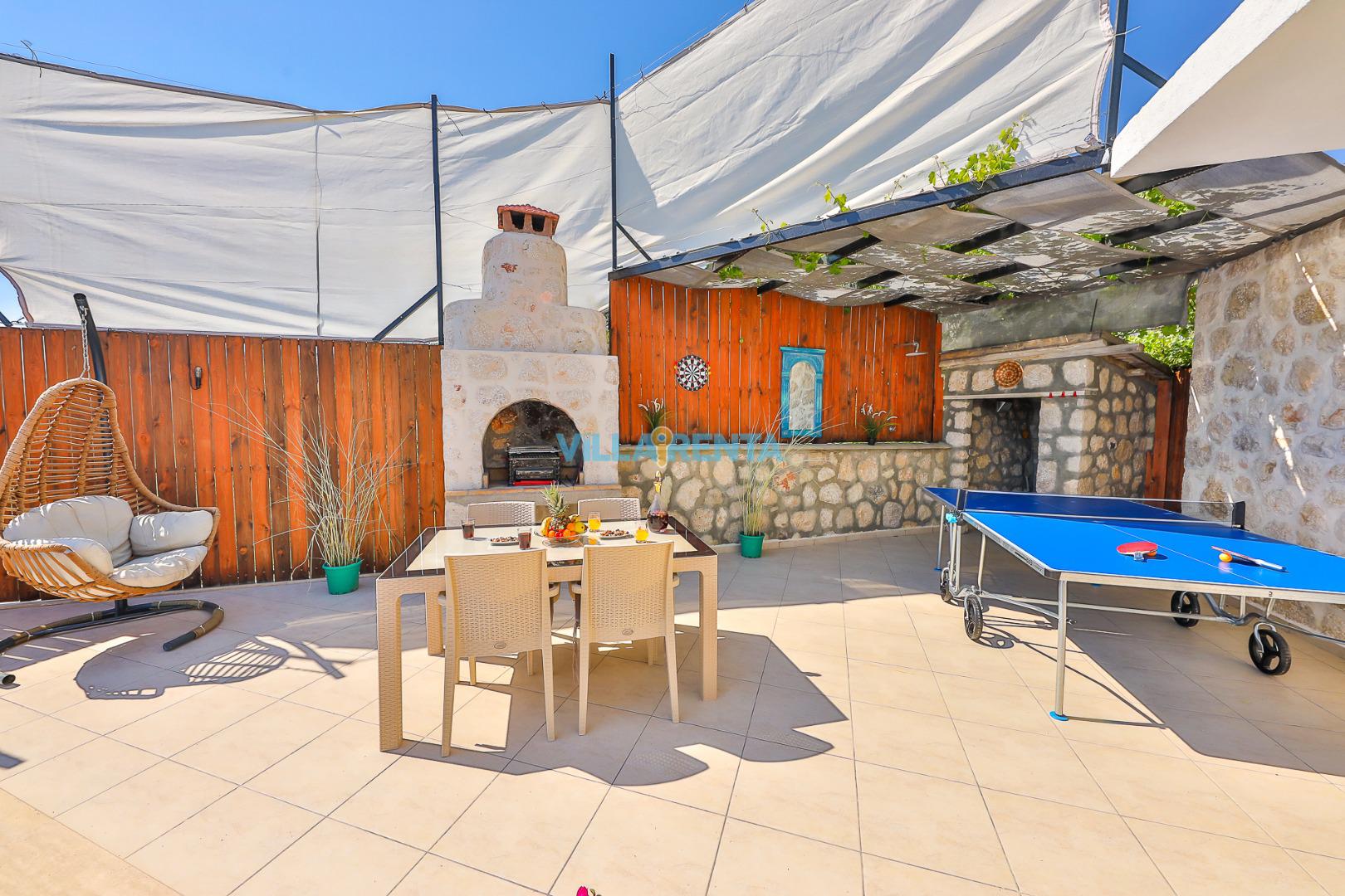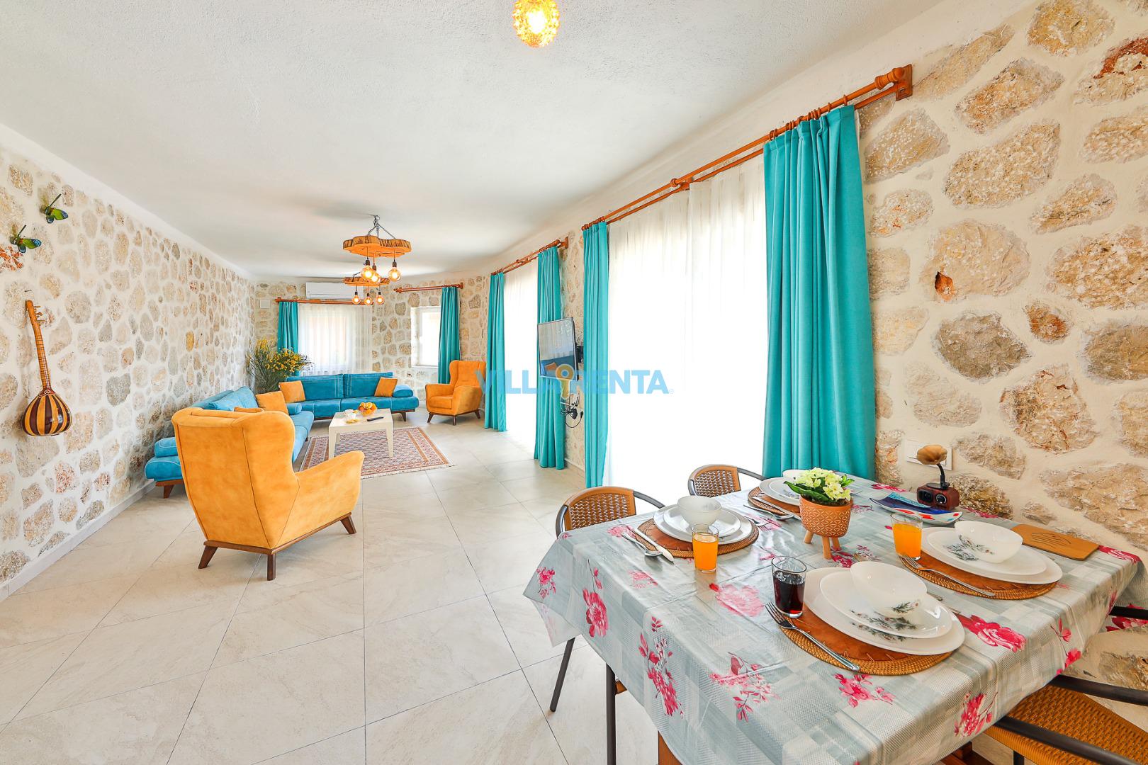 Doğal ve Sağlıklı Taş Mimari: Villamızın taş duvarları, yaz aylarında doğal bir serinlik sağlarken, konaklamanıza otantik ve sıcak bir atmosfer katar.