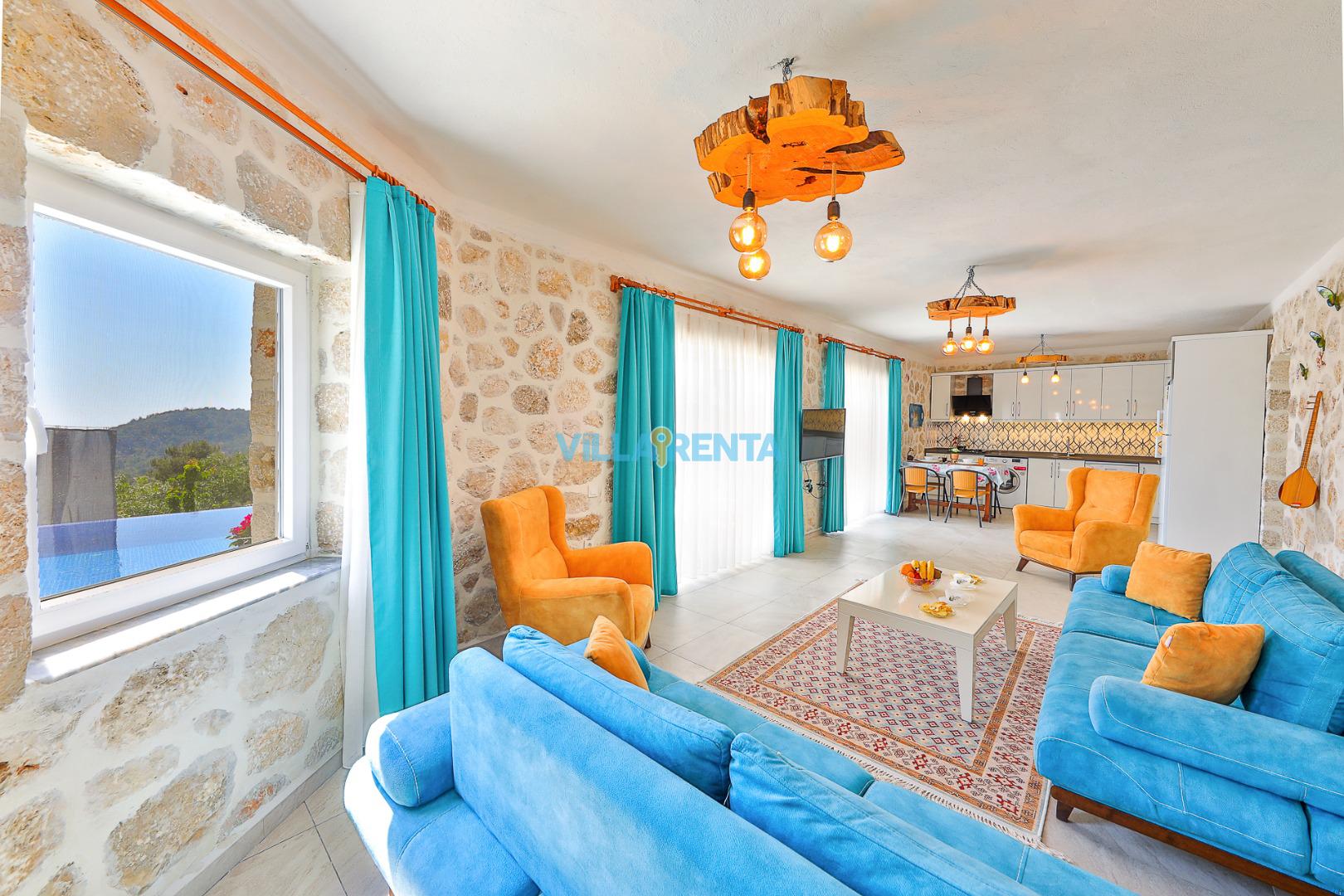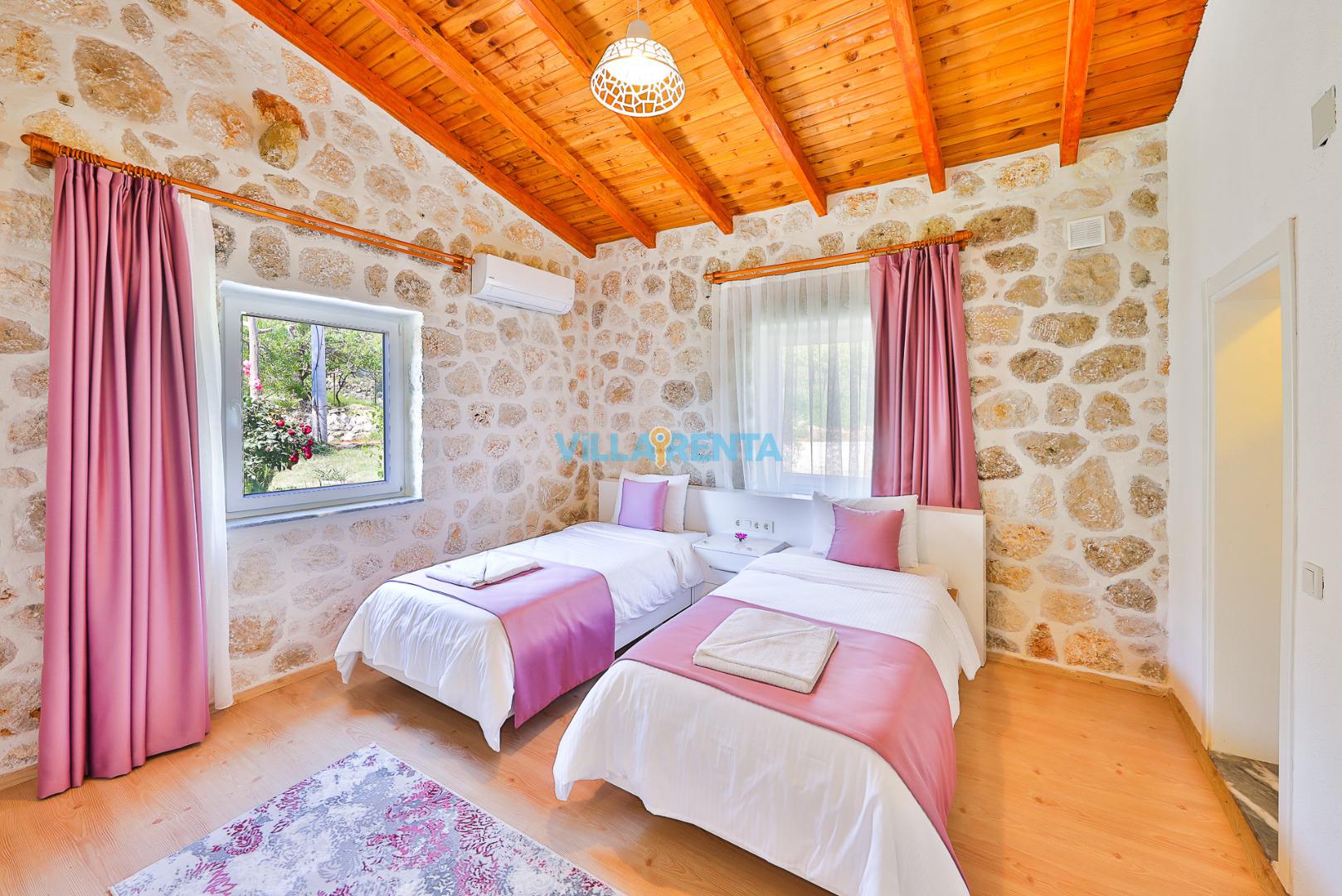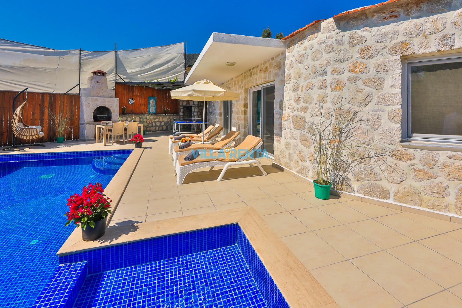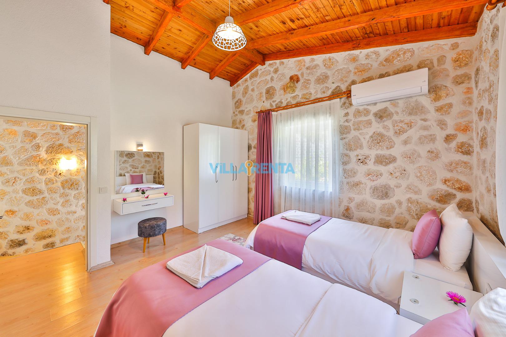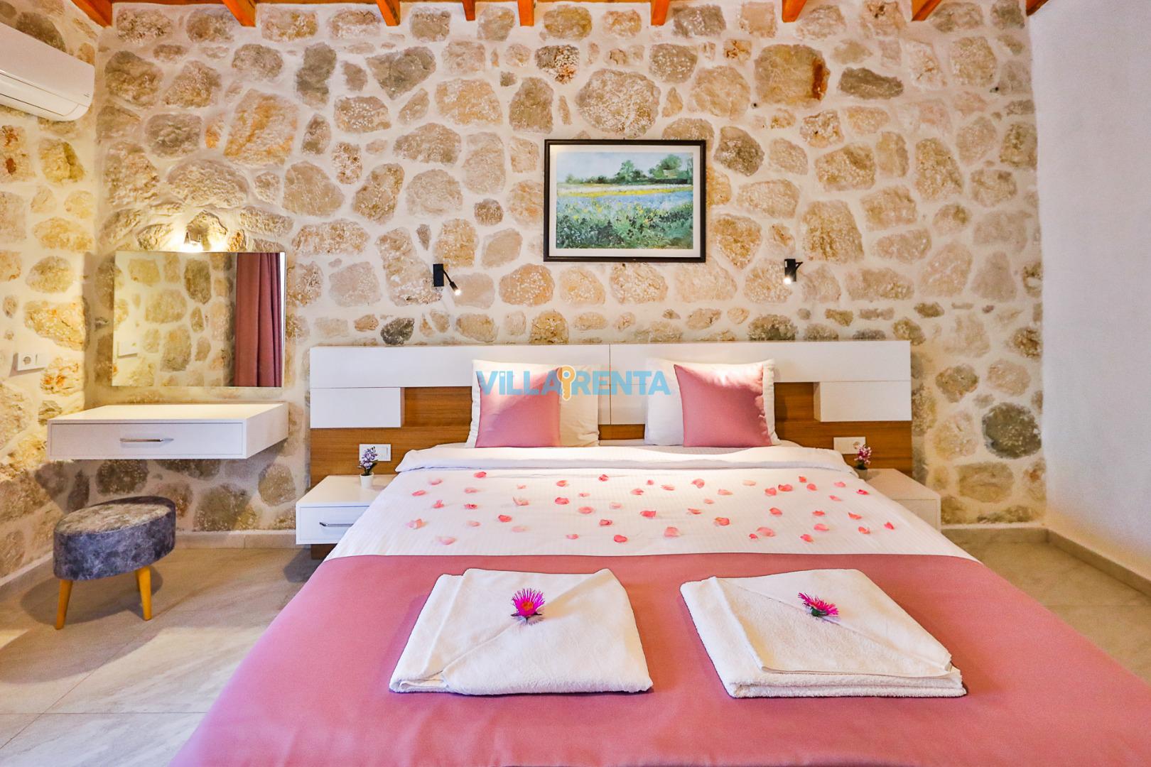 Doğal ve Sağlıklı Taş Mimari: Villamızın taş duvarları, yaz aylarında doğal bir serinlik sağlarken, konaklamanıza otantik ve sıcak bir atmosfer katar.