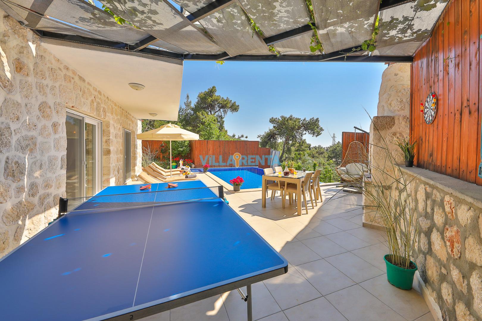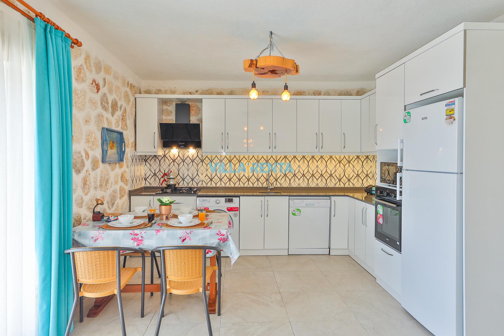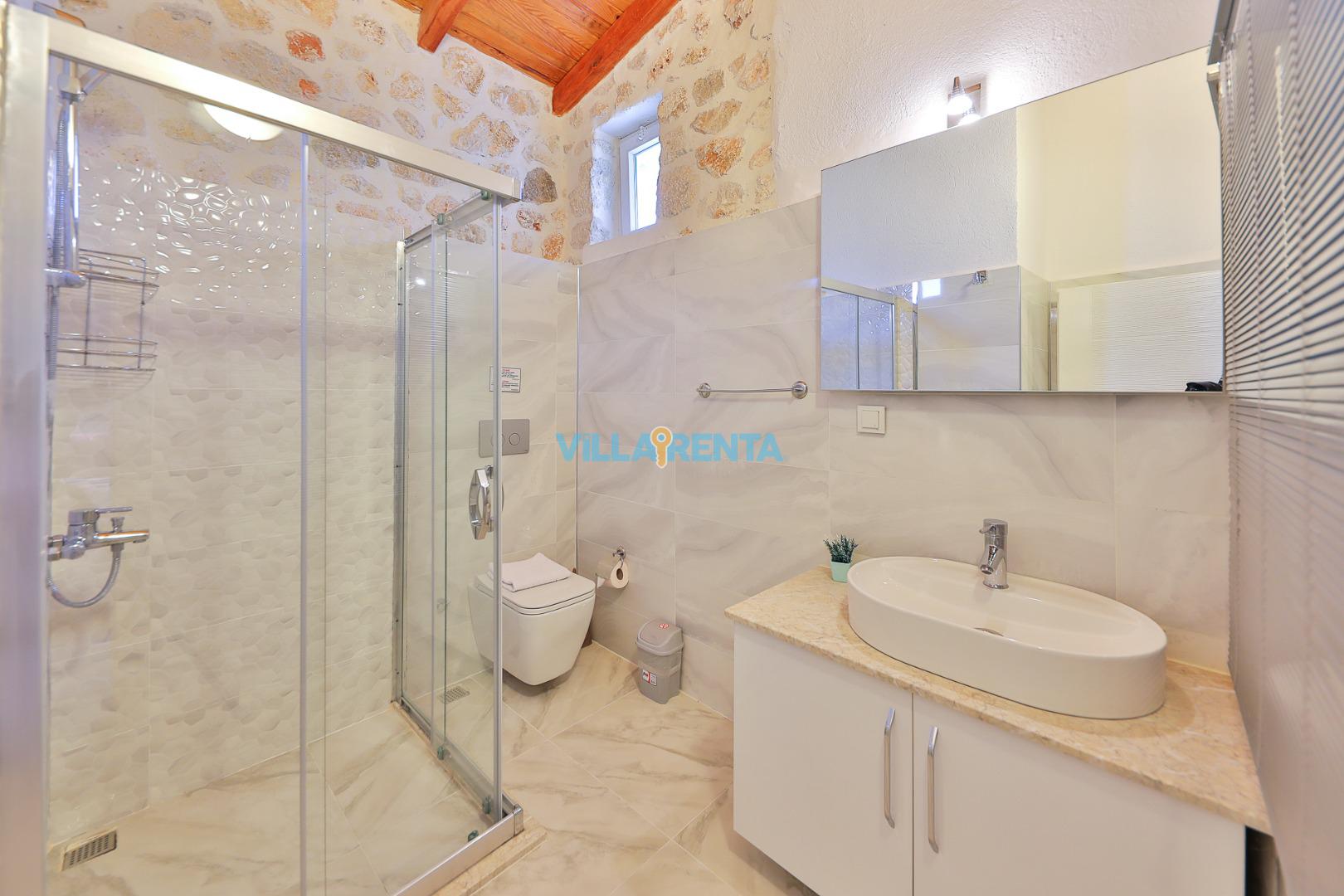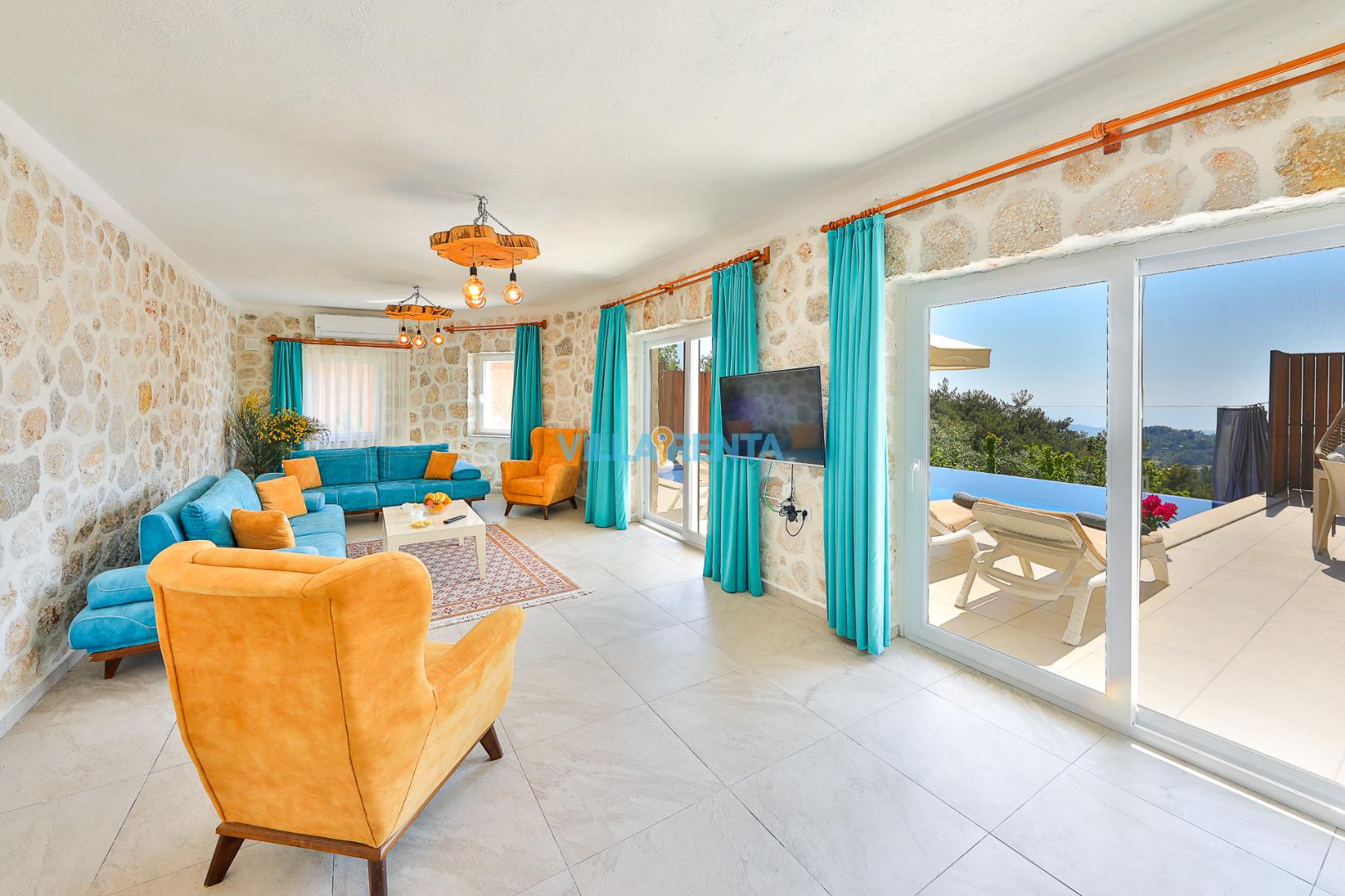 Doğal ve Sağlıklı Taş Mimari: Villamızın taş duvarları, yaz aylarında doğal bir serinlik sağlarken, konaklamanıza otantik ve sıcak bir atmosfer katar.