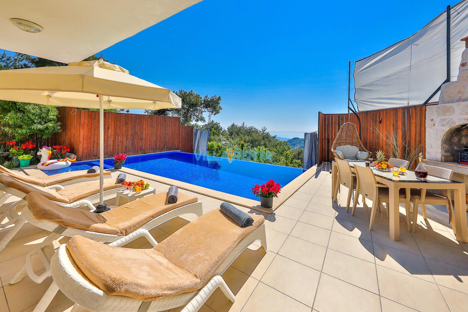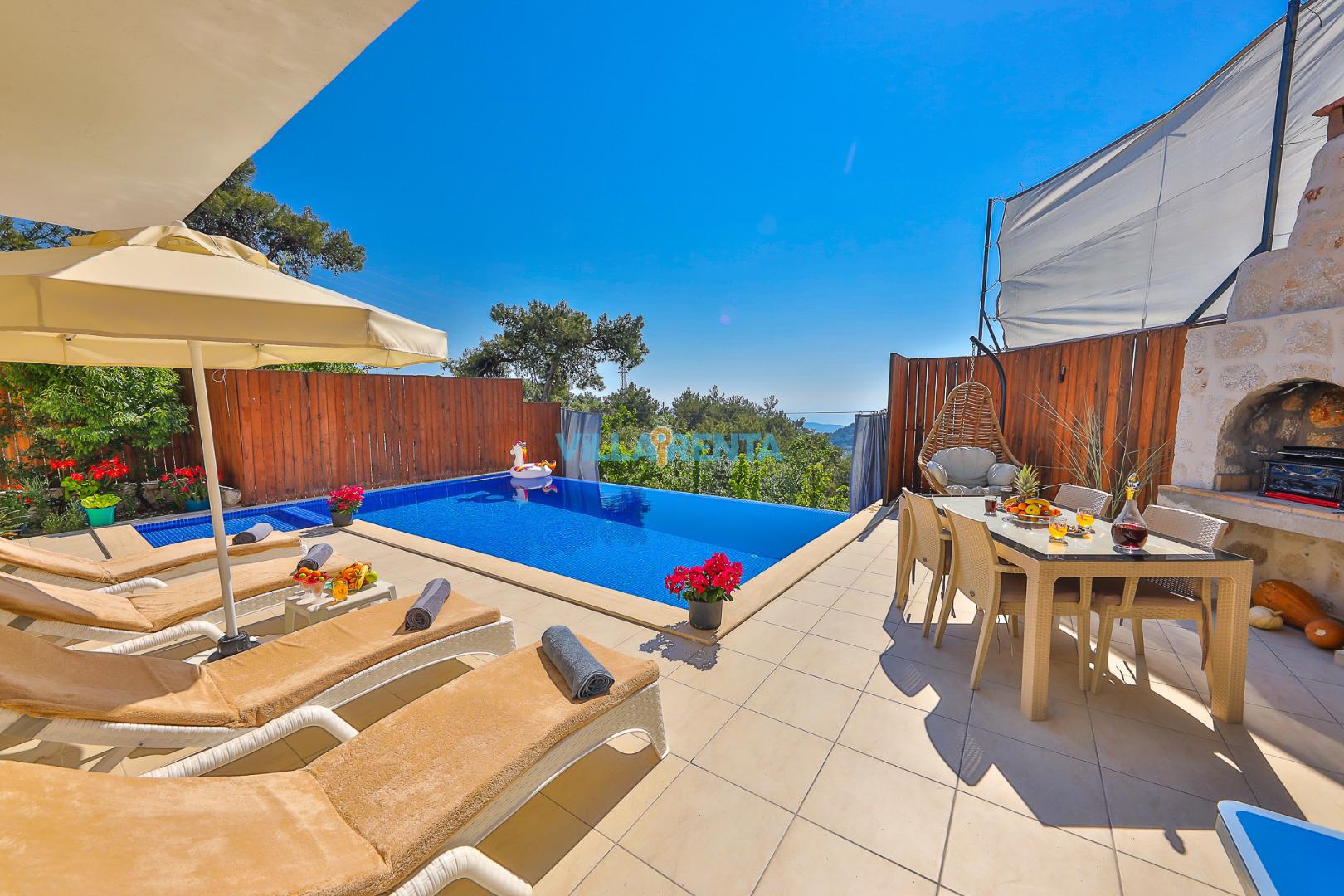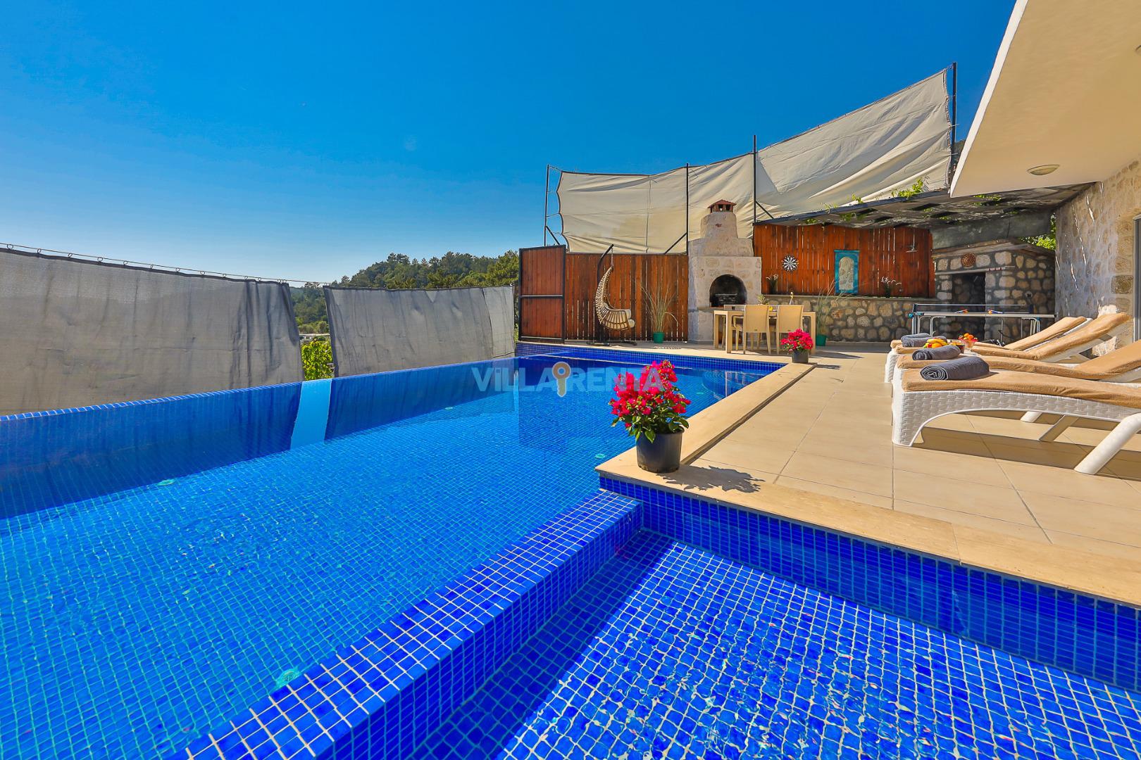 Mahremiyet (Muhafazakar): Havuzu, çevreden izole olacak şekilde özenle korunaklı hale getirilmiştir. Ailenizle birlikte, gözlerden uzak, özgür bir tatil deneyimi sunar.