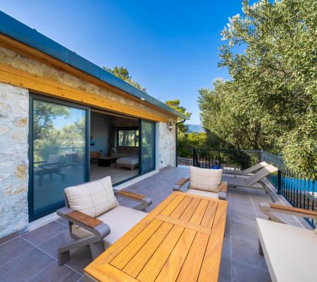Zeytin Ağaçları Arasında Bir Havuz: Size özel yüzme havuzunuzda serinlerken, zeytin ağaçlarının kokusu ve deniz manzarası size eşlik edecek.