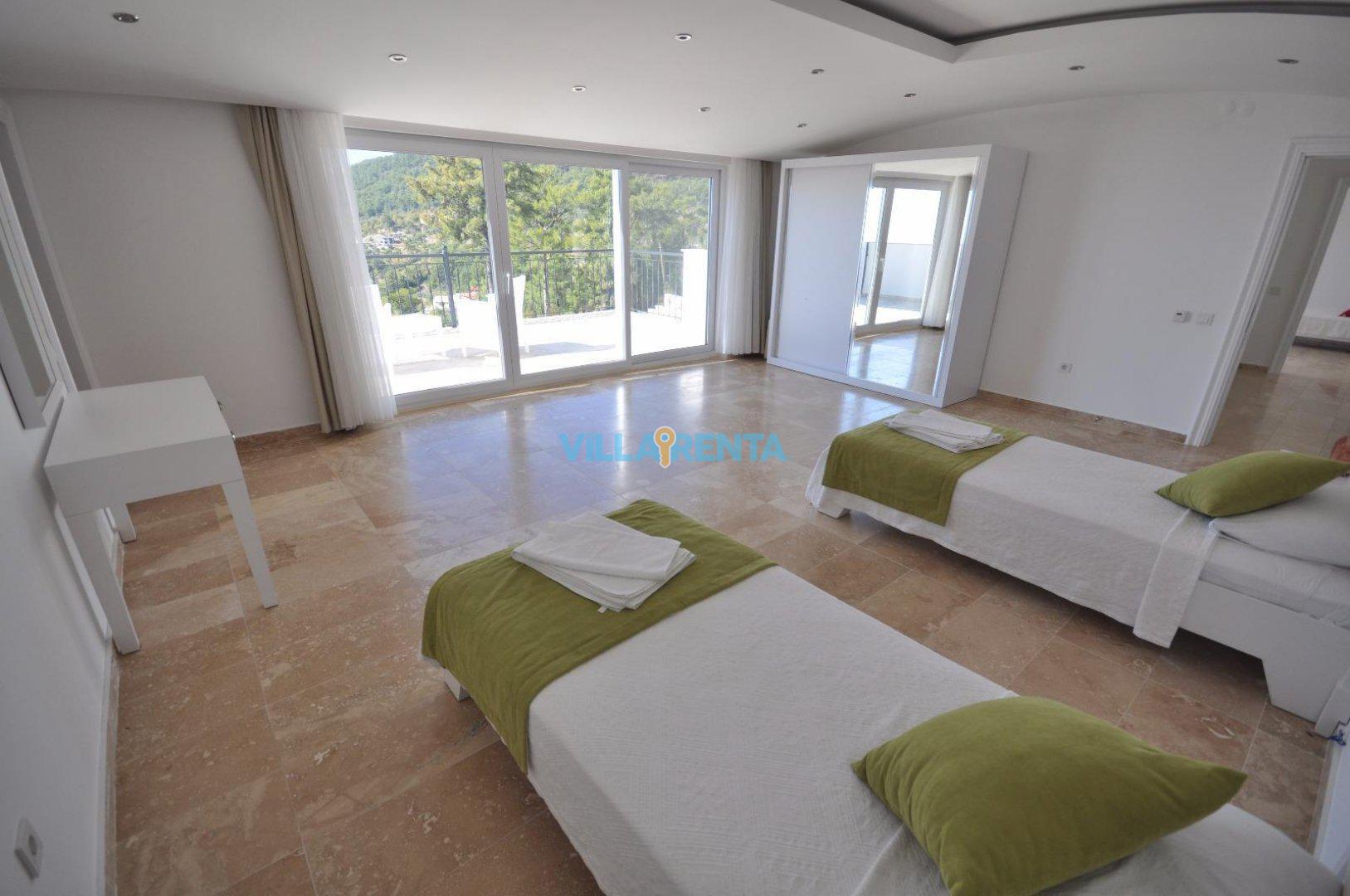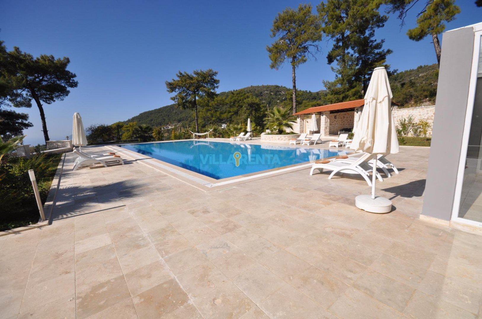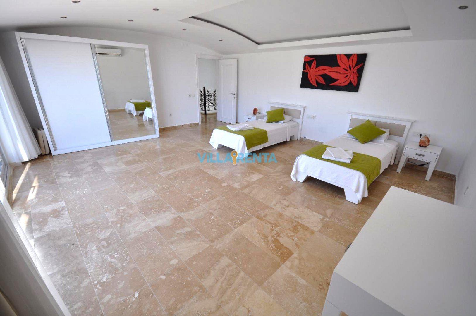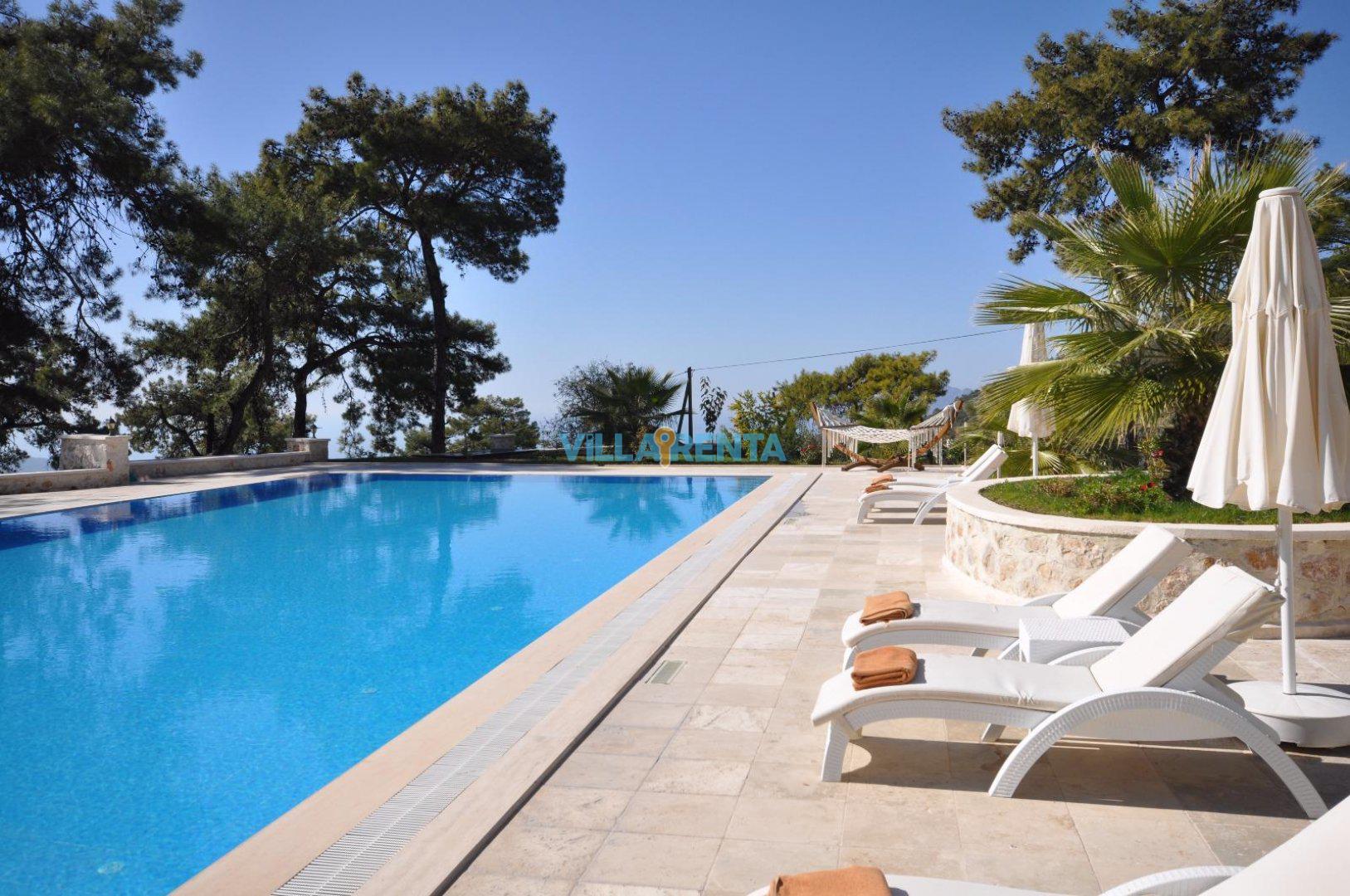 Kalkan’ın İslamlar Köyü’nde harika bir doğa içinde bulunan Villa Seren, geniş aileler ya da arkadaş grupları için oldukça ideal bir villadır. Villamızda 5 suit yatak odası bulunur. 2 adet çift kişilik ve 4 adet tek kişilik portatif yataklarla 18 kişiye kadar konaklamaya müsaittir. Kuş bakışı deniz ve adalar manzarasına sahiptir. Tüm odalarında ve salonunda klima mevcuttur. Oldukça geniş bir yüzme havuzuna sahip olan villamızın kapalı havuzu da mevcuttur. Çocuk havuzu da bulunan villamızda ayrıca çocuklar için çocuk oyun parkı ve masa tenisi de bulunmaktadır. Villamız gözlerden uzak tatil yapmak isteyen aileler için de uygundur.