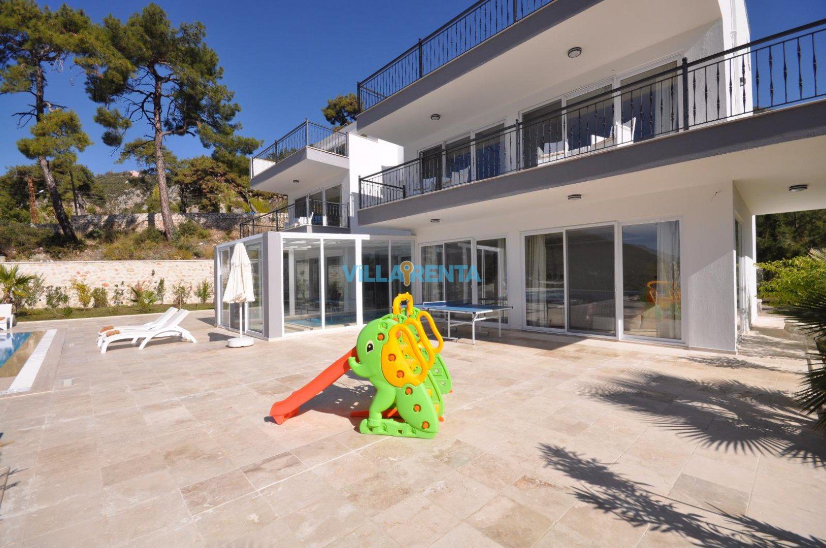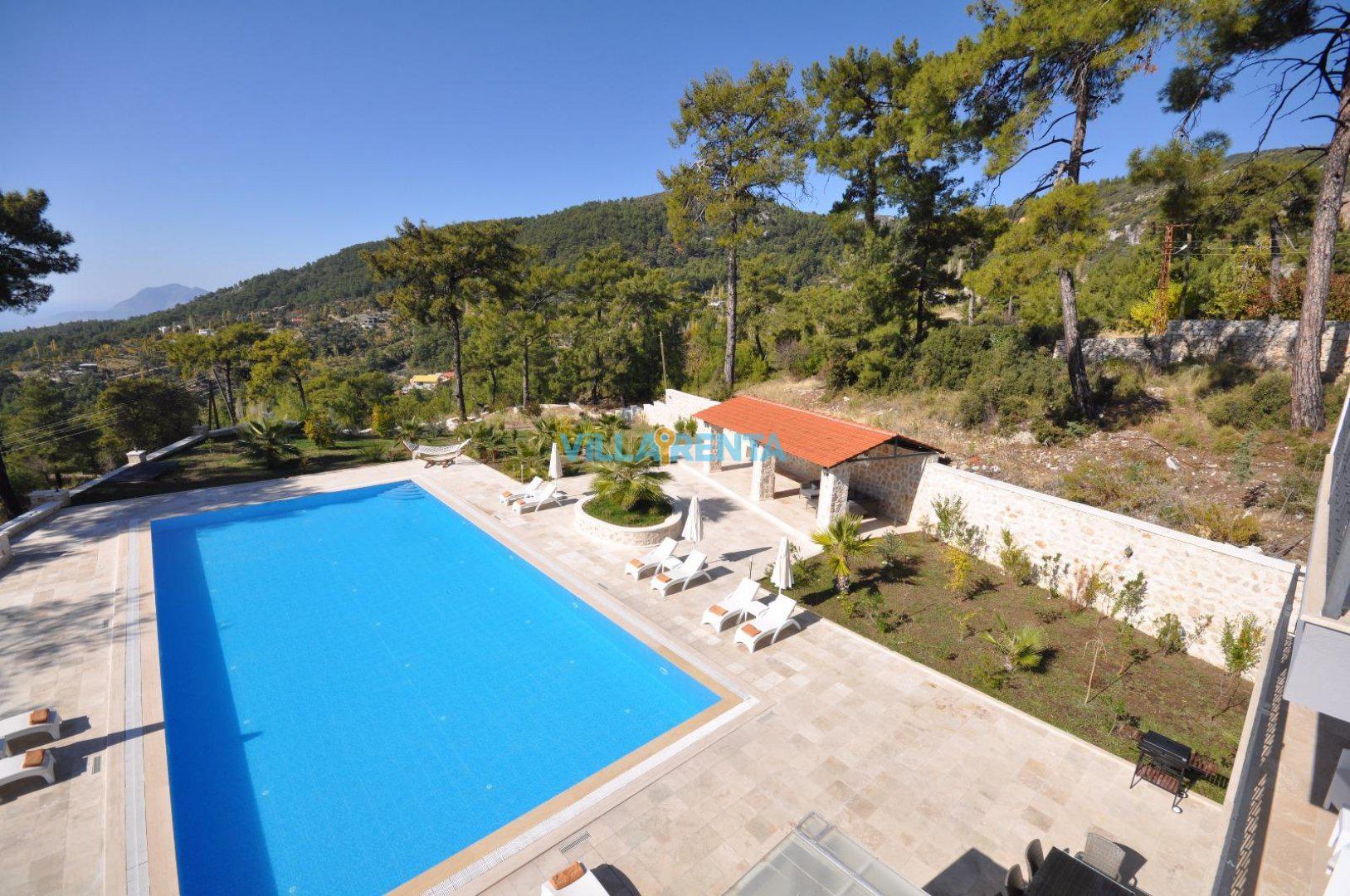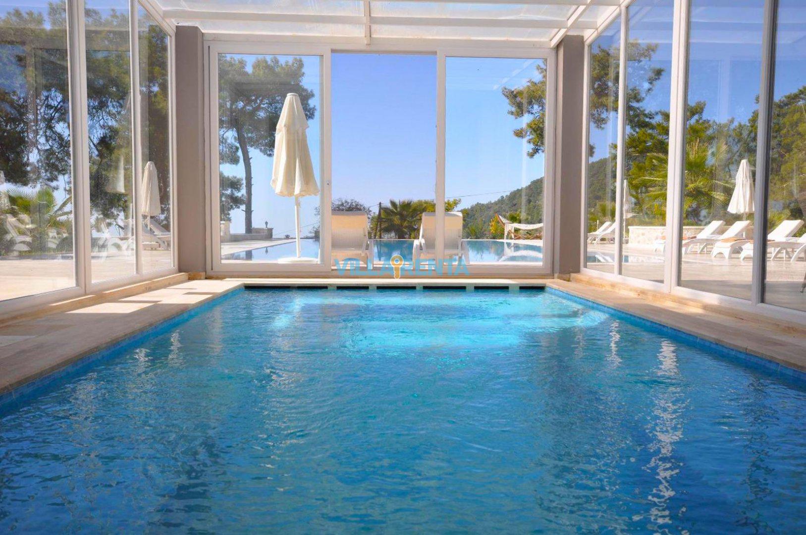 Kalkan’ın İslamlar Köyü’nde harika bir doğa içinde bulunan Villa Seren, geniş aileler ya da arkadaş grupları için oldukça ideal bir villadır. Villamızda 5 suit yatak odası bulunur. 2 adet çift kişilik ve 4 adet tek kişilik portatif yataklarla 18 kişiye kadar konaklamaya müsaittir. Kuş bakışı deniz ve adalar manzarasına sahiptir. Tüm odalarında ve salonunda klima mevcuttur. Oldukça geniş bir yüzme havuzuna sahip olan villamızın kapalı havuzu da mevcuttur. Çocuk havuzu da bulunan villamızda ayrıca çocuklar için çocuk oyun parkı ve masa tenisi de bulunmaktadır. Villamız gözlerden uzak tatil yapmak isteyen aileler için de uygundur.