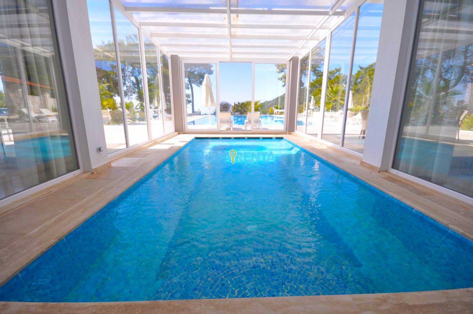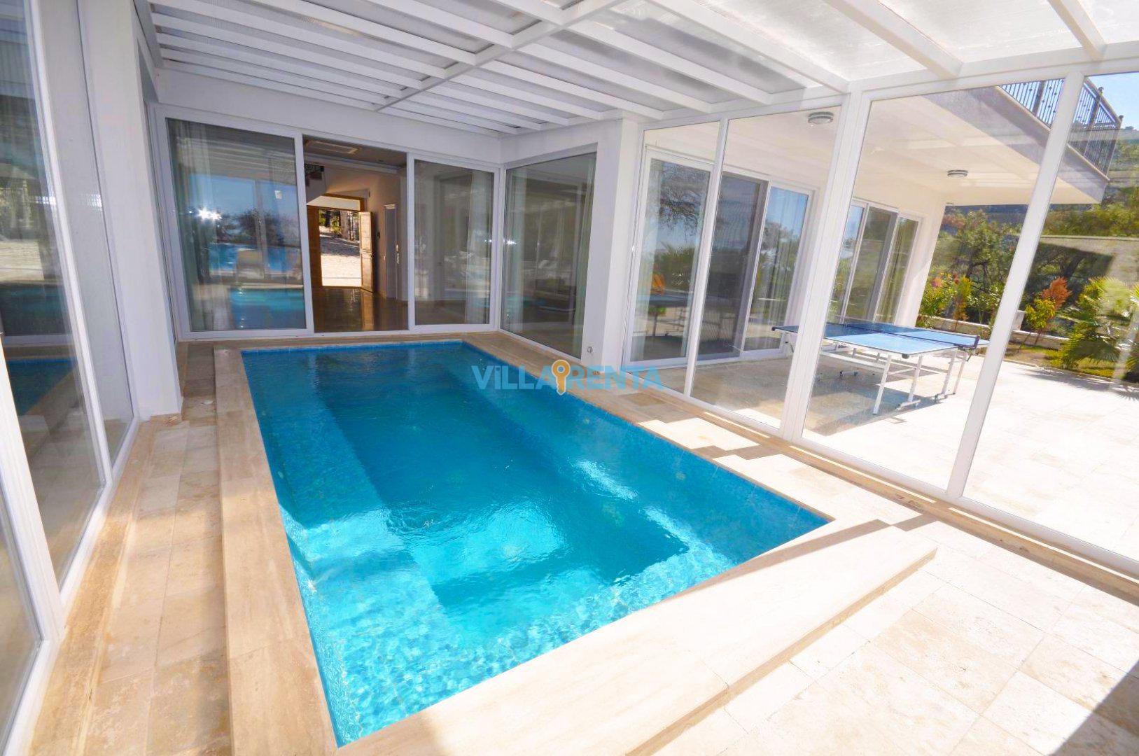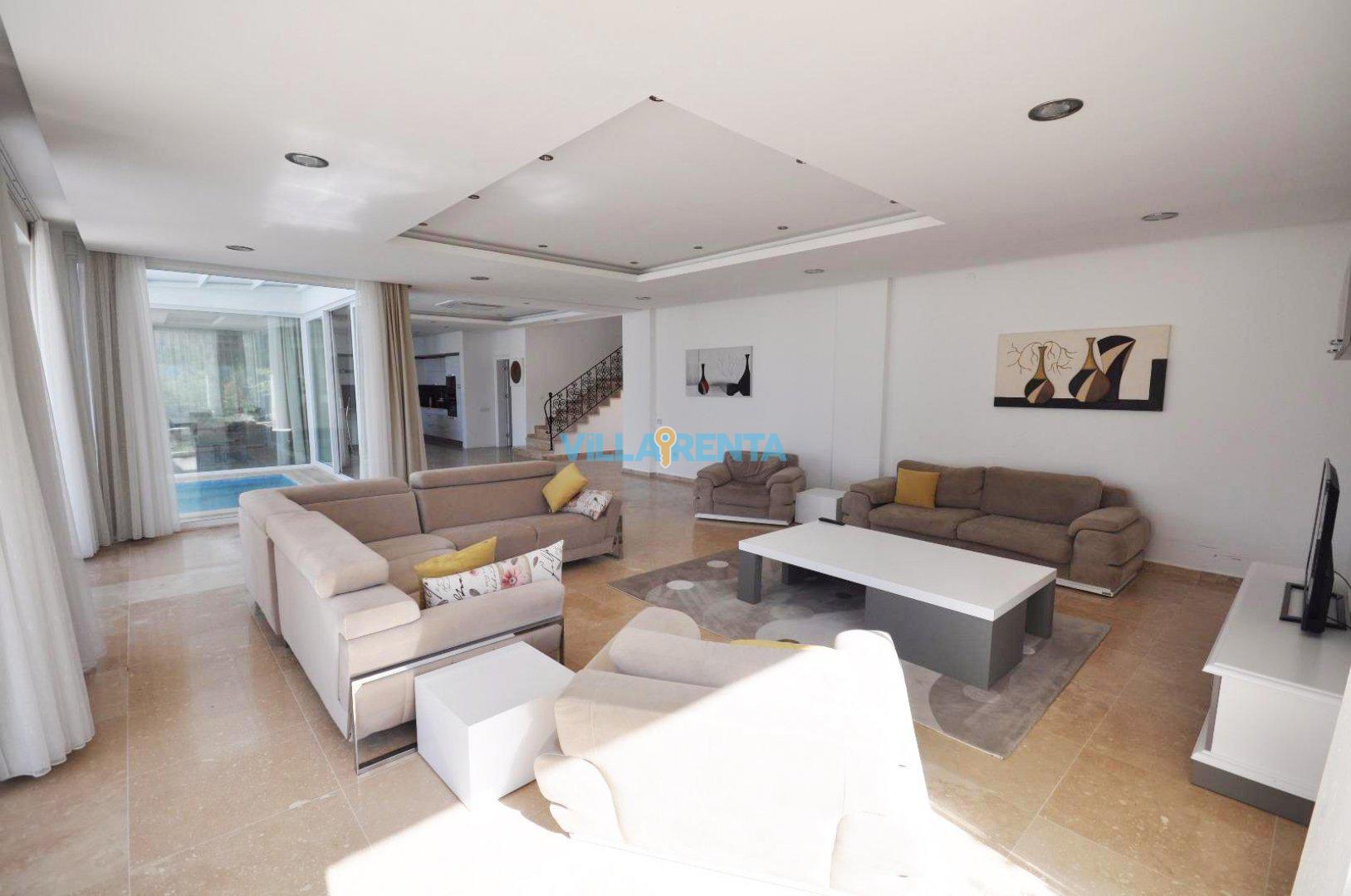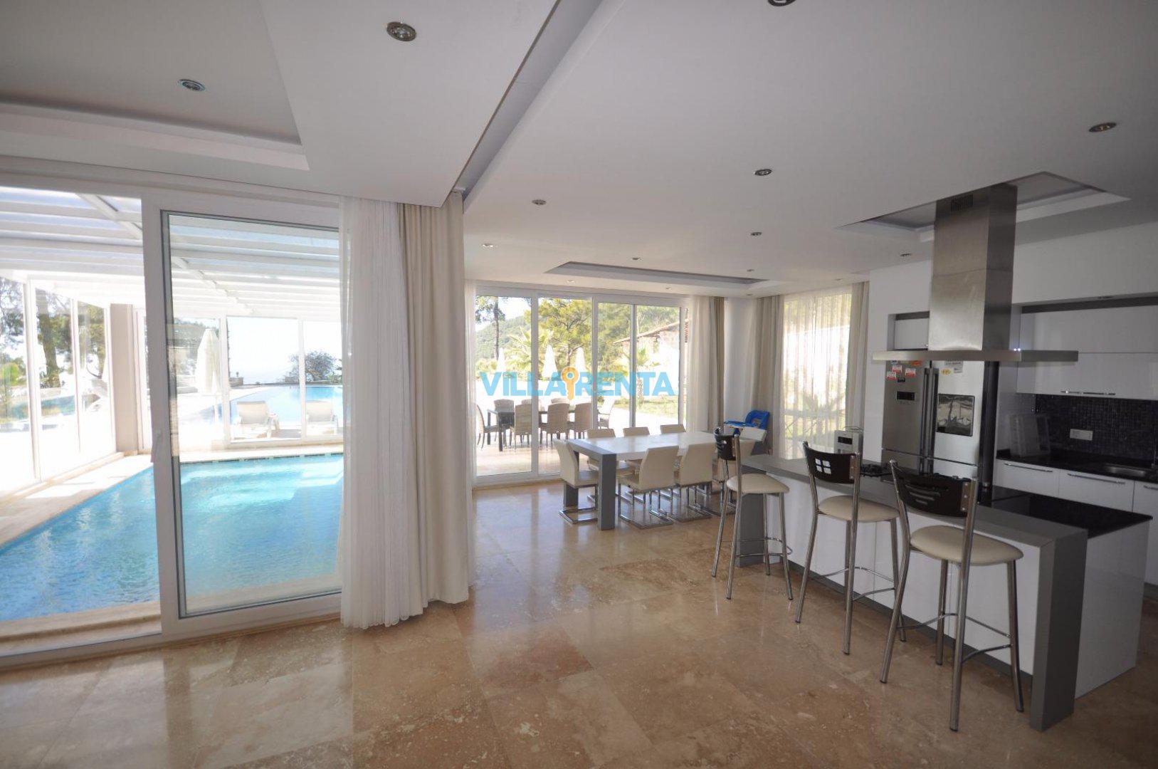 Kalkan’ın İslamlar Köyü’nde harika bir doğa içinde bulunan Villa Seren, geniş aileler ya da arkadaş grupları için oldukça ideal bir villadır. Villamızda 5 suit yatak odası bulunur. 2 adet çift kişilik ve 4 adet tek kişilik portatif yataklarla 18 kişiye kadar konaklamaya müsaittir. Kuş bakışı deniz ve adalar manzarasına sahiptir. Tüm odalarında ve salonunda klima mevcuttur. Oldukça geniş bir yüzme havuzuna sahip olan villamızın kapalı havuzu da mevcuttur. Çocuk havuzu da bulunan villamızda ayrıca çocuklar için çocuk oyun parkı ve masa tenisi de bulunmaktadır. Villamız gözlerden uzak tatil yapmak isteyen aileler için de uygundur.