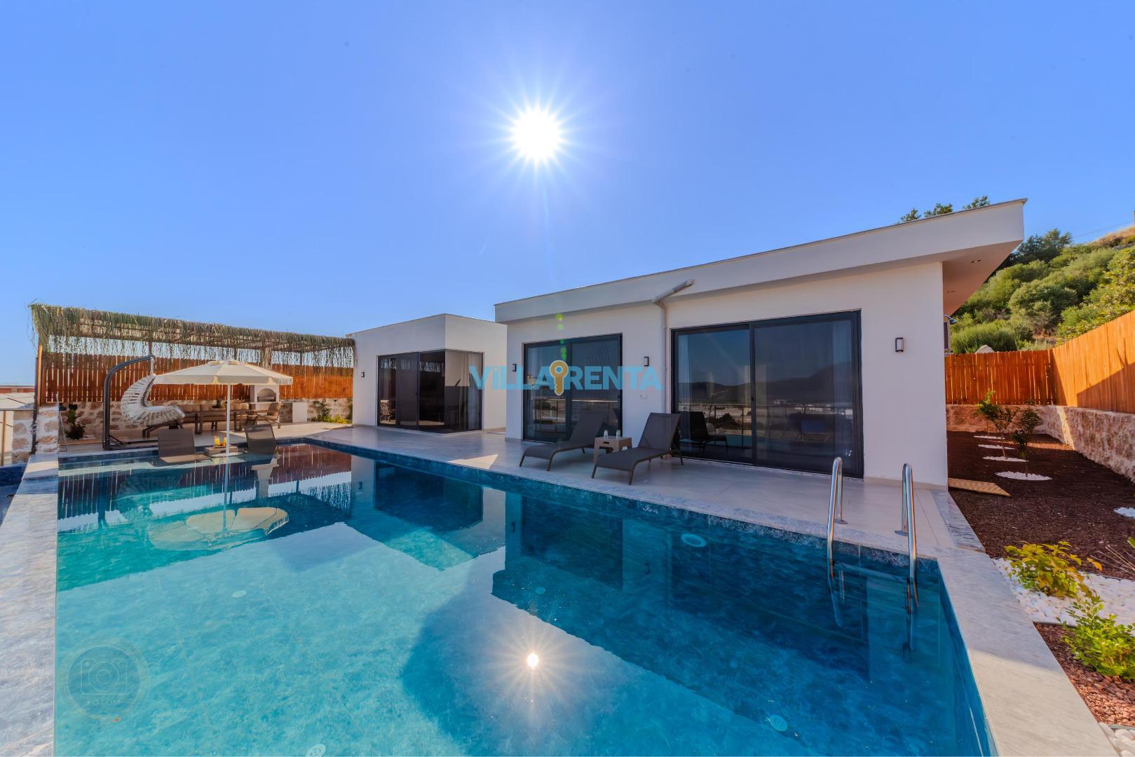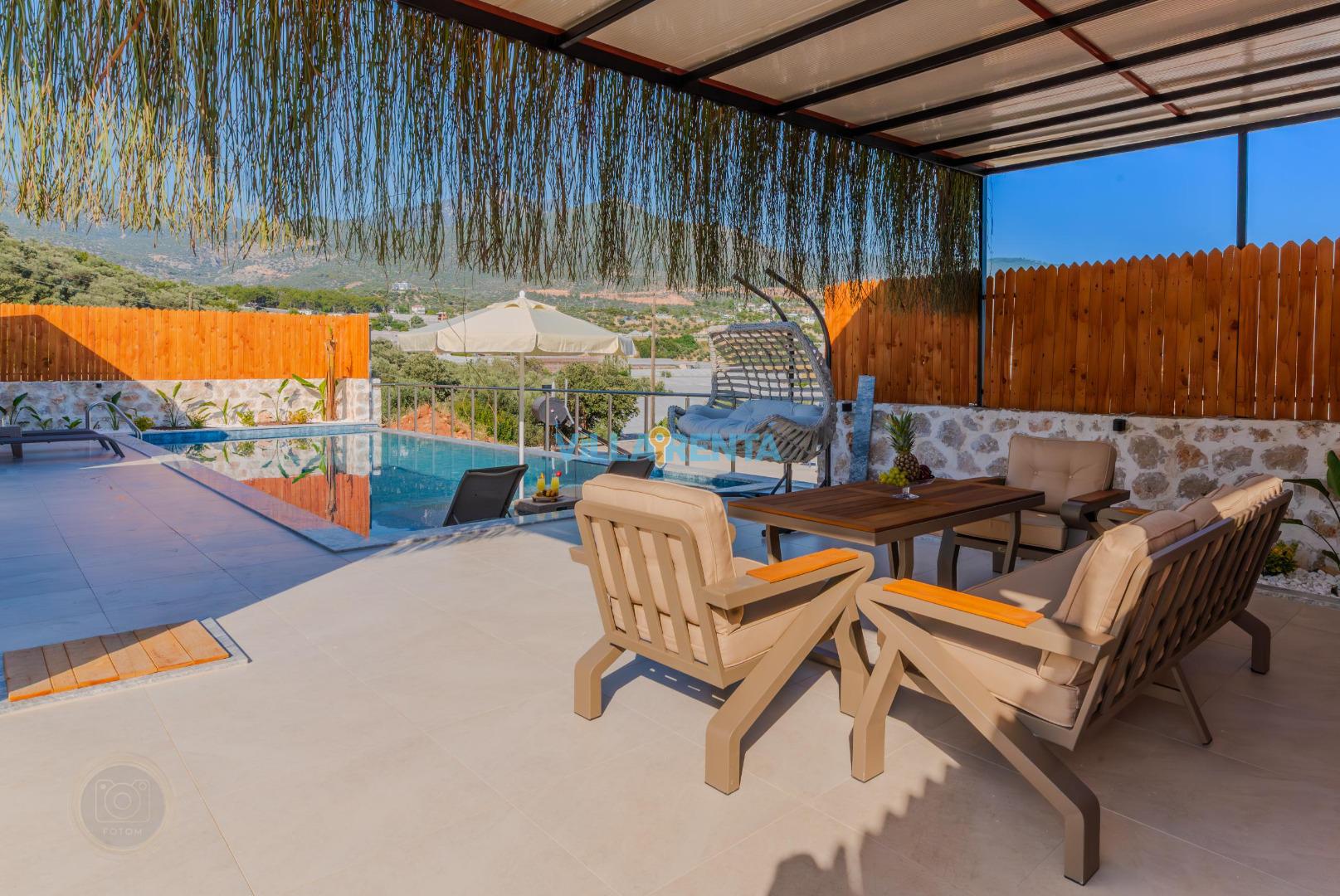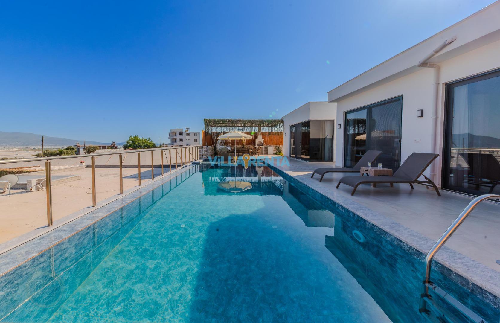 Geniş ve Ferah Havuz Terası: Klasik villalardan çok daha geniş bir teras alanına sahip olan villamızda, açık havada vakit geçirmenin keyfine varacaksınız.
