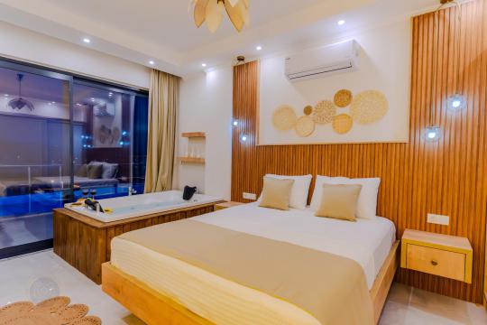 Jakuzili Konfor: Günün yorgunluğunu yatak odanızdaki lüks jakuzi ile atabilir, kendinizi şımartabilirsiniz.