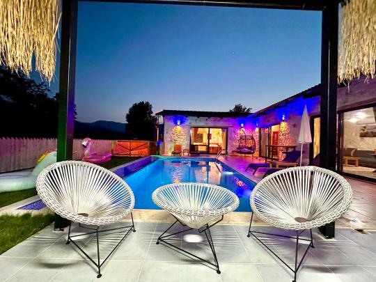 Villa Tomrul, Kaş Uğrar mevkiinde yer alan 2 yatak odalı 4 kişilik konaklama kapasitesine sahip kiralık tatil villasıdır. Taş ve ahşap mimarinin karışık olduğu villamız çekirdek ailelerimiz ve çiftlerimiz için uygundur. Doğa manzaralı, sakin ve şehir gürültüsünden uzak olan villamızın havuzu korunaklı olup dış gözlerden uzakta bir tatil imkanı da sunmaktadır.