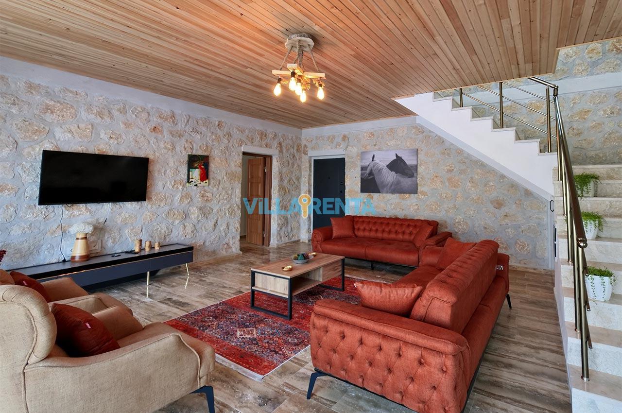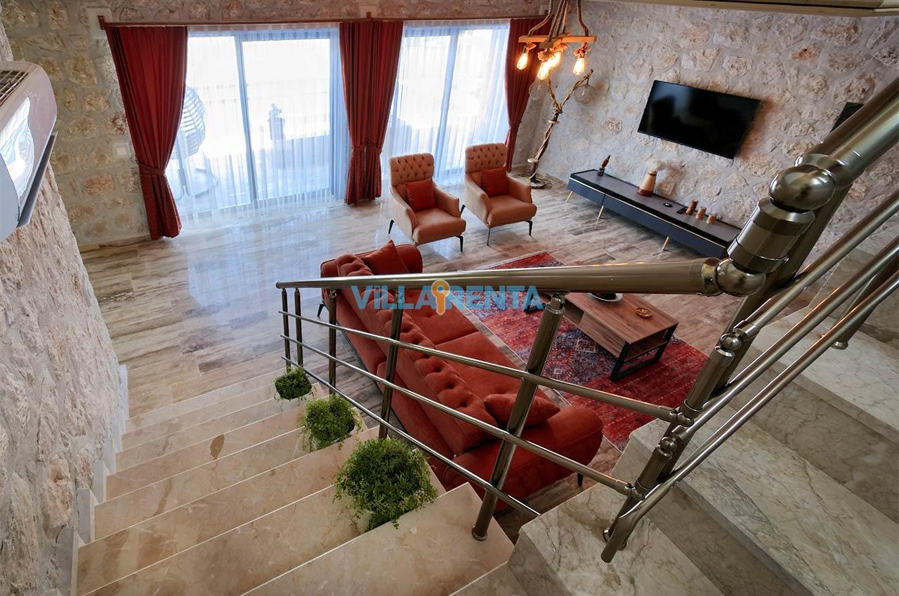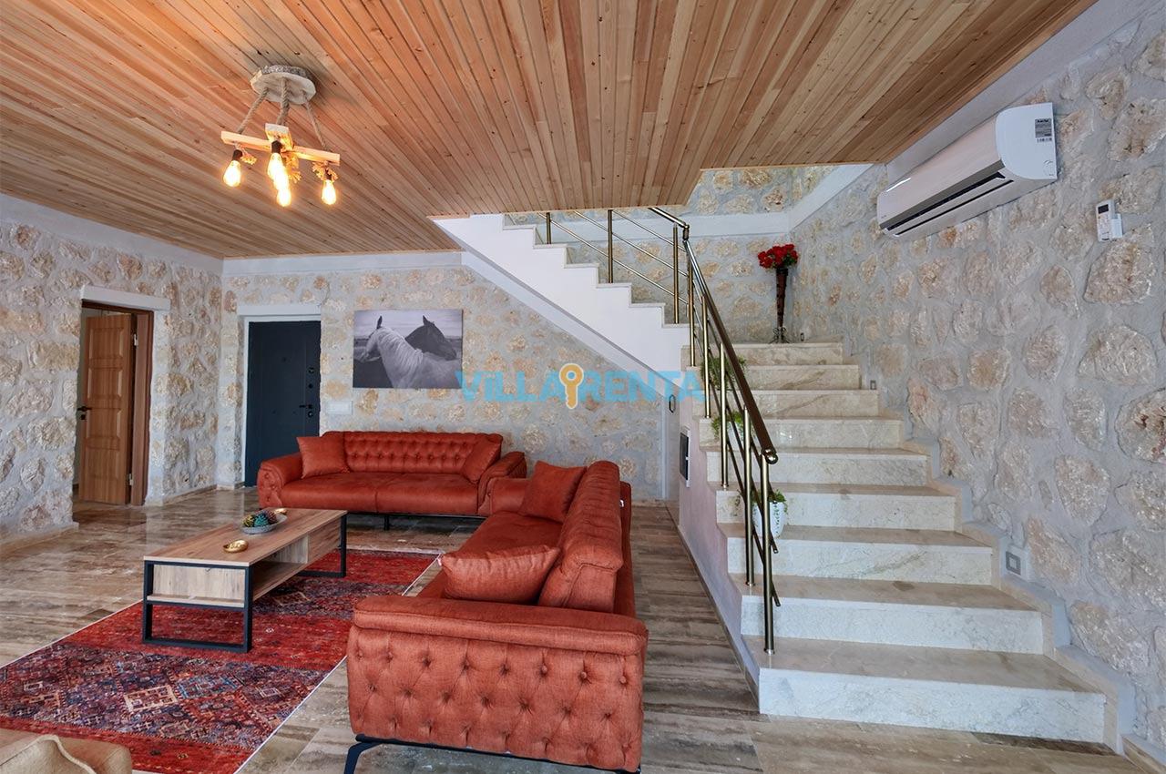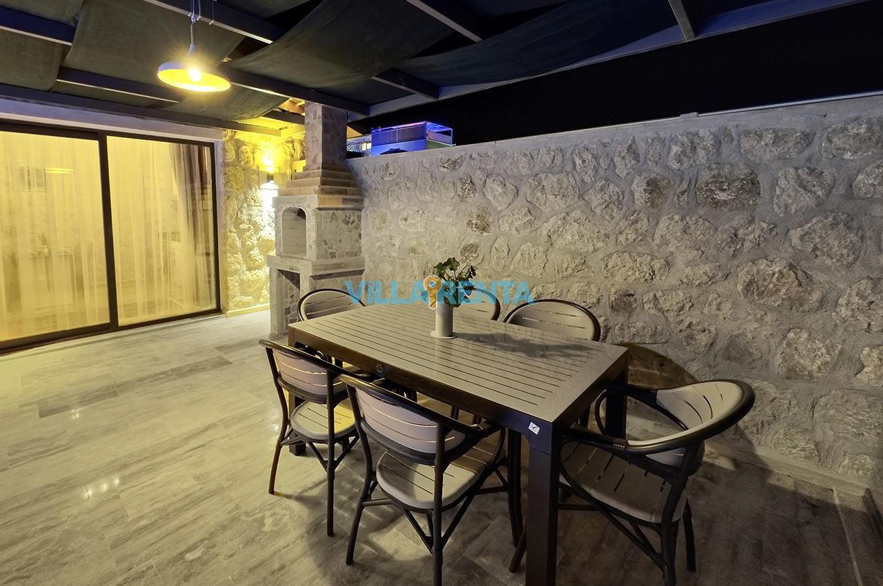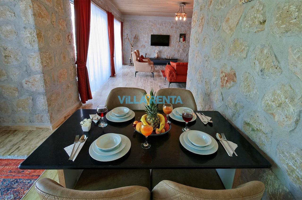 Villa Zeyno Serenity, Kalkan Akbel bölgesinde bulunan merkeze yakın kiralık tatil villamızdır. Villamız taş mimariye sahip olup keyifli bir tatil imkanı sunmaktadır. Ana yatak odasında jakuzisi bulunan villamız merkeze 5-6 dakika mesafededir. Villamızın havuz terası korunaklı olup dışardan görünmemektedir.