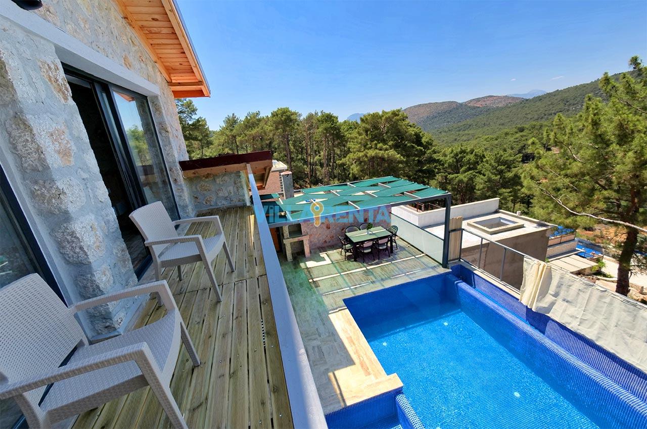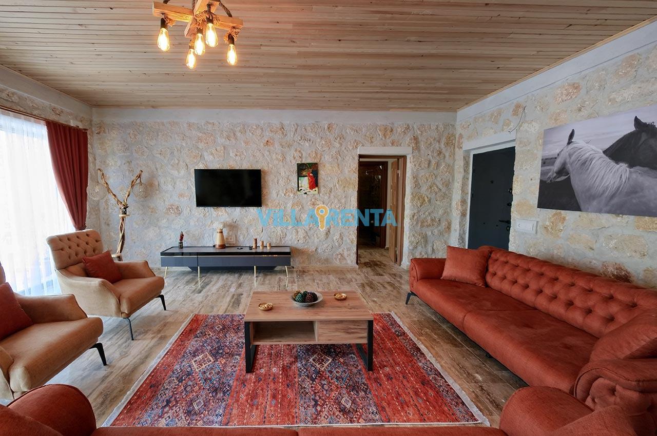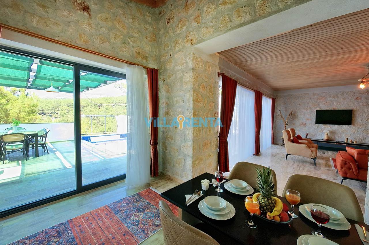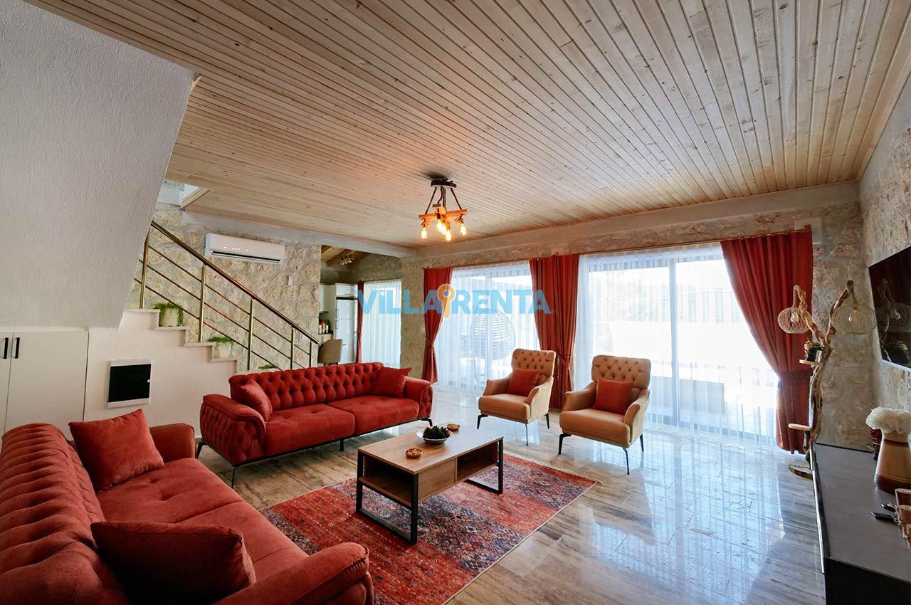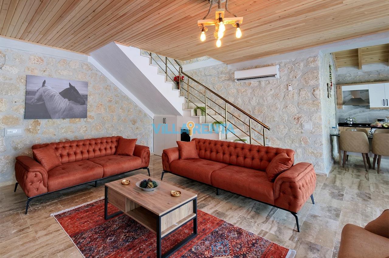 Villa Zeyno Serenity, Kalkan Akbel bölgesinde bulunan merkeze yakın kiralık tatil villamızdır. Villamız taş mimariye sahip olup keyifli bir tatil imkanı sunmaktadır. Ana yatak odasında jakuzisi bulunan villamız merkeze 5-6 dakika mesafededir. Villamızın havuz terası korunaklı olup dışardan görünmemektedir.