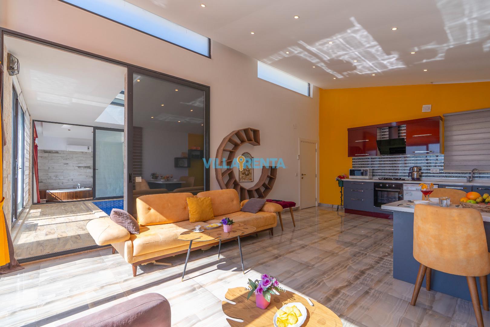 Üzümlü Köyü’nün panoramik doğa ve uzaktan deniz manzarasına hakim bir noktada konumlanan Villa Zümrüt Üzümlü, modern tatil anlayışını eğlenceli detaylarla birleştiriyor. 4 kişilik kapasitesiyle hem arkadaş grupları hem de çekirdek aileler için unutulmaz bir deneyim vadediyor.