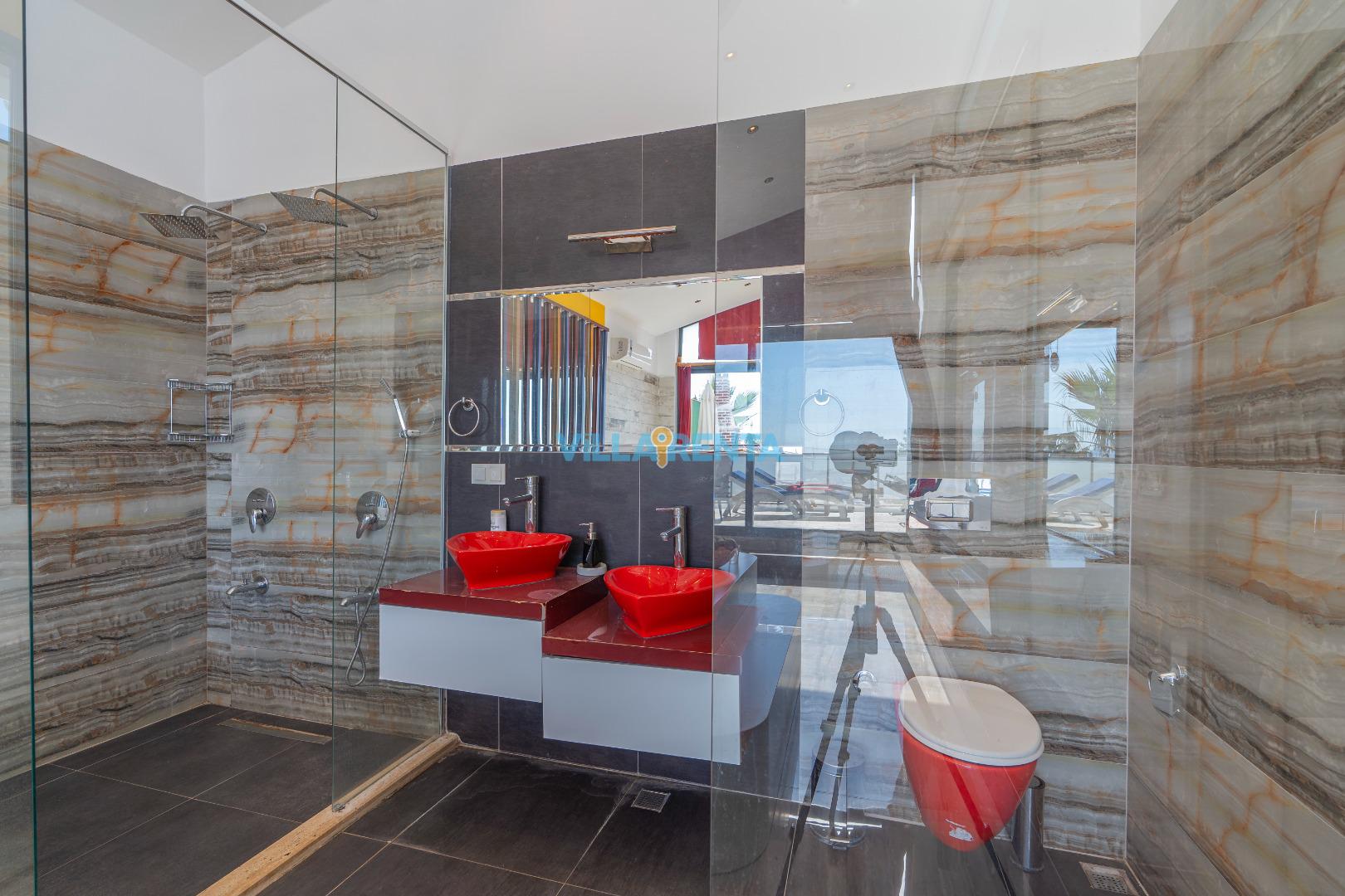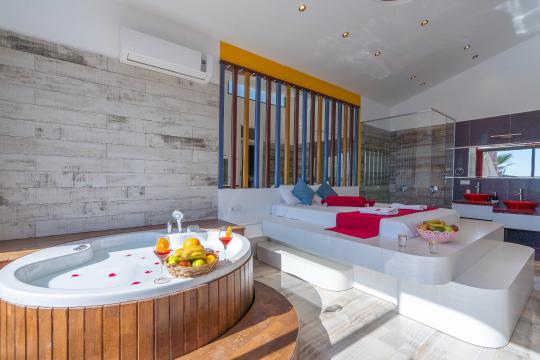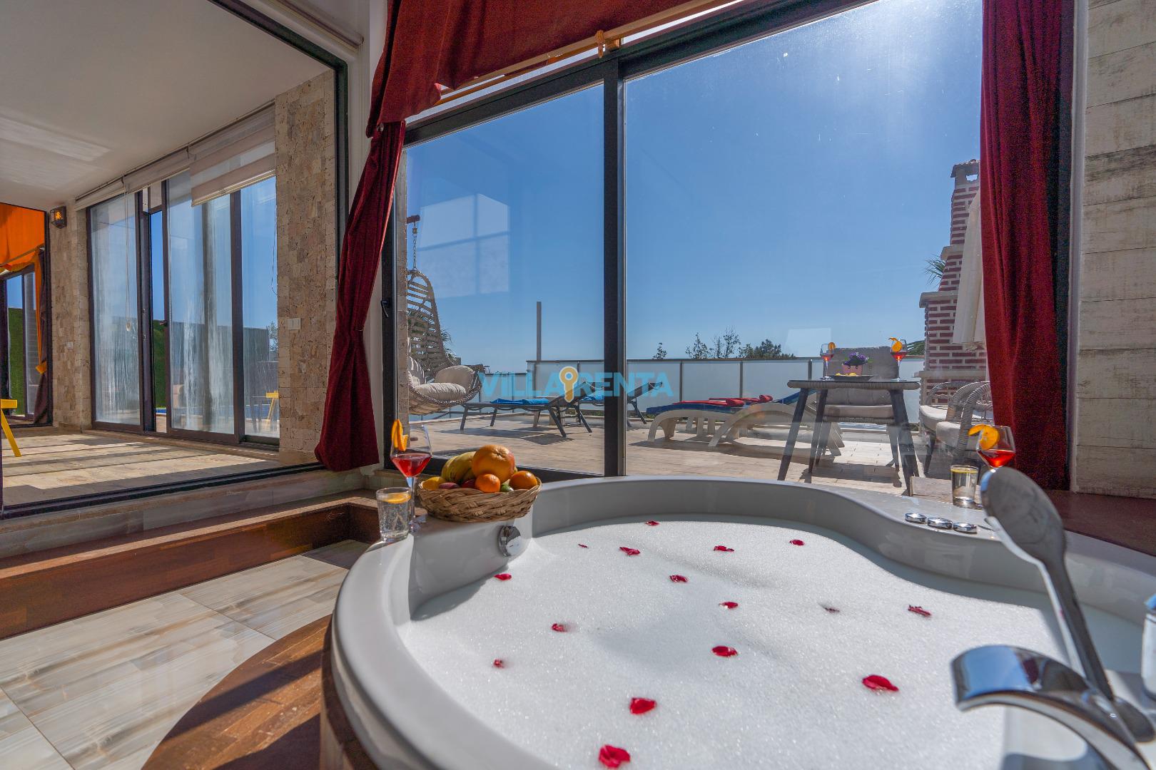 Modern Spa Detayları: Ana yatak odasındaki lüks jakuzi ile kendinizi şımartın ve tüm yılın yorgunluğunu atın.