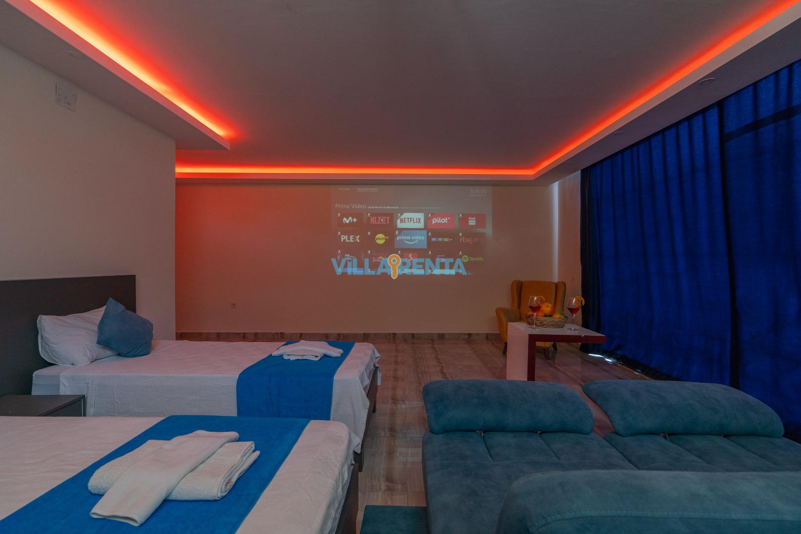 Aktivite Dolu Tatil: Villa içindeki Air Hockey masası ile rekabetin tadını çıkarın, yatak odasındaki projeksiyon perdesi ile film keyfini dev ekrana taşıyın.