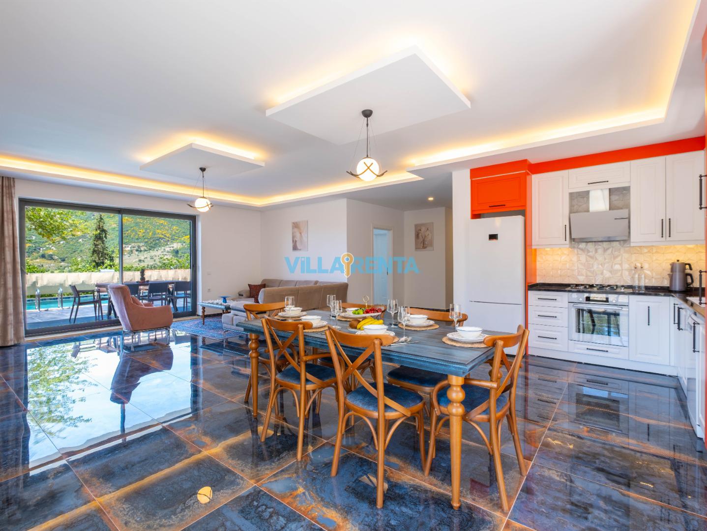 Villa Andifli is located in Kalkan, Kalkan / Hacıoğlan area. It is only 25 minutes drive away to the town center. It has an accommodation capacity for 6 people. Ideal for couples and nuclear families. It has a nature view. It has a very beautiful and comfortable decoration. This villa is secluded. The pool and terrace areas are not visible from the outside. It is ideal for those who want to have a holiday away from foreign eyes. The private pool, fully equipped kitchen and all the other details that complement your holiday pleasure in our villa offer everything you need for an isolated holiday away from the crowds, providing a pleasant and safe holiday opportunity.