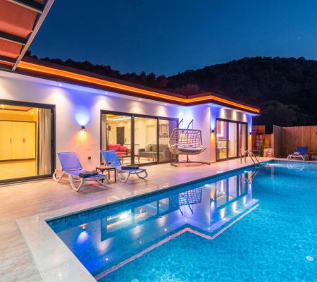 Located in the tranquil Yeşilköy area of Kalkan, Villa Ayes offers a unique holiday experience for families and small groups. Accommodating up to 5 guests, this villa perfectly blends outdoor fun with indoor luxury.