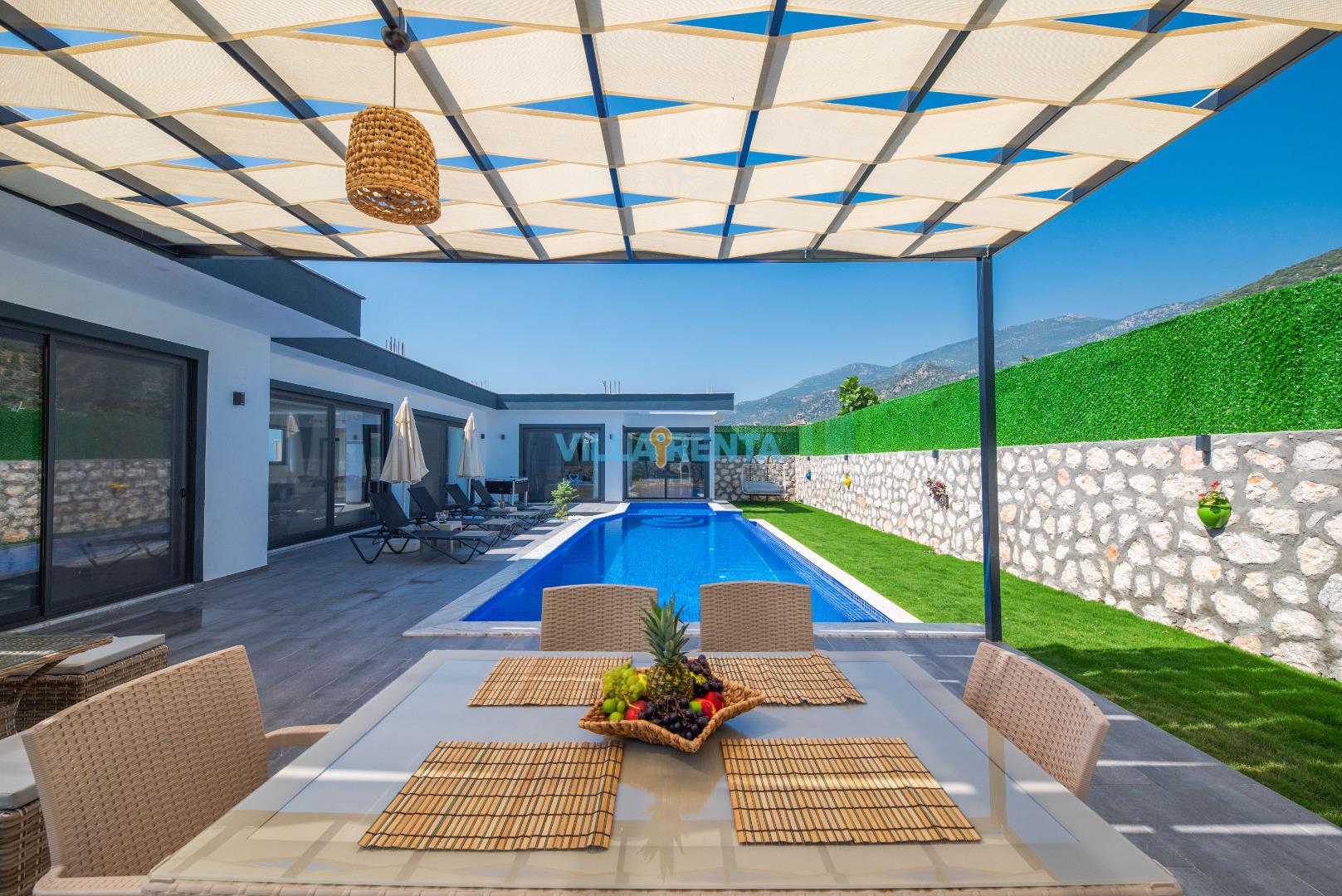Villa Barbarossa is located in Kalkan, Kalkan / Çavdır area. It is only 25 minutes drive away to the town center. It has an accommodation capacity for 4 people. Ideal for couples and nuclear families. It has a nature view. It has a very beautiful and comfortable decoration. This villa is secluded. The pool and terrace areas are not visible from the outside. It is ideal for those who want to have a holiday away from foreign eyes. The private pool, fully equipped kitchen and all the other details that complement your holiday pleasure in our villa offer everything you need for an isolated holiday away from the crowds, providing a pleasant and safe holiday opportunity.