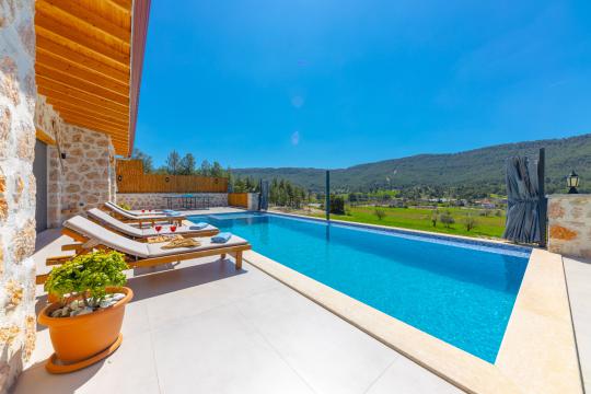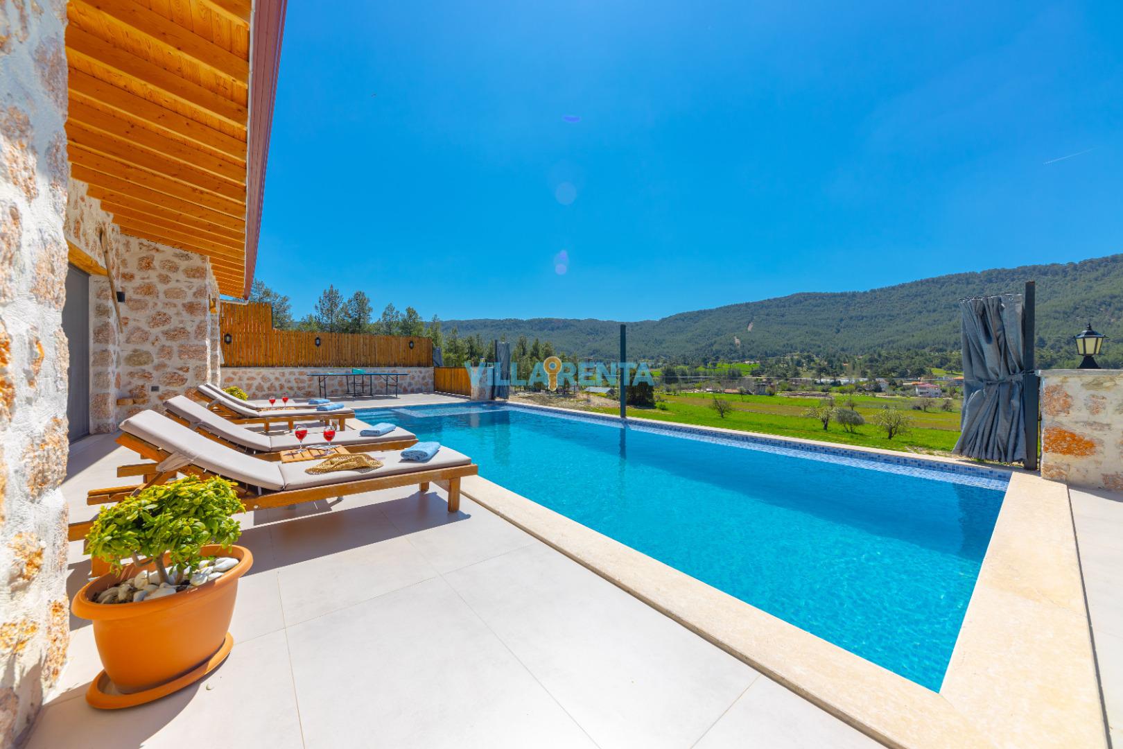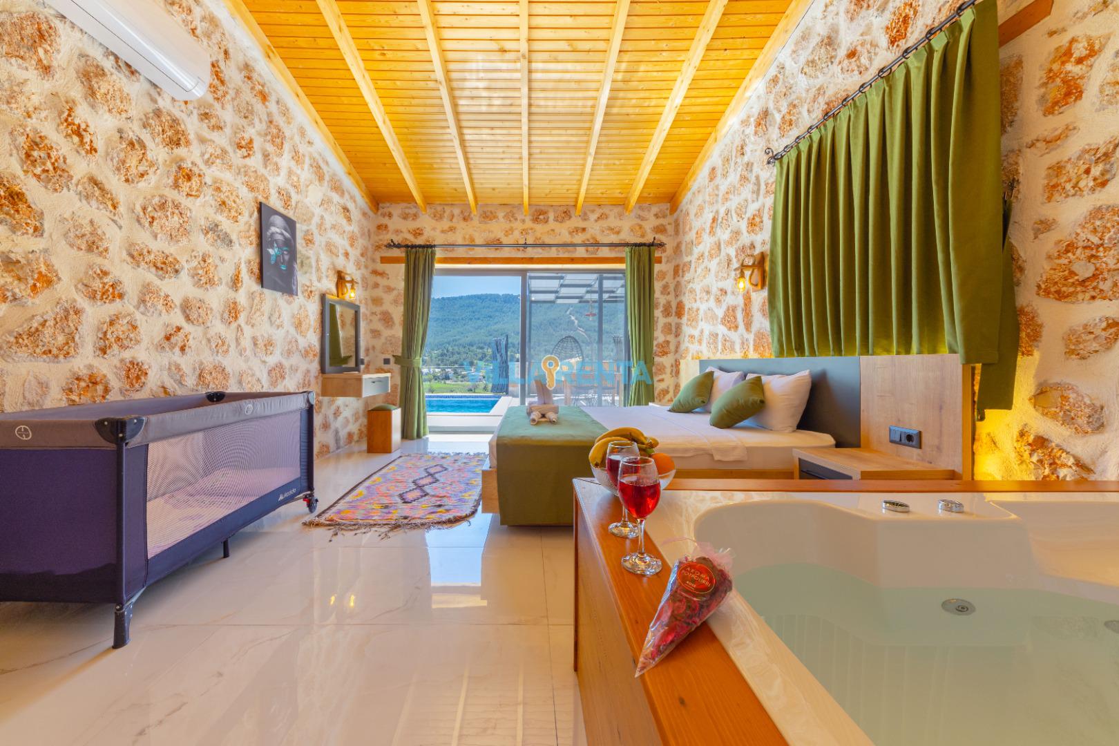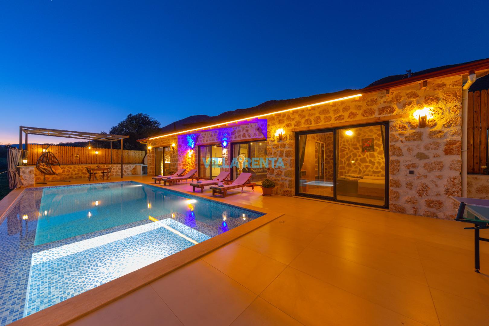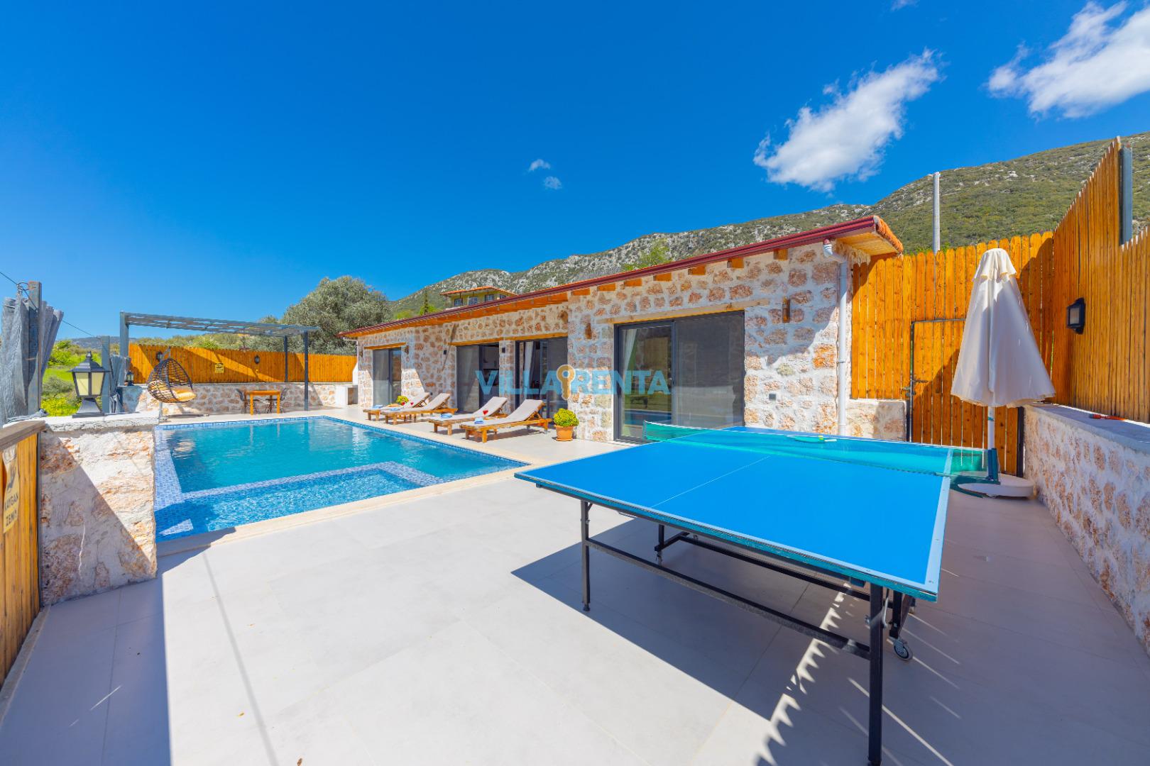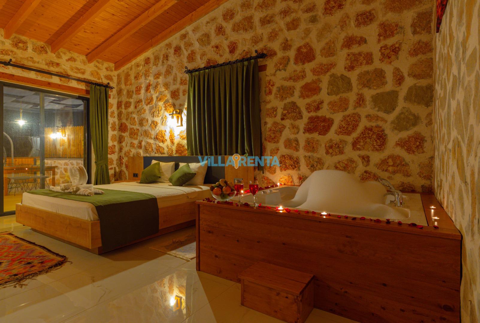 Villa Berceste, Kalkan Sarıbelen Mevkii'nde bulunan kiralık balayı villası, sessizliğin, huzurun hakim olduğu bir villada tatil isteyen çiftlerimiz için oldukça uygun bir seçenektir. Korunaklı villalar ve balayı villaları kategorisinde yer alan villamız, 2 yatak odası ile 4 kişilik konaklama kapasitesine sahiptir. Havuzu korunaklı ve bahçesi dışarıdan görünmeyen Villa Berceste, mahremiyete önem veren çiftlerimiz için huzur dolu bir tatil fırsatı sunuyor. Ayrıca çift kişilik yatak odasında misafirlerimizin rahatlaması için 2 kişilik jakuzi konforu da sağlamaktadır.