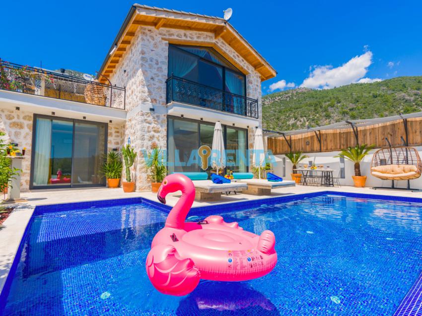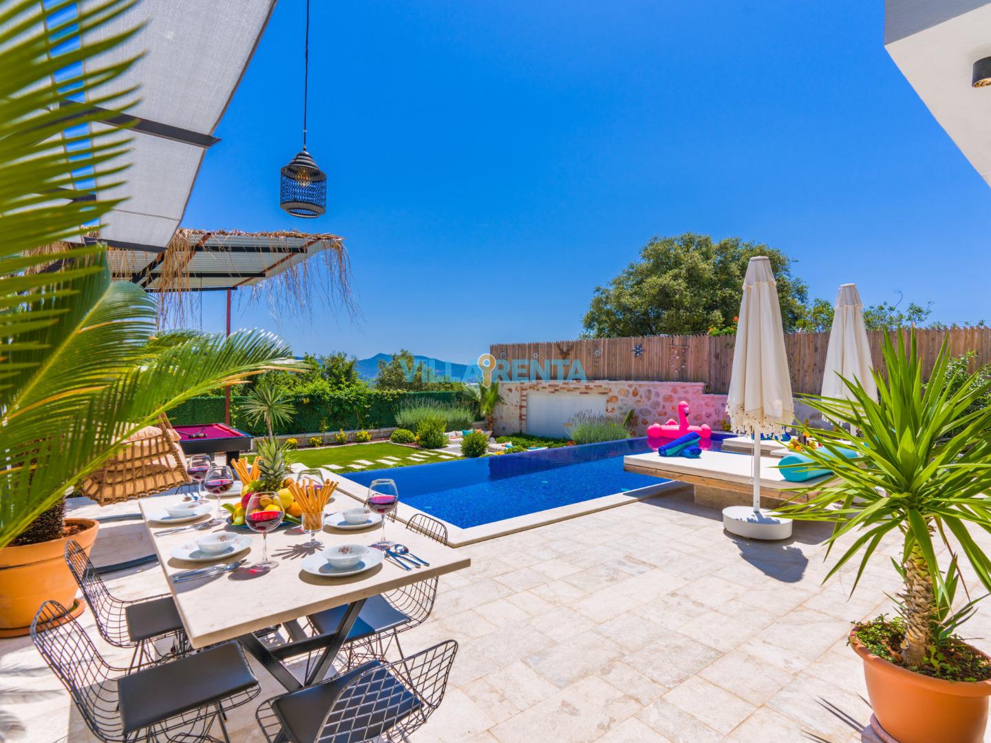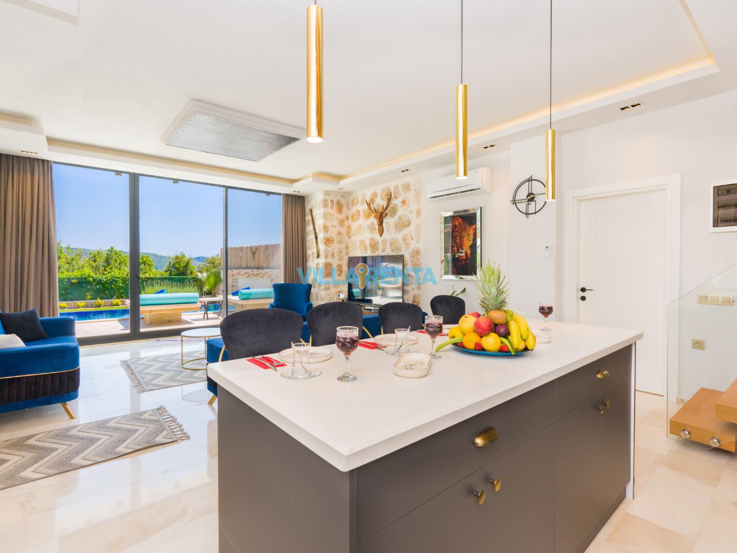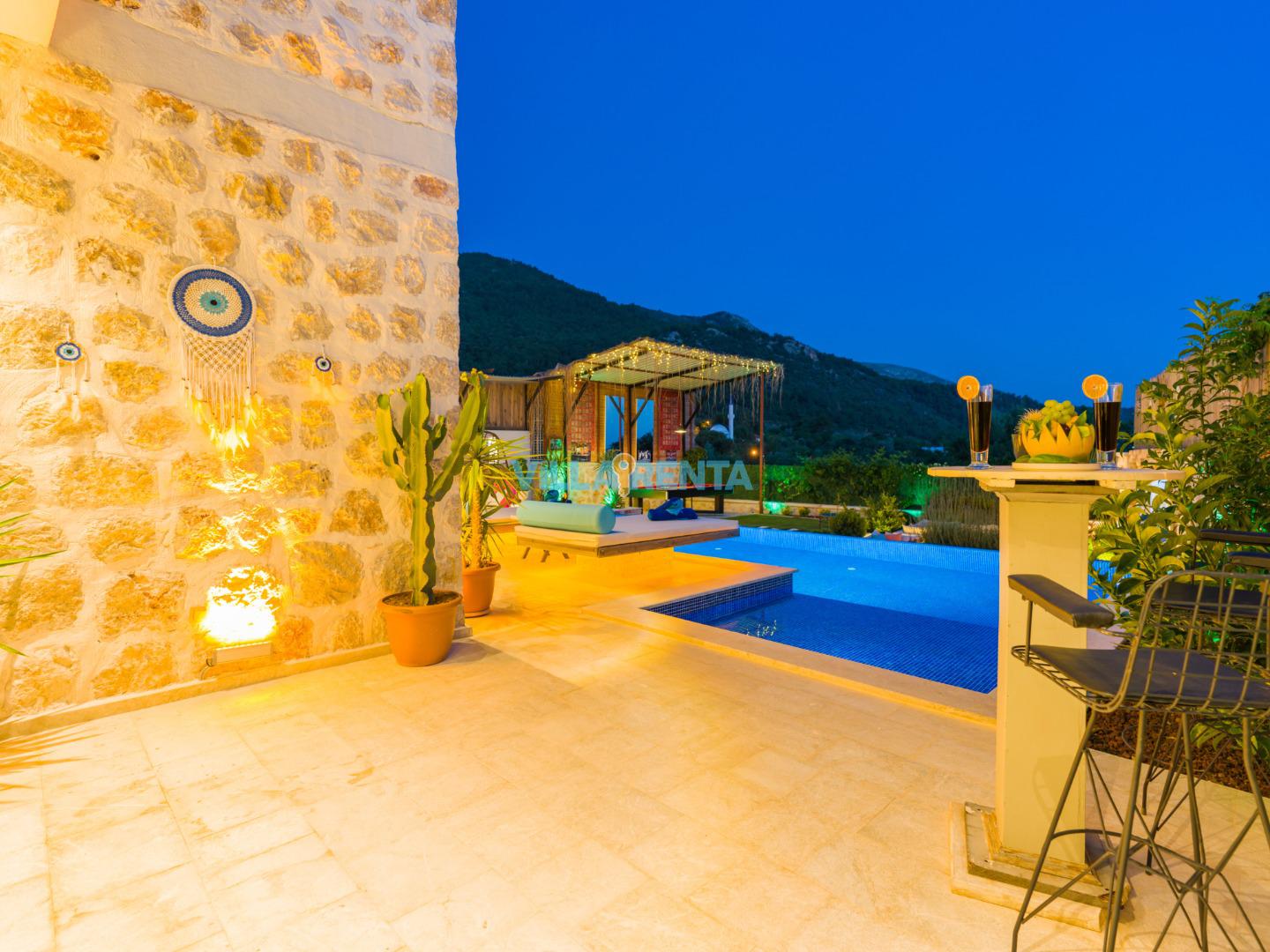 Villa Casa Perla is located in Kalkan, Kalkan / Çayköy area. It is only 25 minutes drive away to the town center. It has an accommodation capacity for 4 people. Ideal for couples and nuclear families. It has a nature view. It is decorated in a stylish and modern way. Every detail has been put together with care. This villa is secluded. The pool and terrace areas are not visible from the outside. It is ideal for those who want to have a holiday away from foreign eyes. The private pool, fully equipped kitchen and all the other details that complement your holiday pleasure in our villa offer everything you need for an isolated holiday away from the crowds, providing a pleasant and safe holiday opportunity.