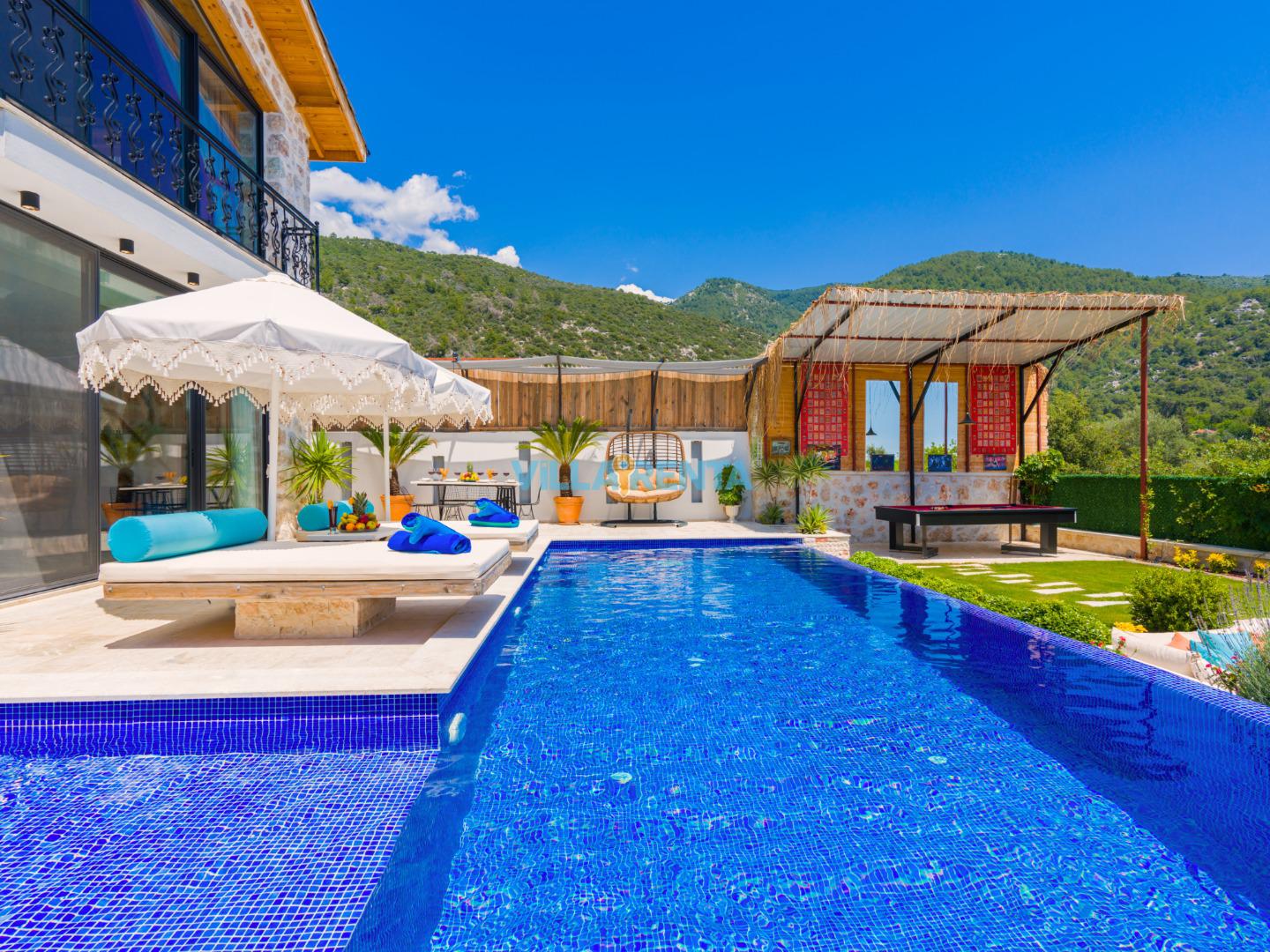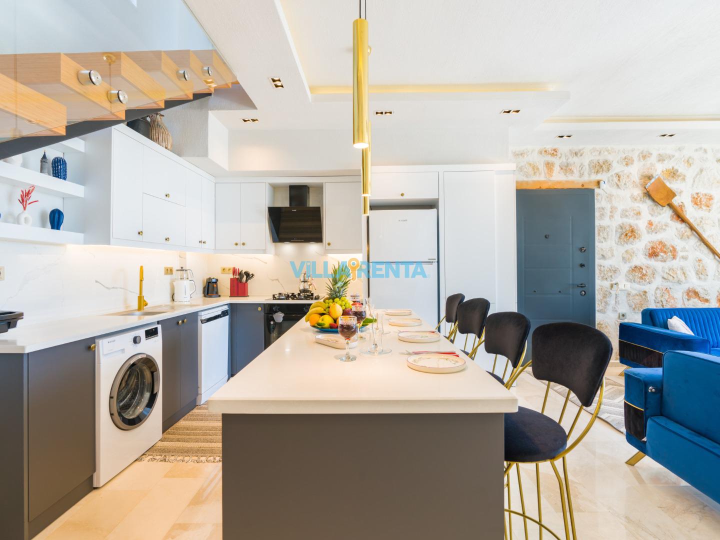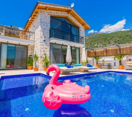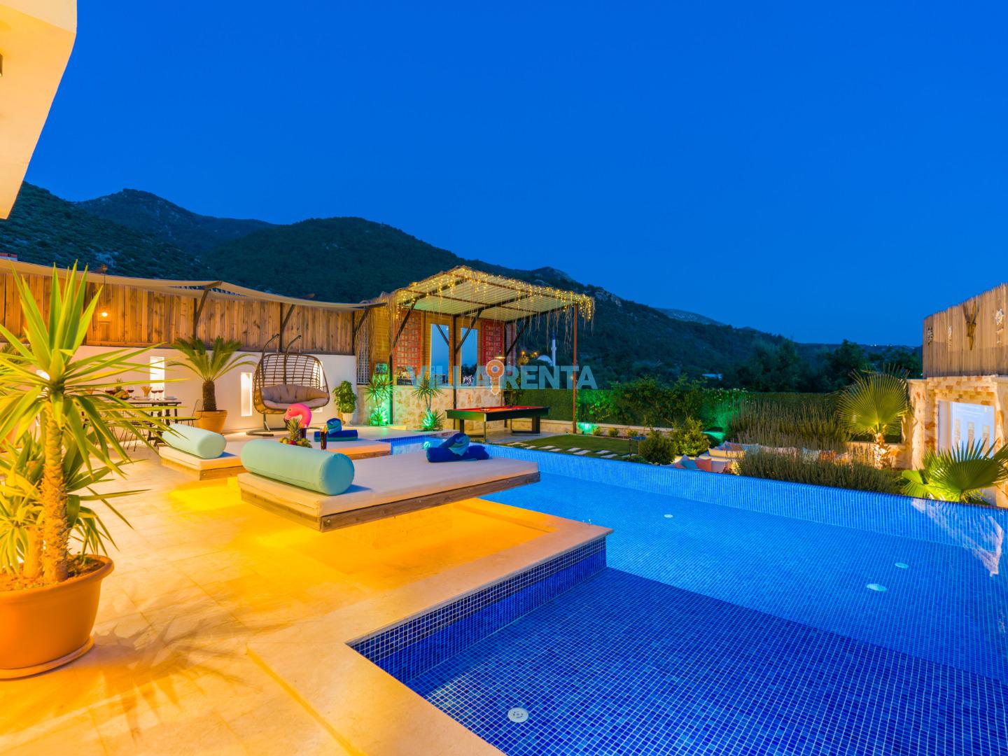 Villa Casa Perla is located in Kalkan, Kalkan / Çayköy area. It is only 25 minutes drive away to the town center. It has an accommodation capacity for 4 people. Ideal for couples and nuclear families. It has a nature view. It is decorated in a stylish and modern way. Every detail has been put together with care. This villa is secluded. The pool and terrace areas are not visible from the outside. It is ideal for those who want to have a holiday away from foreign eyes. The private pool, fully equipped kitchen and all the other details that complement your holiday pleasure in our villa offer everything you need for an isolated holiday away from the crowds, providing a pleasant and safe holiday opportunity.