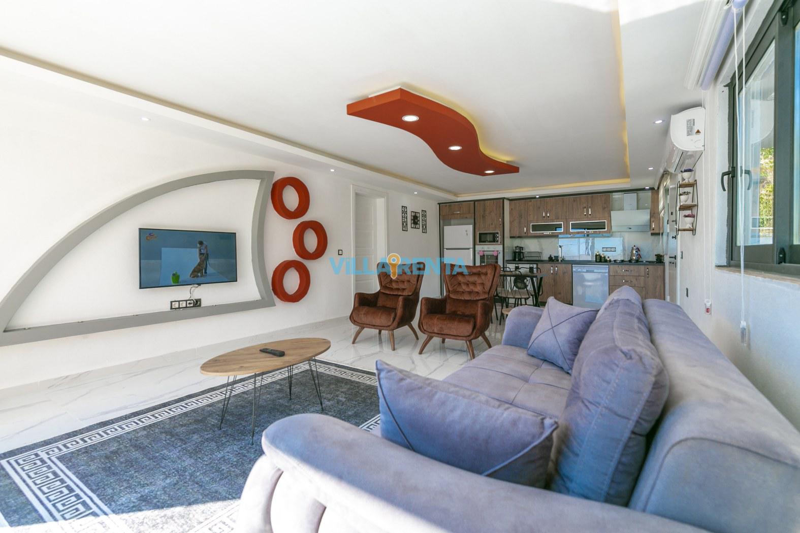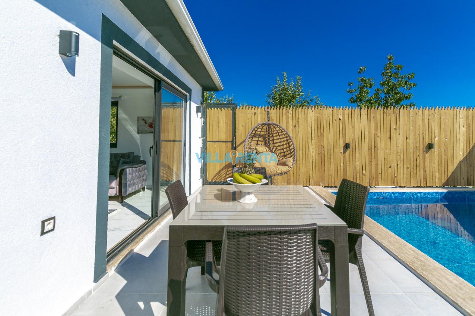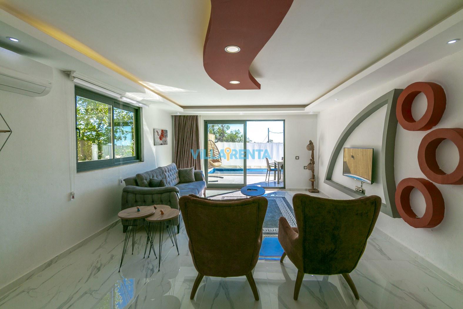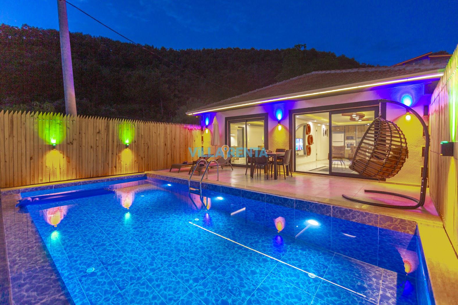 Villa Cosmo is located in Kalkan, Kalkan / İslamlar area. It is only 10 minutes drive away to the town center. It has an accommodation capacity for 2 people. Ideal for couples. It has a nature view. It has a very beautiful and comfortable decoration. This villa is secluded. The pool and terrace areas are not visible from the outside. It is ideal for those who want to have a holiday away from foreign eyes. The private pool, fully equipped kitchen and all the other details that complement your holiday pleasure in our villa offer everything you need for an isolated holiday away from the crowds, providing a pleasant and safe holiday opportunity.