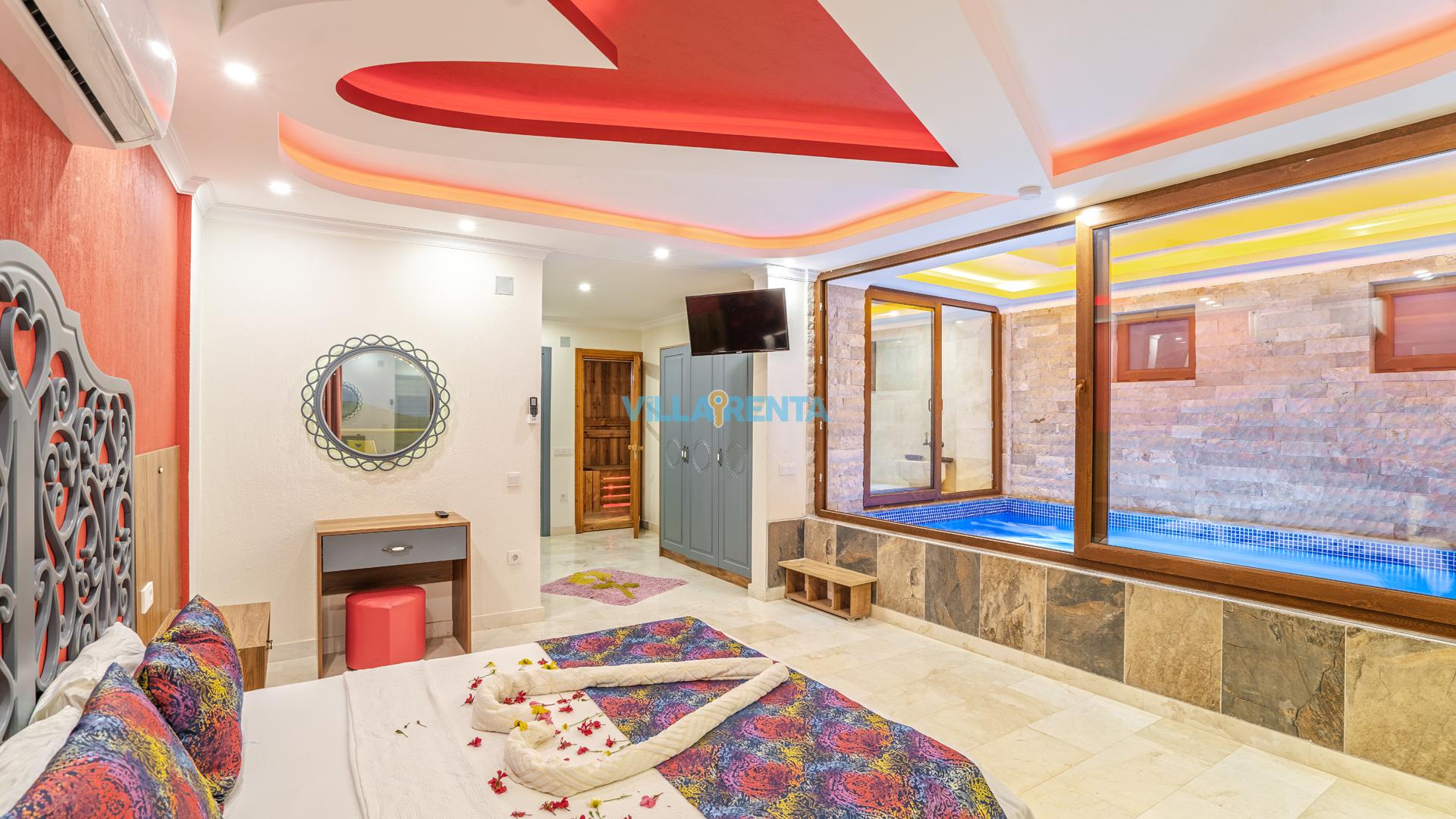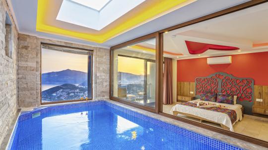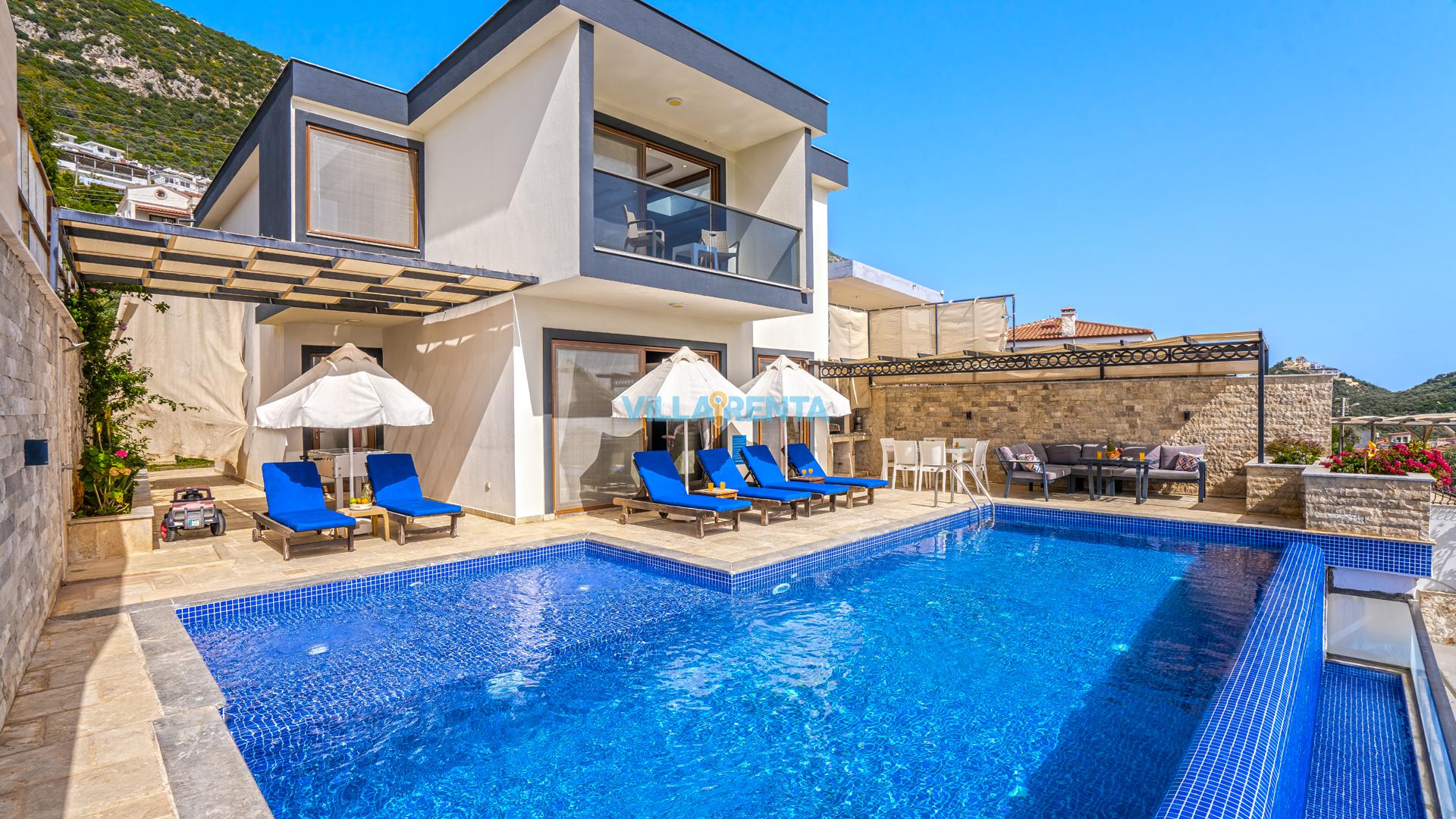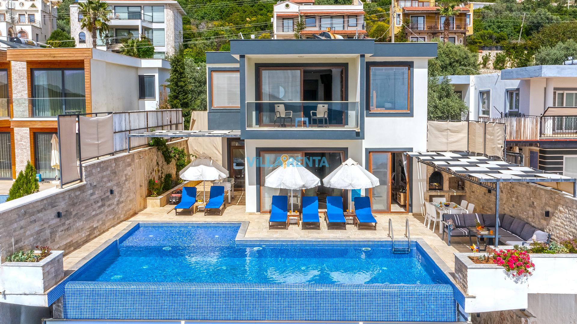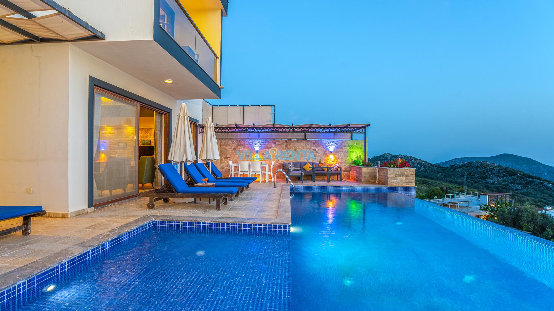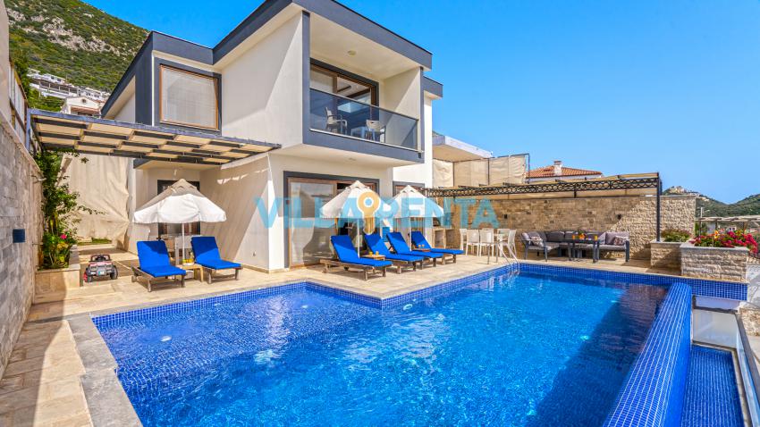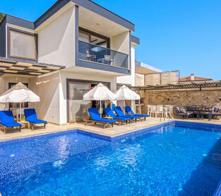 Villa Hulaki is located in Kalkan, Kalkan / Kördere area. It is only 10 minutes drive away to the town center. It has an accommodation capacity for 6 people. Ideal for couples and nuclear families. It has a sea and nature view. It is decorated in a stylish and modern way. Every detail has been put together with care. This villa is secluded. The pool and terrace areas are not visible from the outside. It is ideal for those who want to have a holiday away from foreign eyes. The private pool, fully equipped kitchen and all the other details that complement your holiday pleasure in our villa offer everything you need for an isolated holiday away from the crowds, providing a pleasant and safe holiday opportunity.