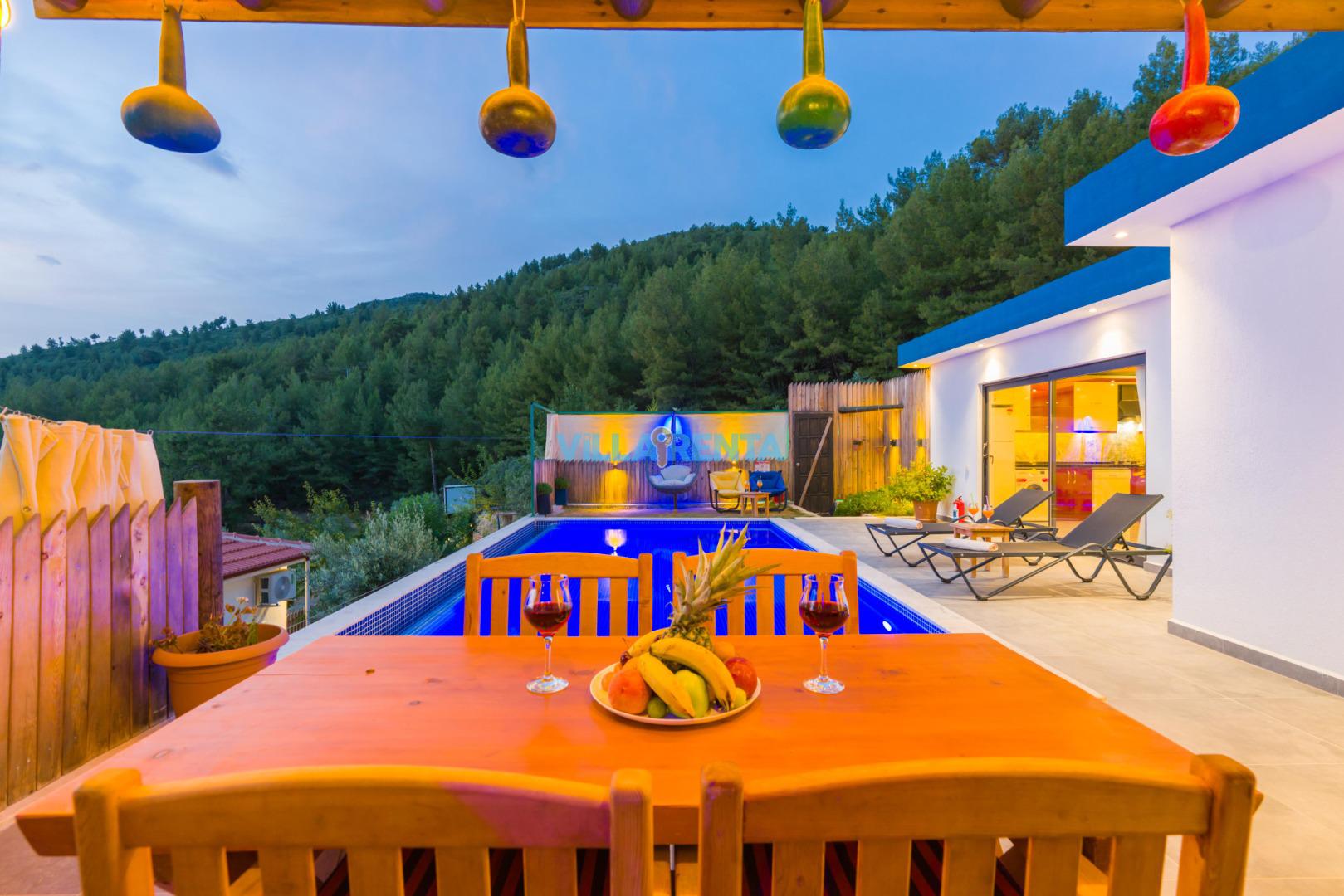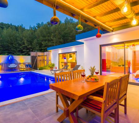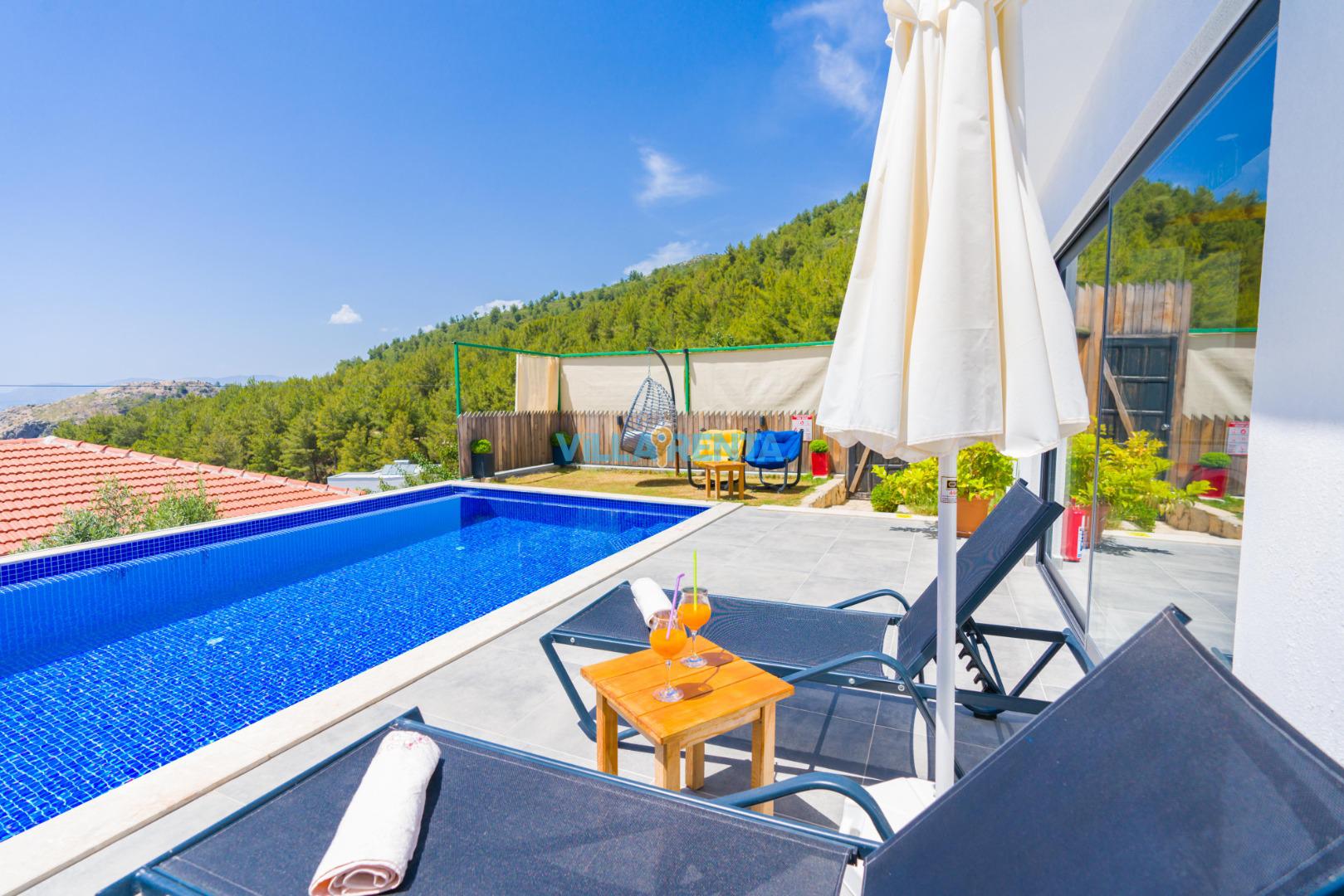Villa İclal is located in Kalkan, Kalkan / İslamlar area. It is only 10 minutes drive away to the town center. It has an accommodation capacity for 2 people. Ideal for couples. It has a nature view. It is decorated in a stylish and modern way. Every detail has been put together with care. This villa is secluded. The pool and terrace areas are not visible from the outside. It is ideal for those who want to have a holiday away from foreign eyes. The private pool, fully equipped kitchen and all the other details that complement your holiday pleasure in our villa offer everything you need for an isolated holiday away from the crowds, providing a pleasant and safe holiday opportunity.