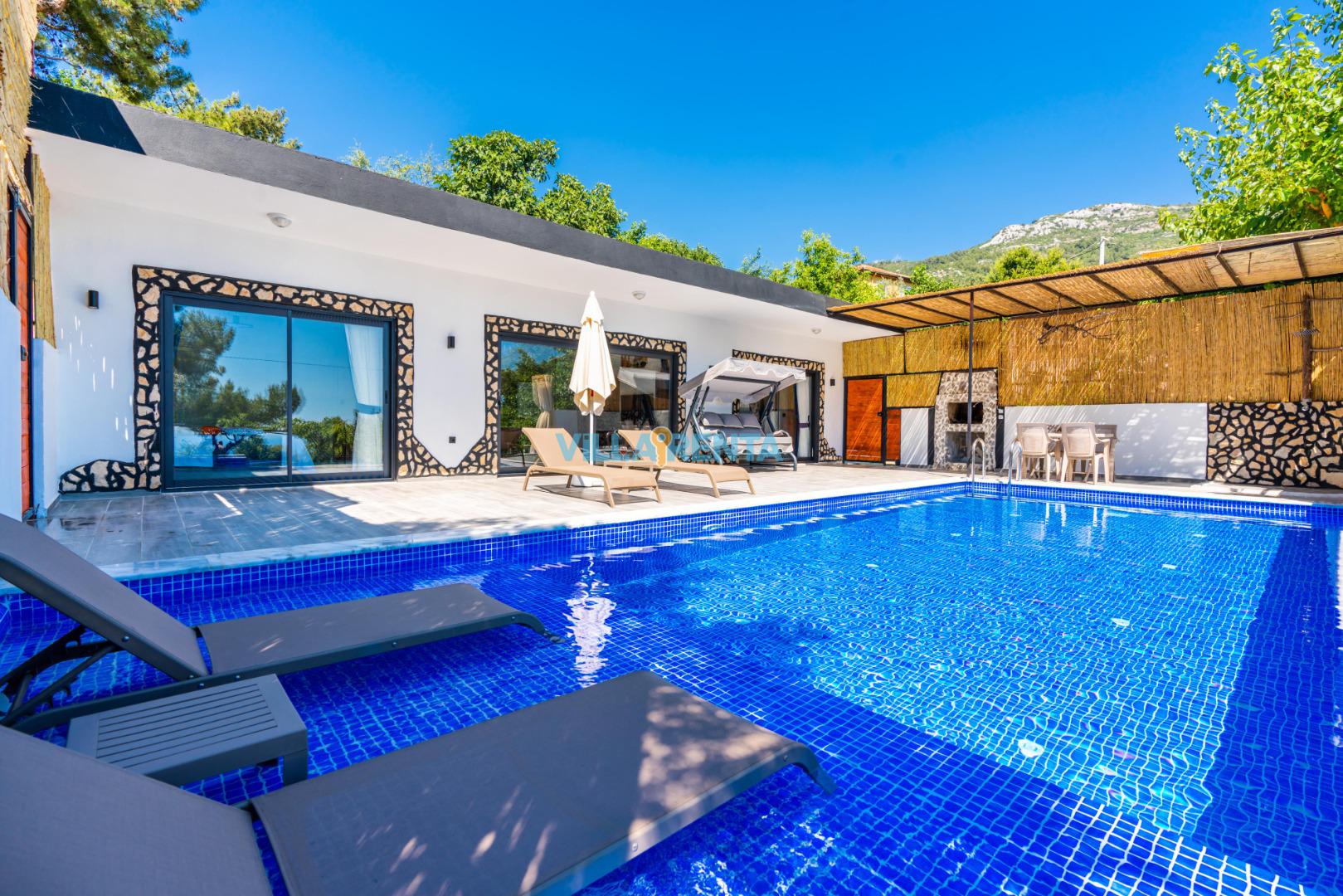Outdoor Living: Enjoy your private pool and terrace area, perfect for alfresco dining under the Mediterranean stars.