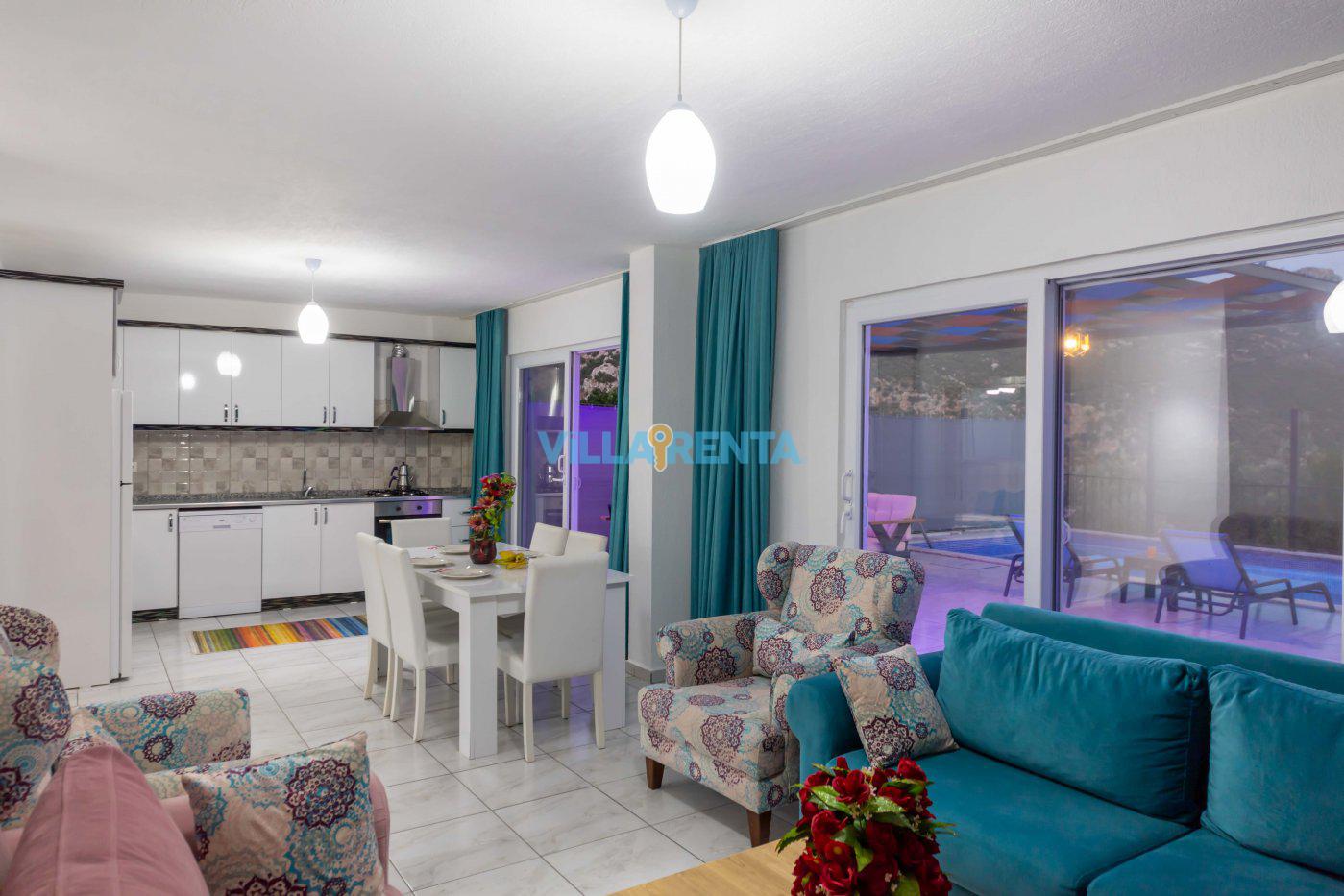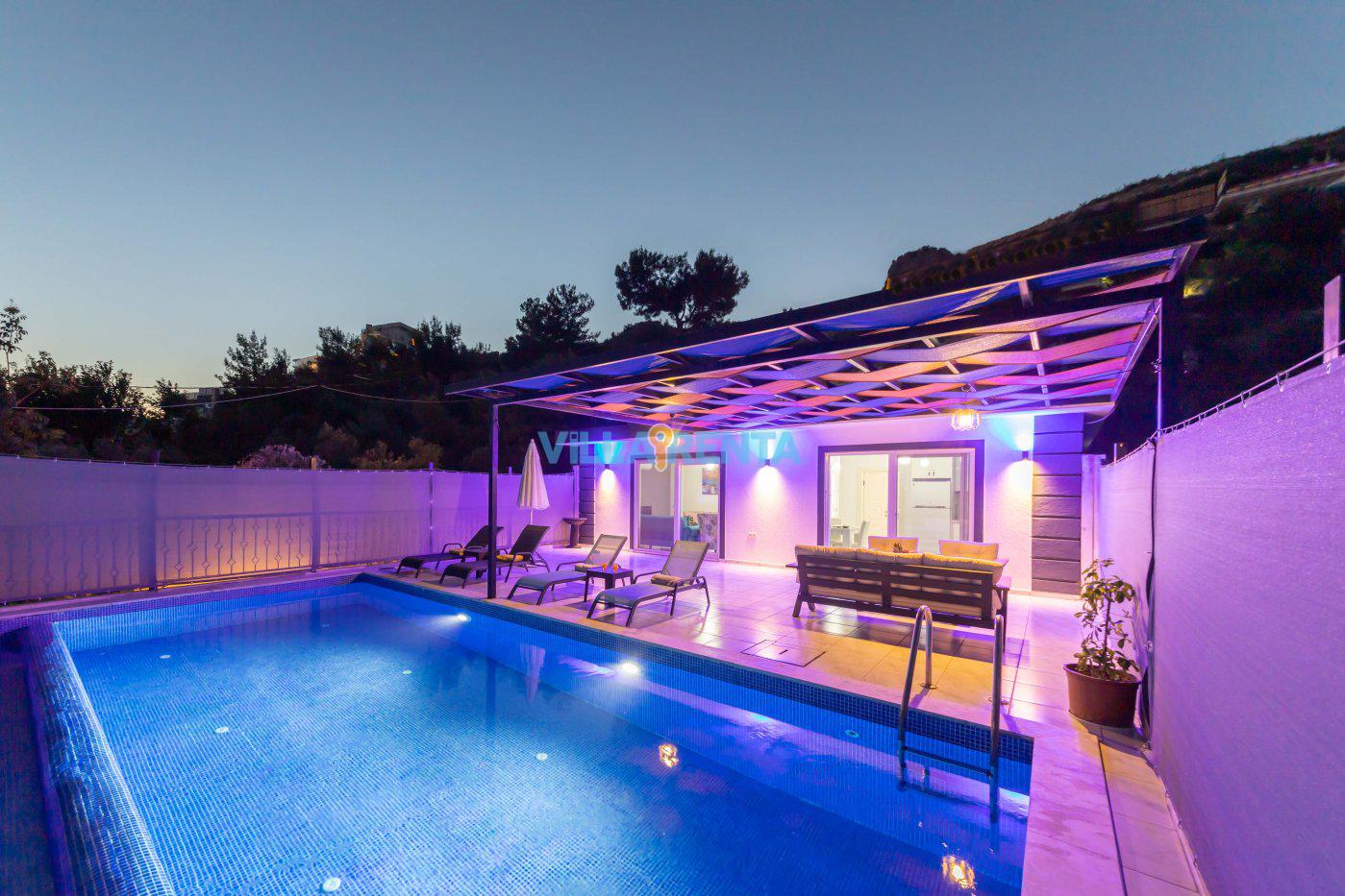 Villa Platin is located in Kalkan, Kalkan / İslamlar area. It is only 10 minutes drive away to the town center. It has an accommodation capacity for 4 people. Ideal for couples and nuclear families. It has a nature view. It has a very beautiful and comfortable decoration. This villa is secluded. The pool and terrace areas are not visible from the outside. It is ideal for those who want to have a holiday away from foreign eyes. The private pool, fully equipped kitchen and all the other details that complement your holiday pleasure in our villa offer everything you need for an isolated holiday away from the crowds, providing a pleasant and safe holiday opportunity.