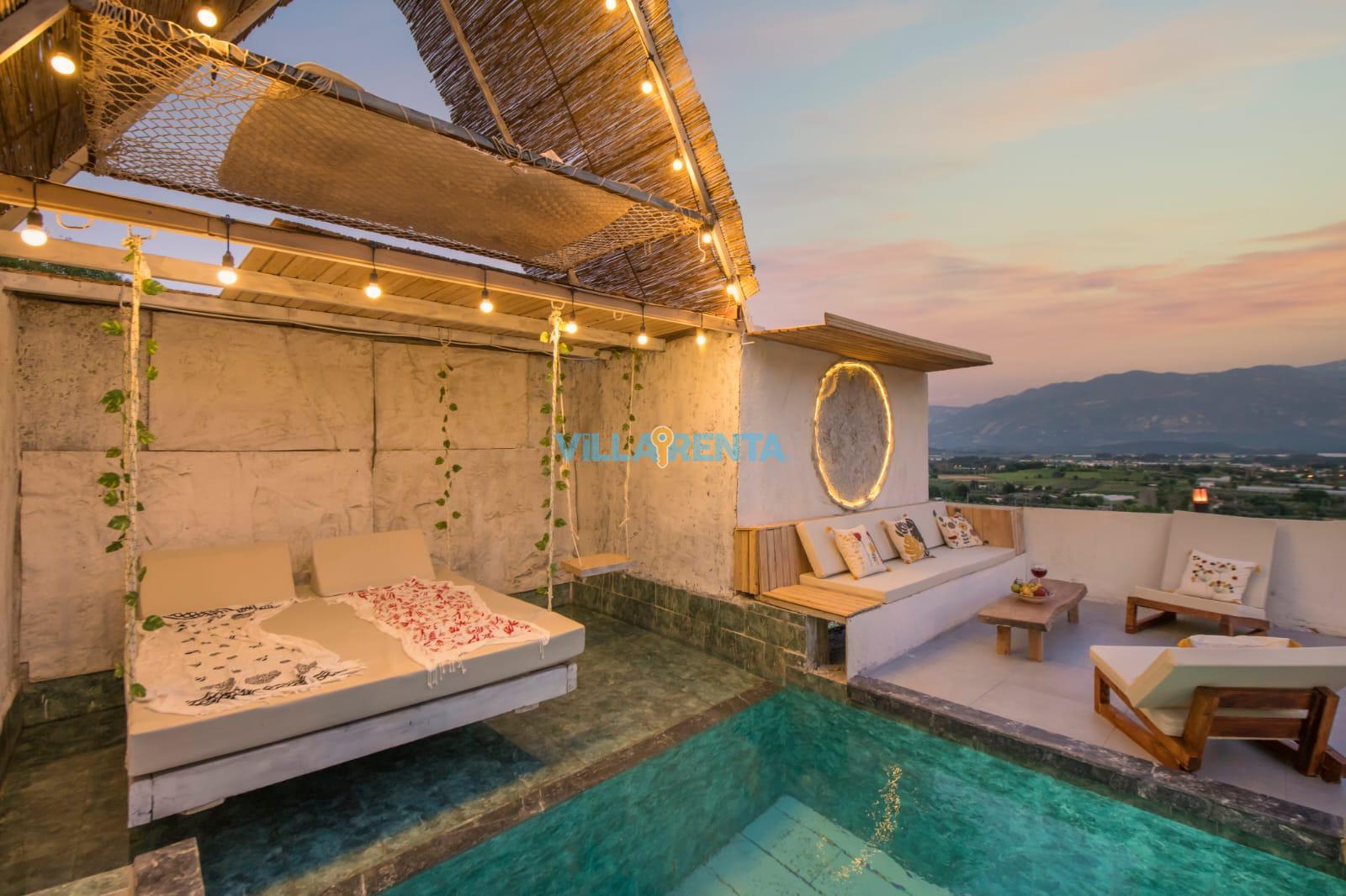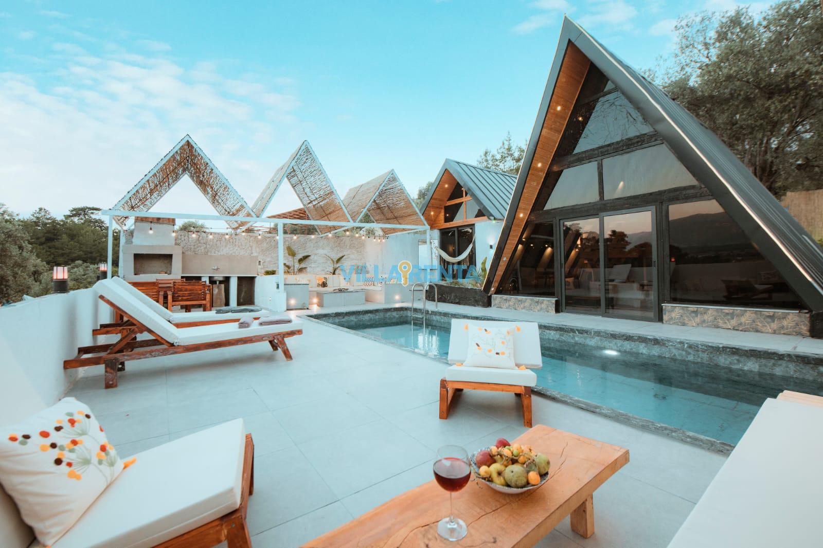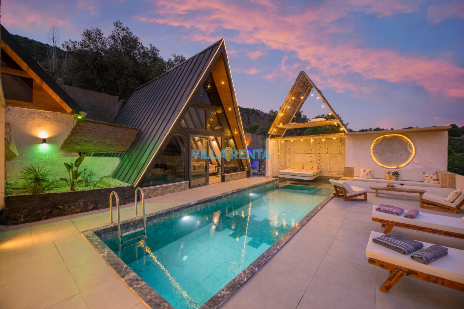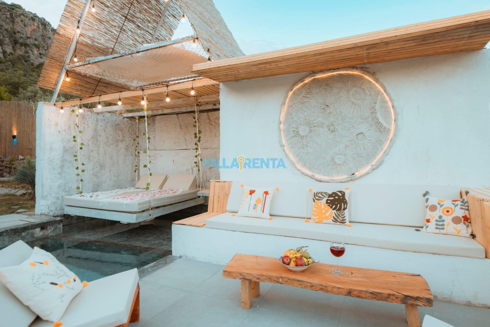 Villa Pukka is located in Kalkan, Muğla / Seydikemer area. It is only 30 minutes drive away to the town center. It has an accommodation capacity for 4 people. Ideal for couples and nucler families. It has a nature view. It has a very beautiful and comfortable decoration. This villa is secluded. The pool and terrace areas are not visible from the outside. It is ideal for those who want to have a holiday away from foreign eyes. The private pool, fully equipped kitchen and all the other details that complement your holiday pleasure in our villa offer everything you need for an isolated holiday away from the crowds, providing a pleasant and safe holiday opportunity.