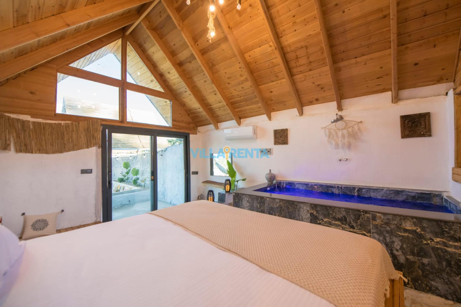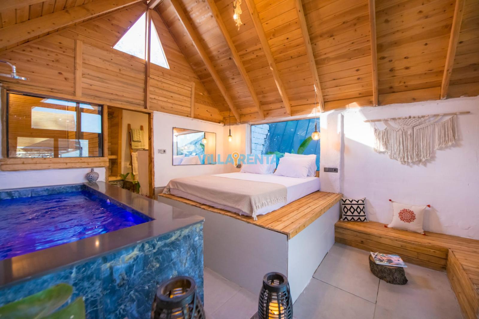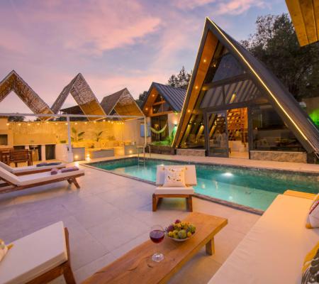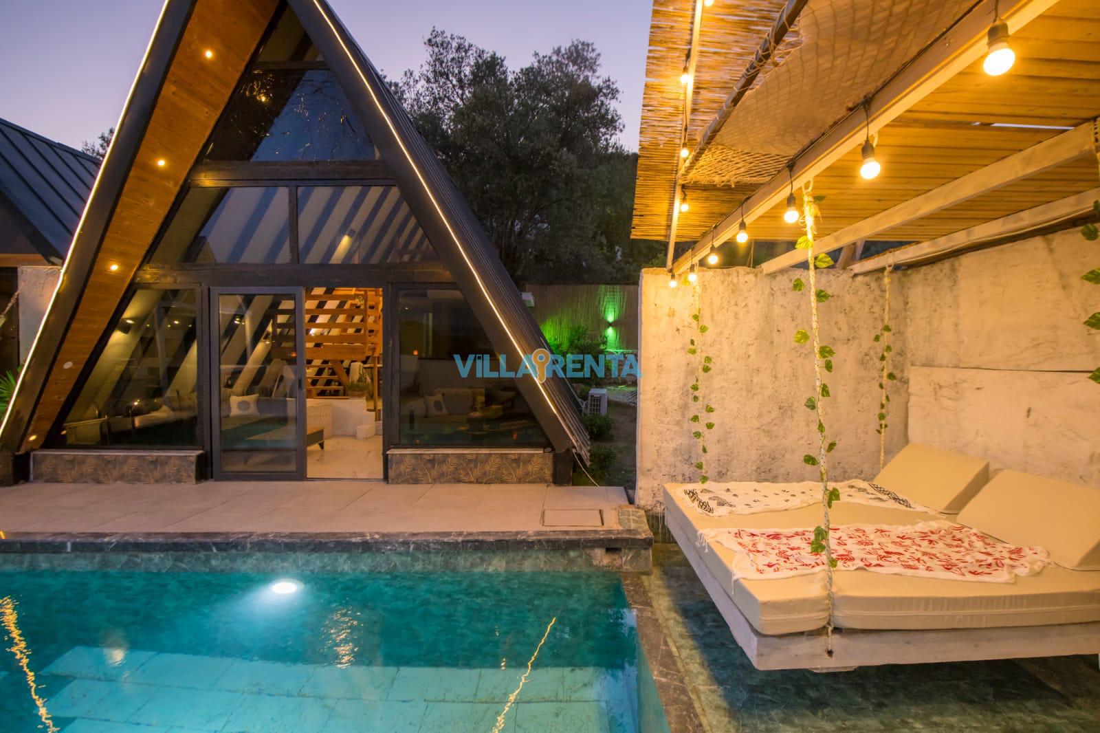 Villa Pukka is located in Kalkan, Muğla / Seydikemer area. It is only 30 minutes drive away to the town center. It has an accommodation capacity for 4 people. Ideal for couples and nucler families. It has a nature view. It has a very beautiful and comfortable decoration. This villa is secluded. The pool and terrace areas are not visible from the outside. It is ideal for those who want to have a holiday away from foreign eyes. The private pool, fully equipped kitchen and all the other details that complement your holiday pleasure in our villa offer everything you need for an isolated holiday away from the crowds, providing a pleasant and safe holiday opportunity.