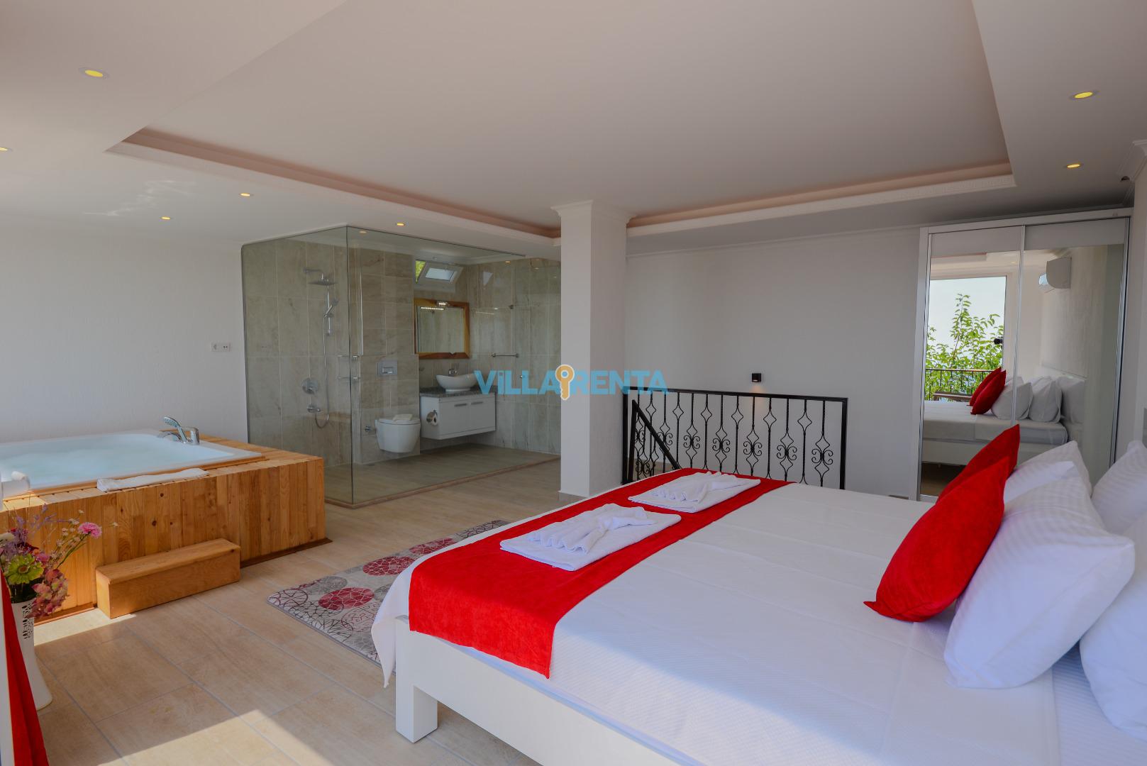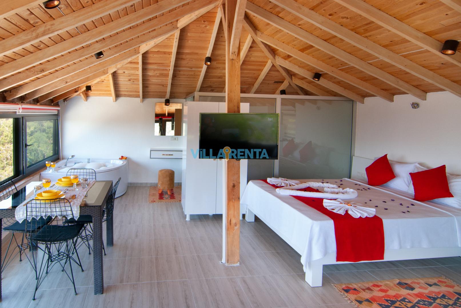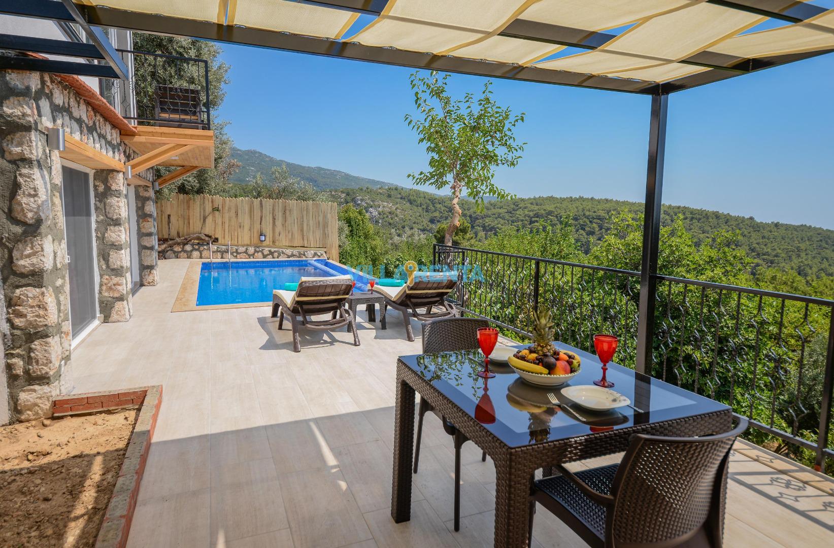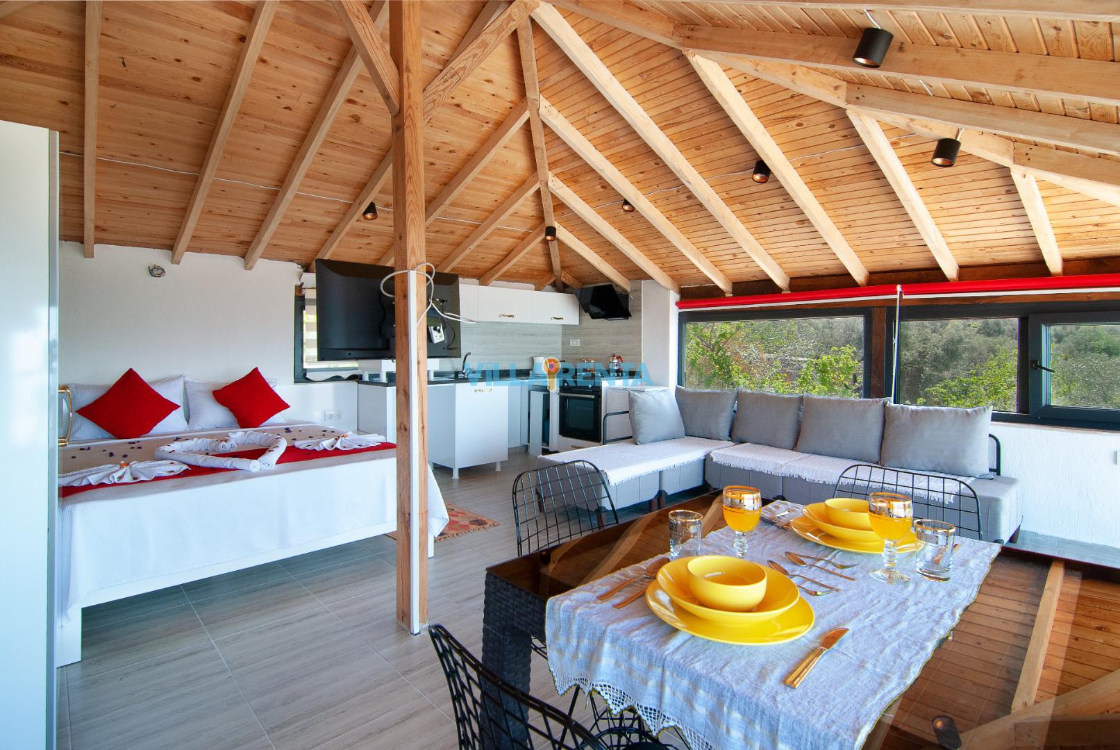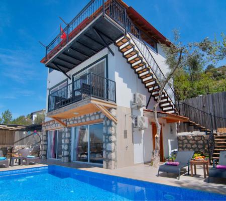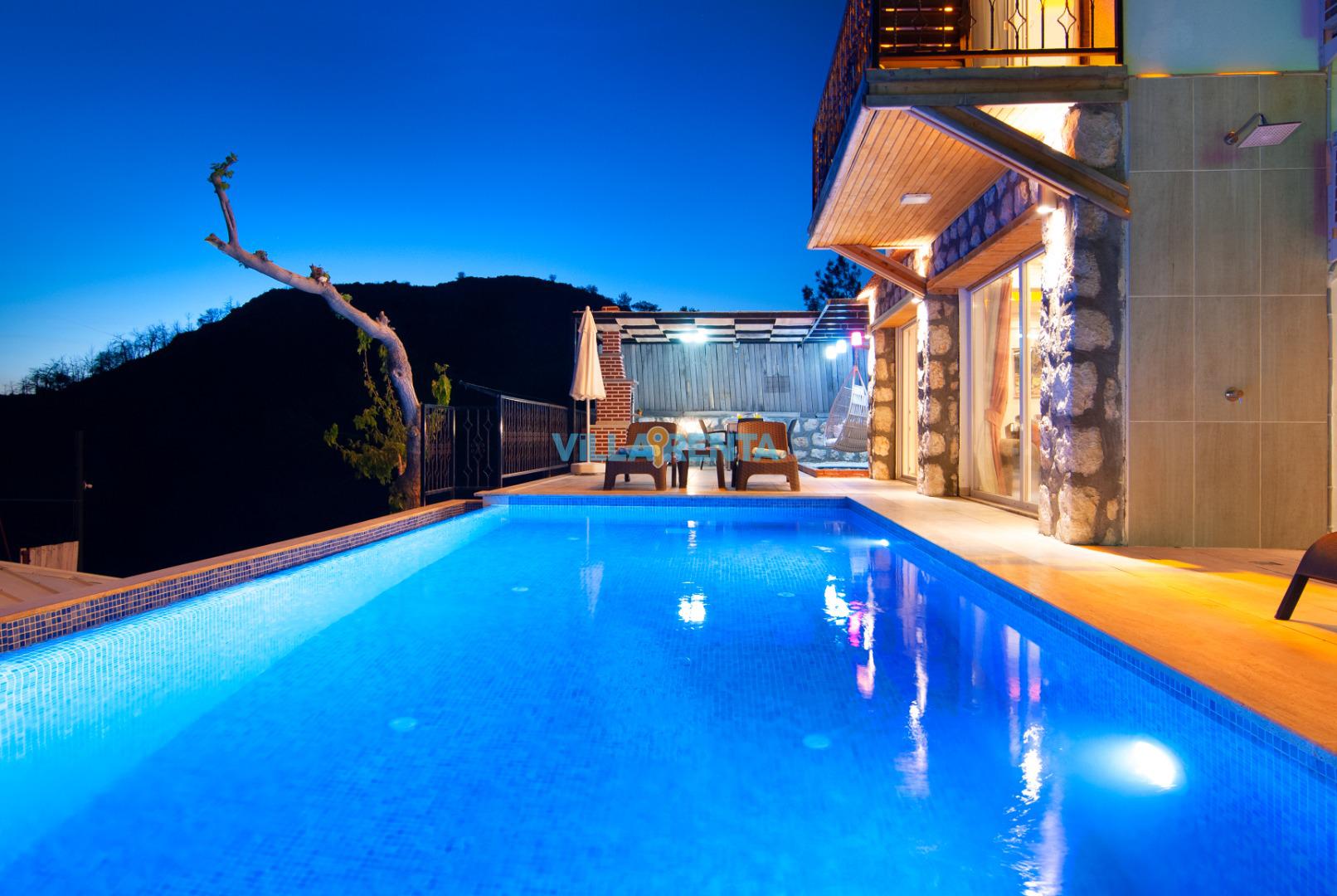 Rising with modern architecture in the unique nature of Kalkan, Lapaz, Villa Saten is designed for those seeking peace at the summit, away from the hustle and bustle of the city. With 2 bedrooms and a capacity for 4 guests, our villa makes a difference with its spacious living areas and the luxury amenities it offers.