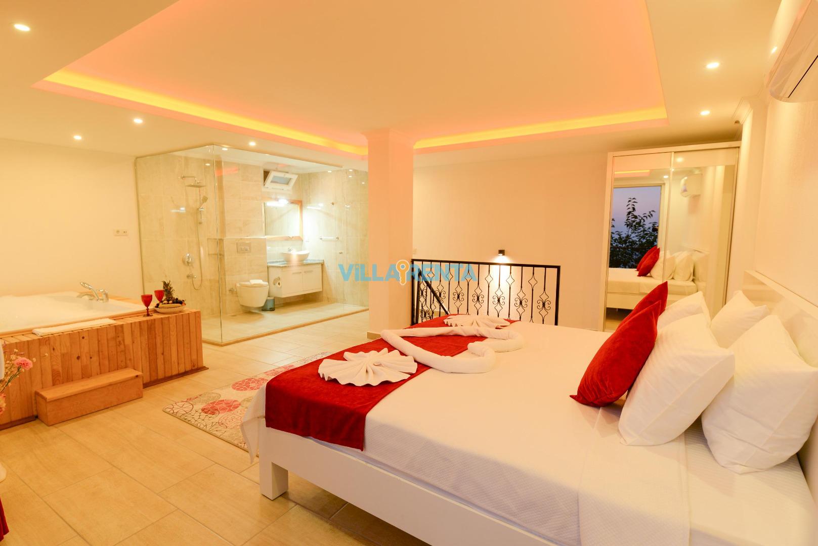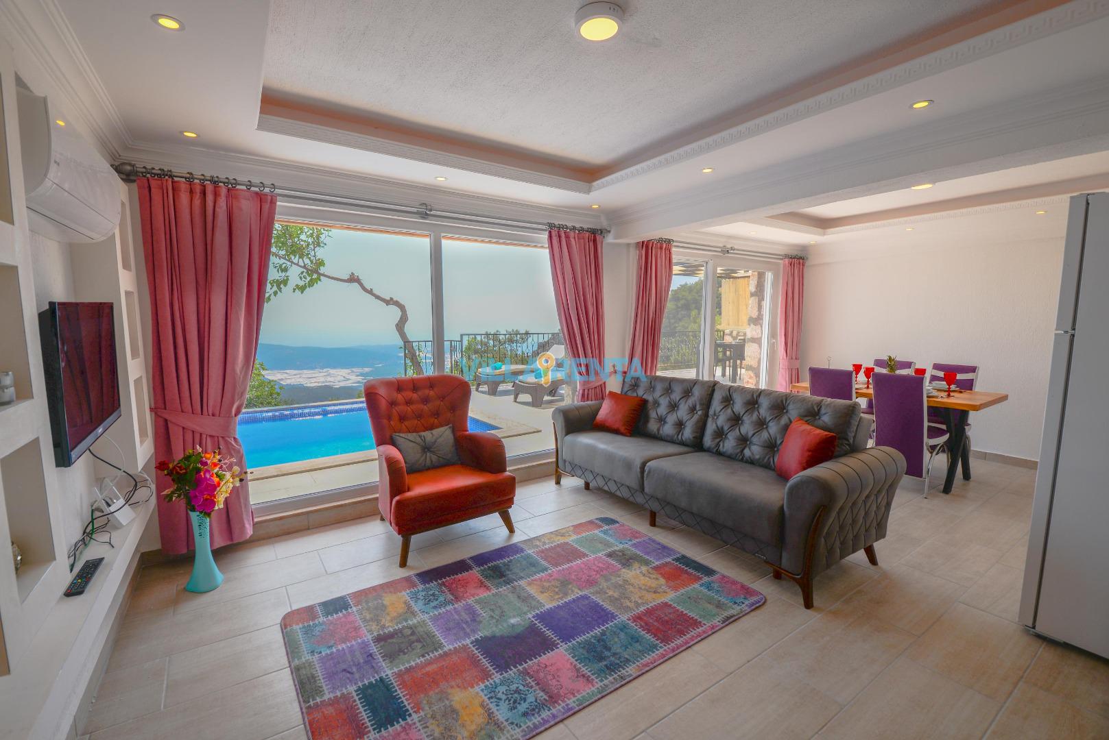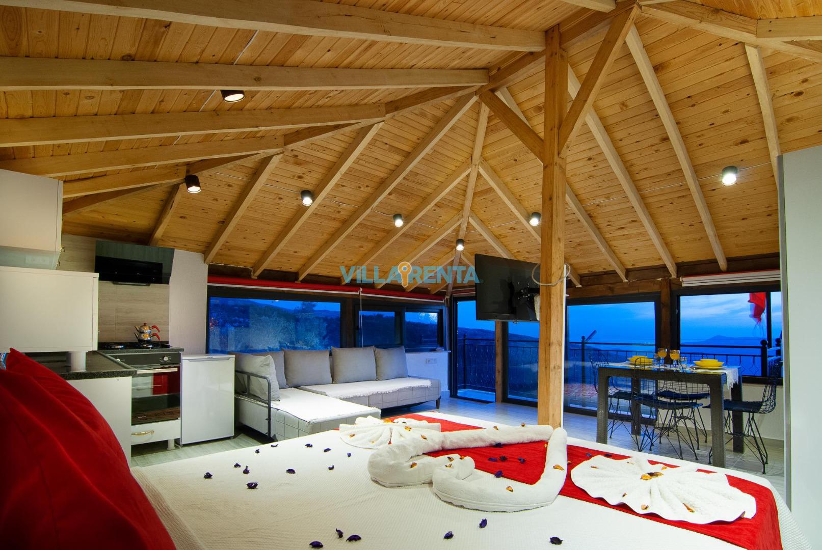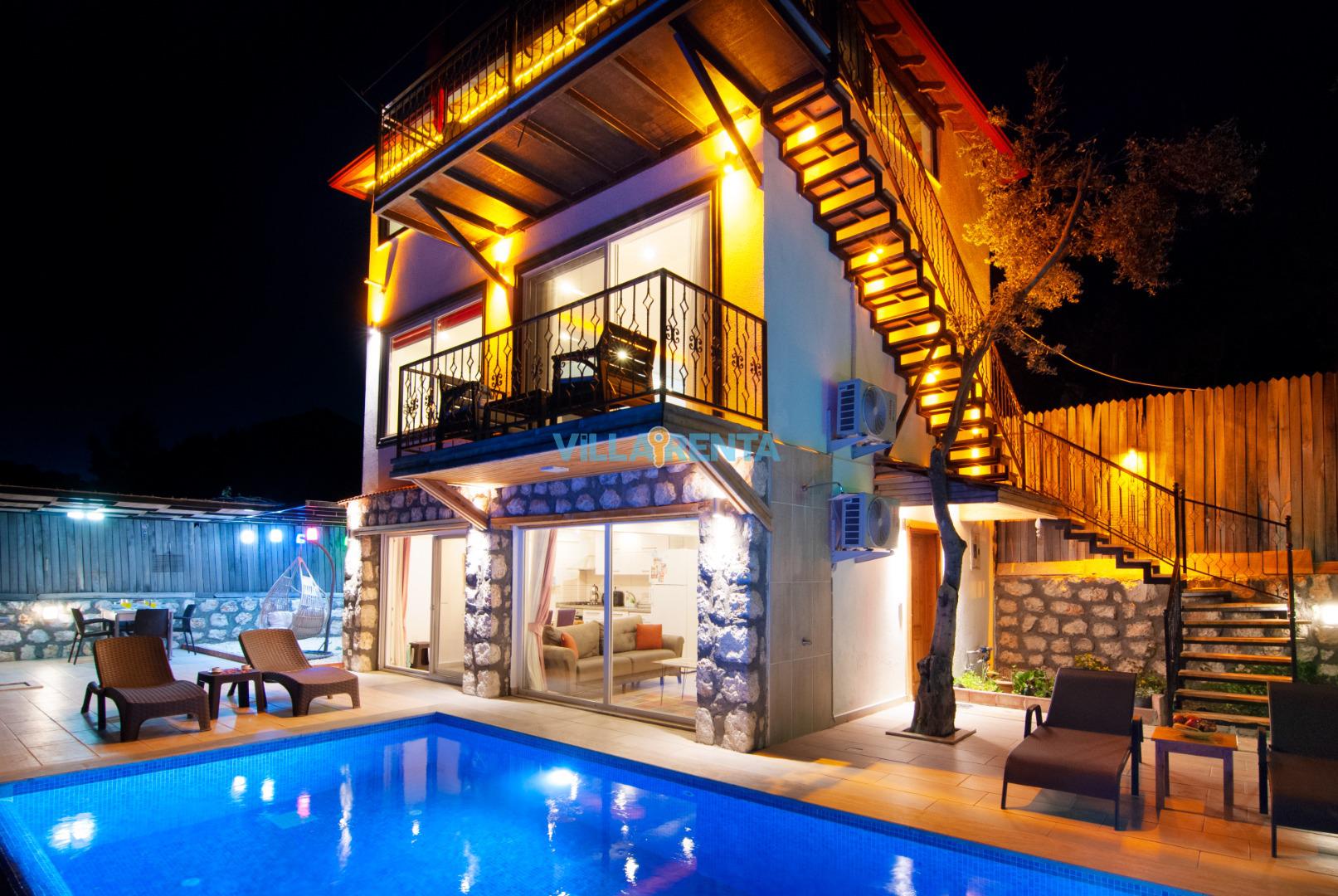 Rising with modern architecture in the unique nature of Kalkan, Lapaz, Villa Saten is designed for those seeking peace at the summit, away from the hustle and bustle of the city. With 2 bedrooms and a capacity for 4 guests, our villa makes a difference with its spacious living areas and the luxury amenities it offers.
